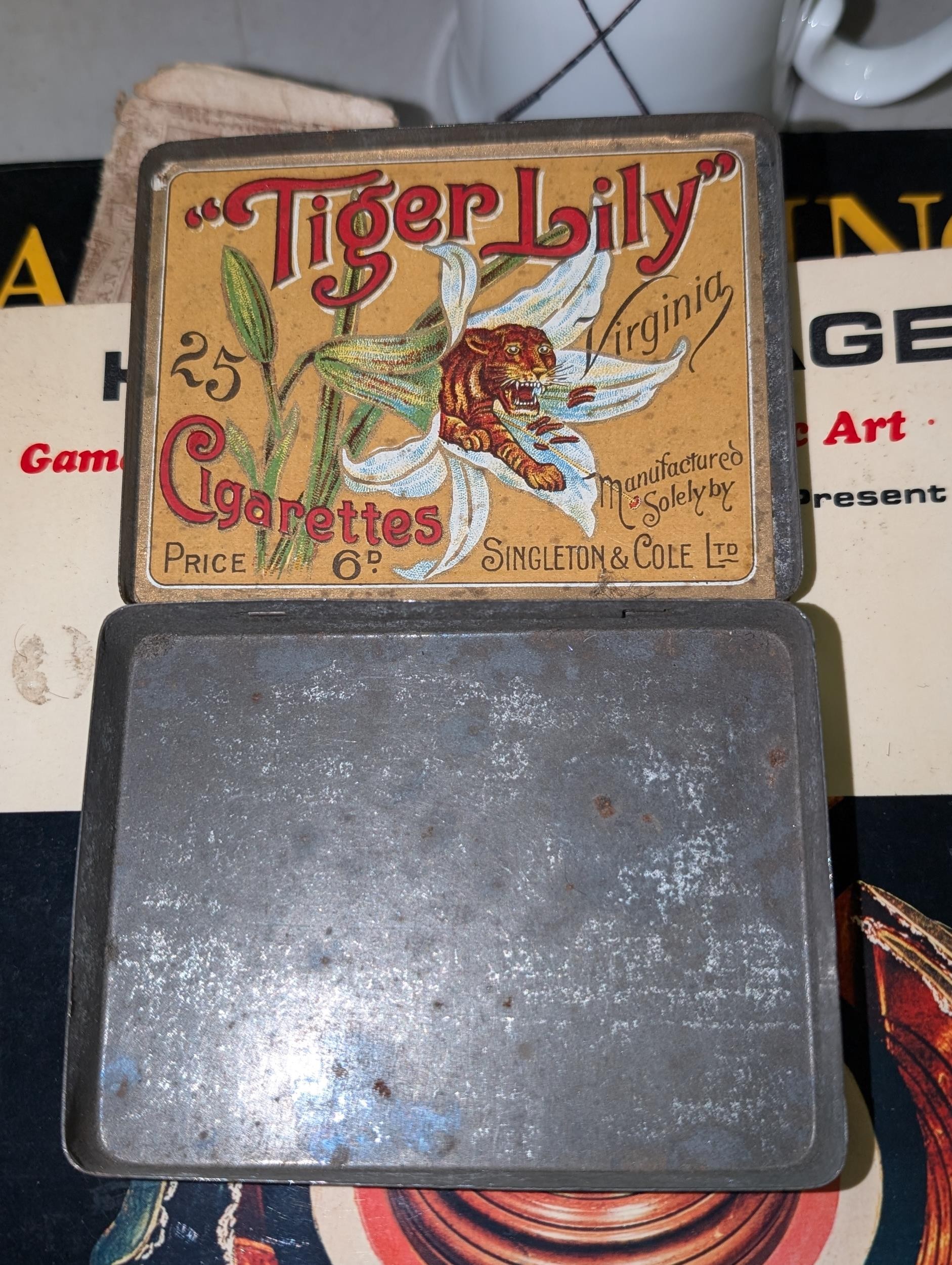 Vintage Tiger Lily 25 cigarette picture tin