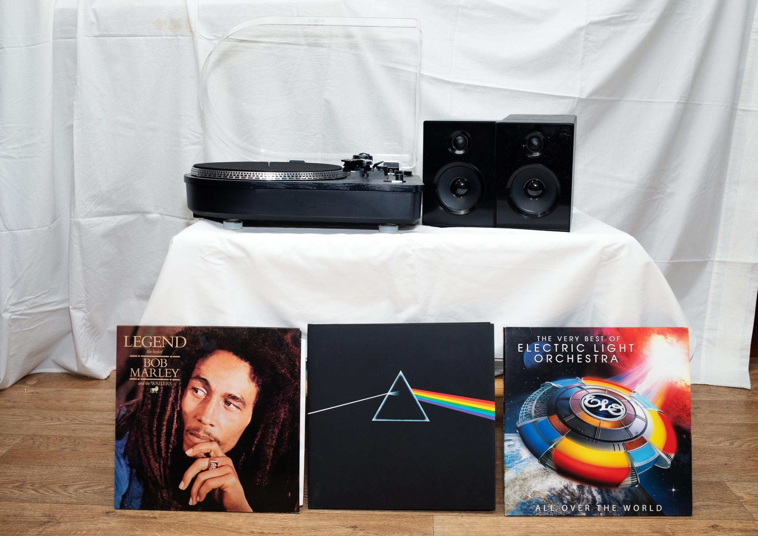 Steepletone 2-Speed Record Player with Built in Speakers and 3 records - Wonderful opportunity to play your record collection and relive happy memories with the Steepletone Camden 2 Professional Turntable with Auto-Return Record Deck with Bluetooth Playback and Receiver. Also, 3 highly collectible records from Pink Floyd, Bob Marley and ELO.