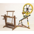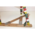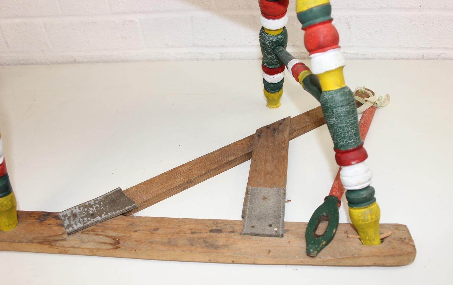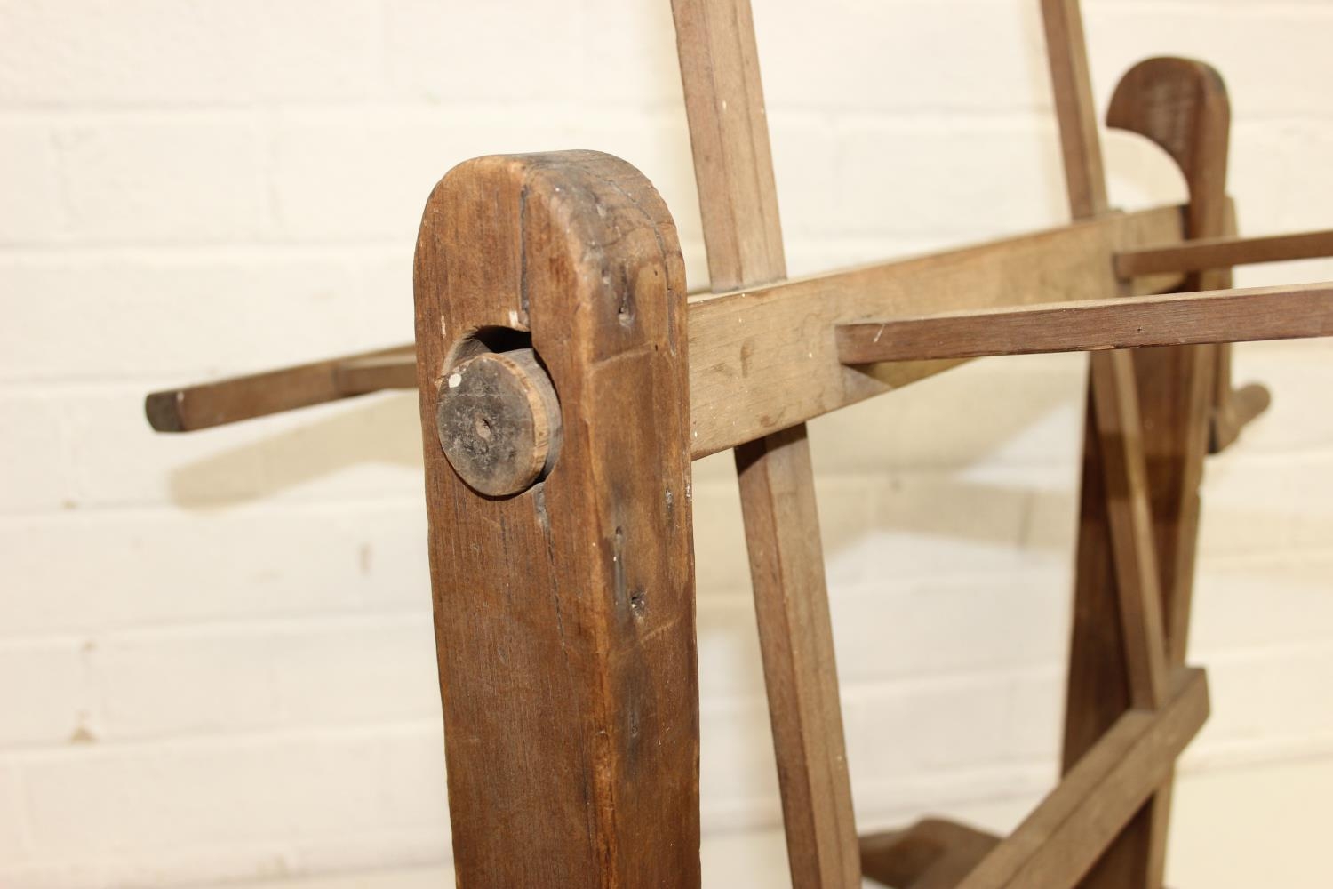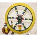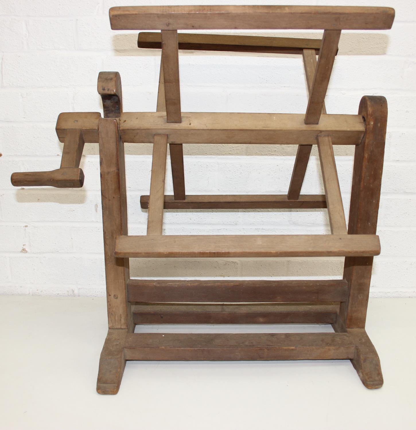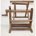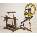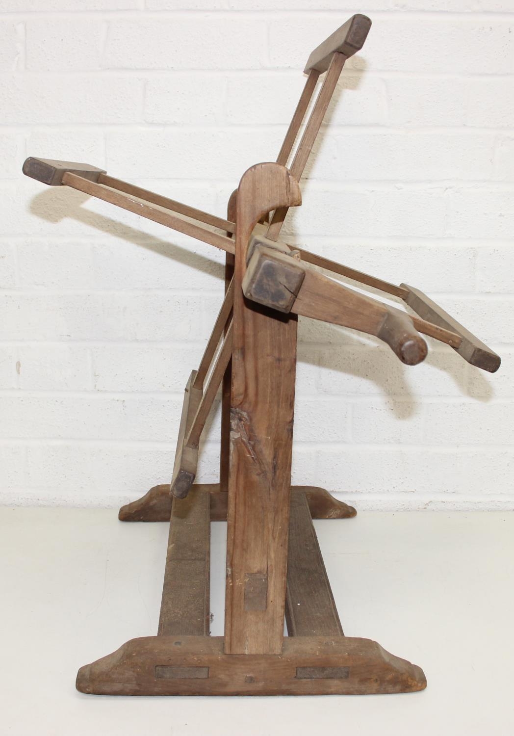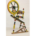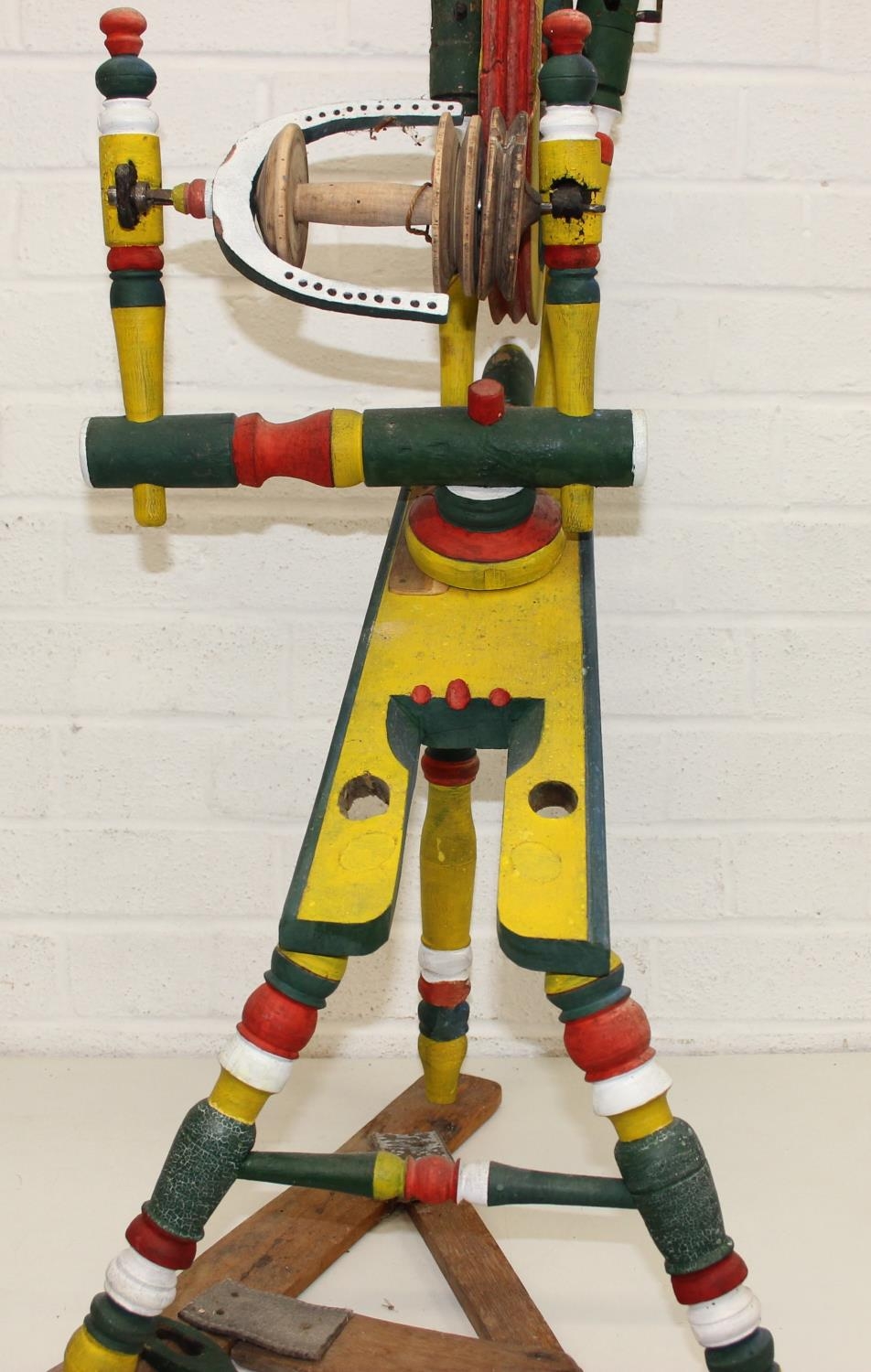 Vintage spinning wheel painted in a barge ware style, and antique wool winder in pine, the wool winder 64cm x 49cm x 67cm [2]