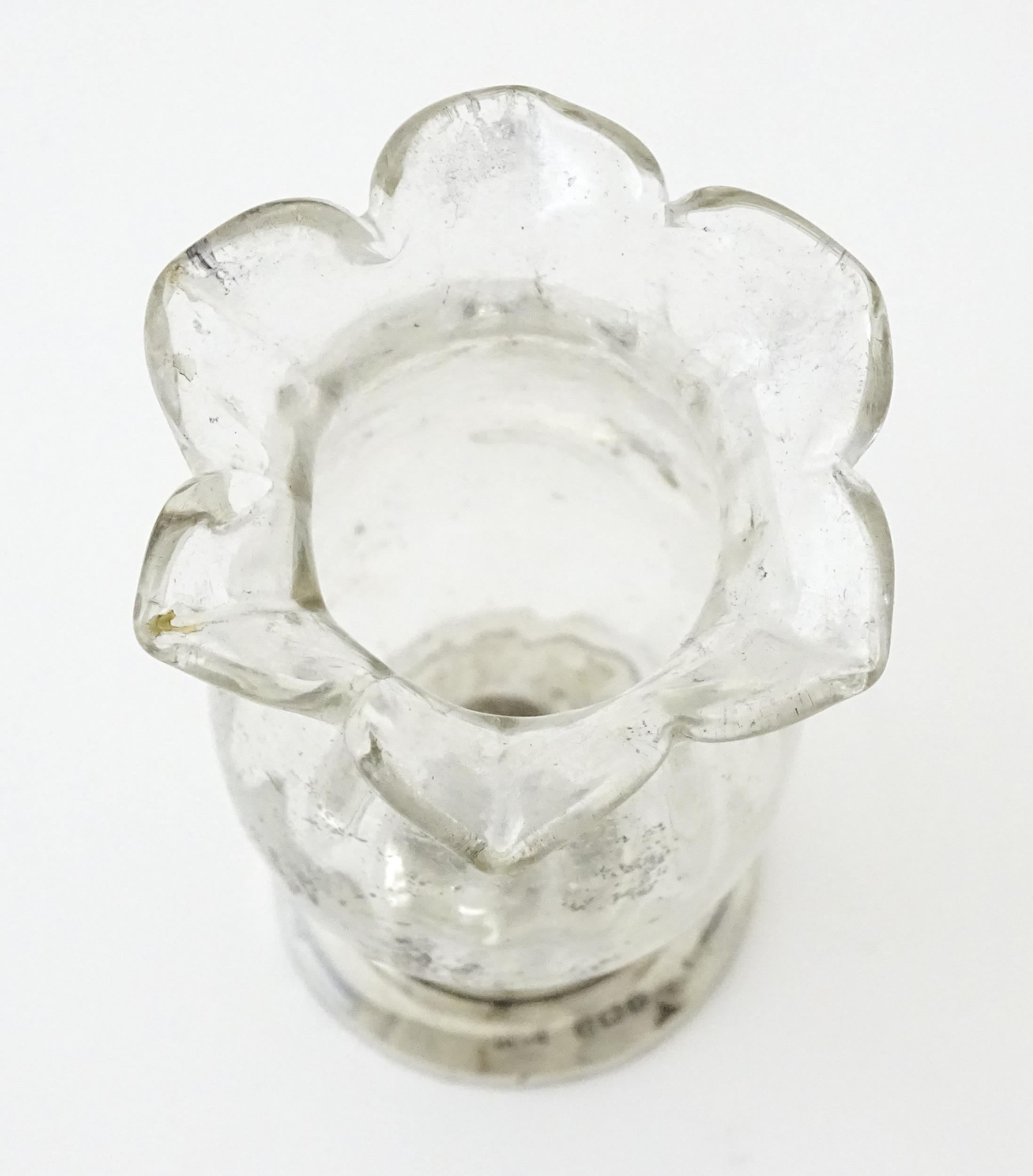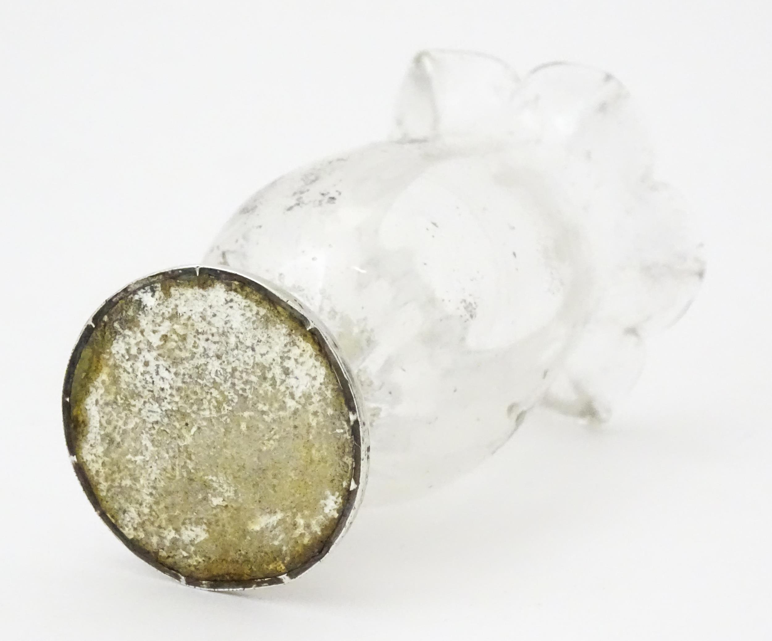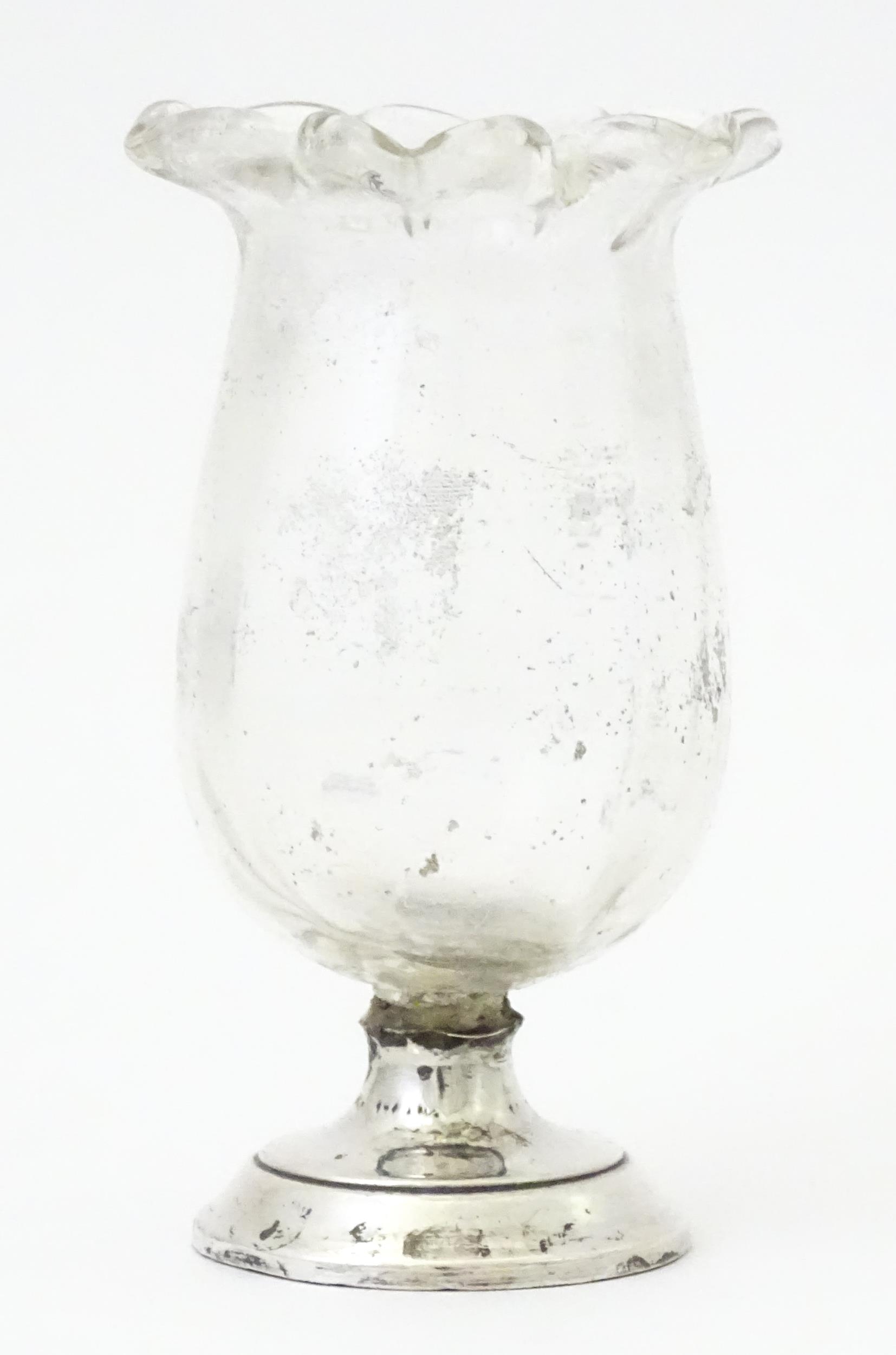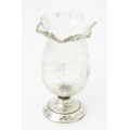 A glass vase with silver base hallmarked Birmingham 1912, maker I S Greenberg & Co. Approx. 3 1/4" high