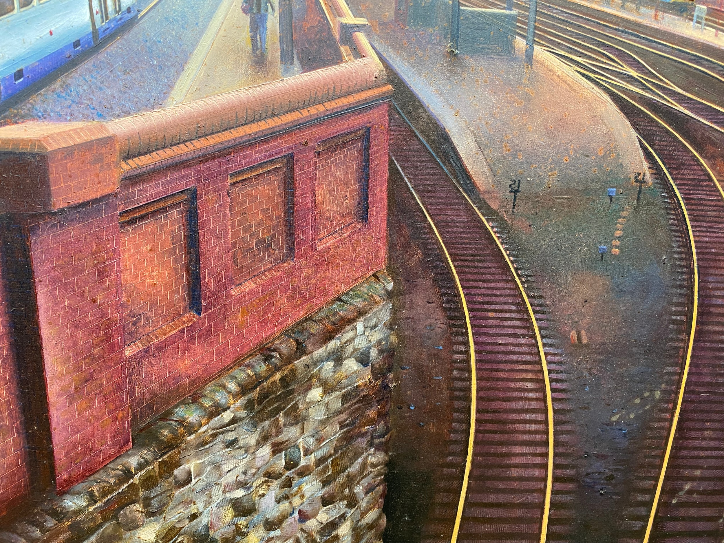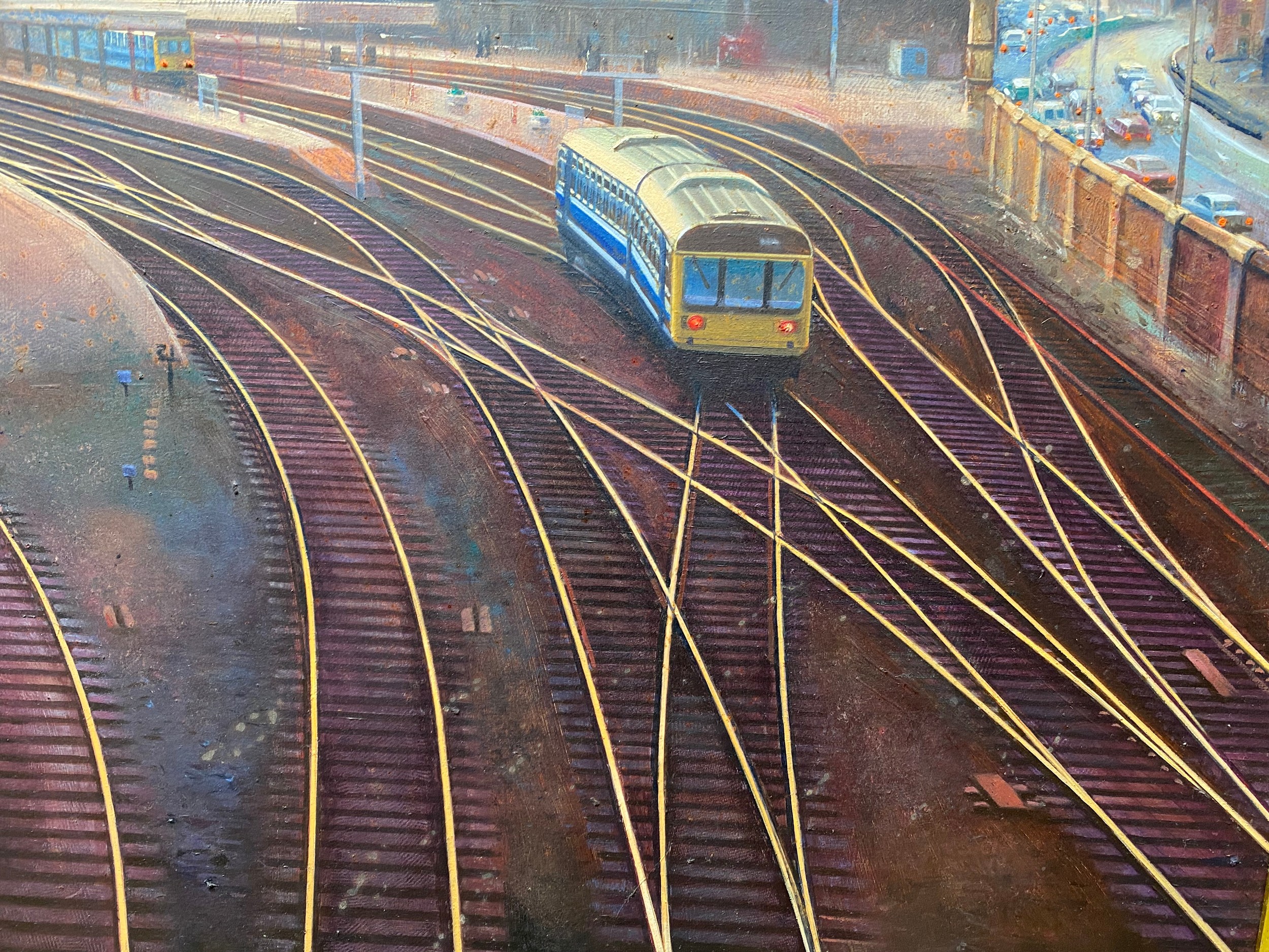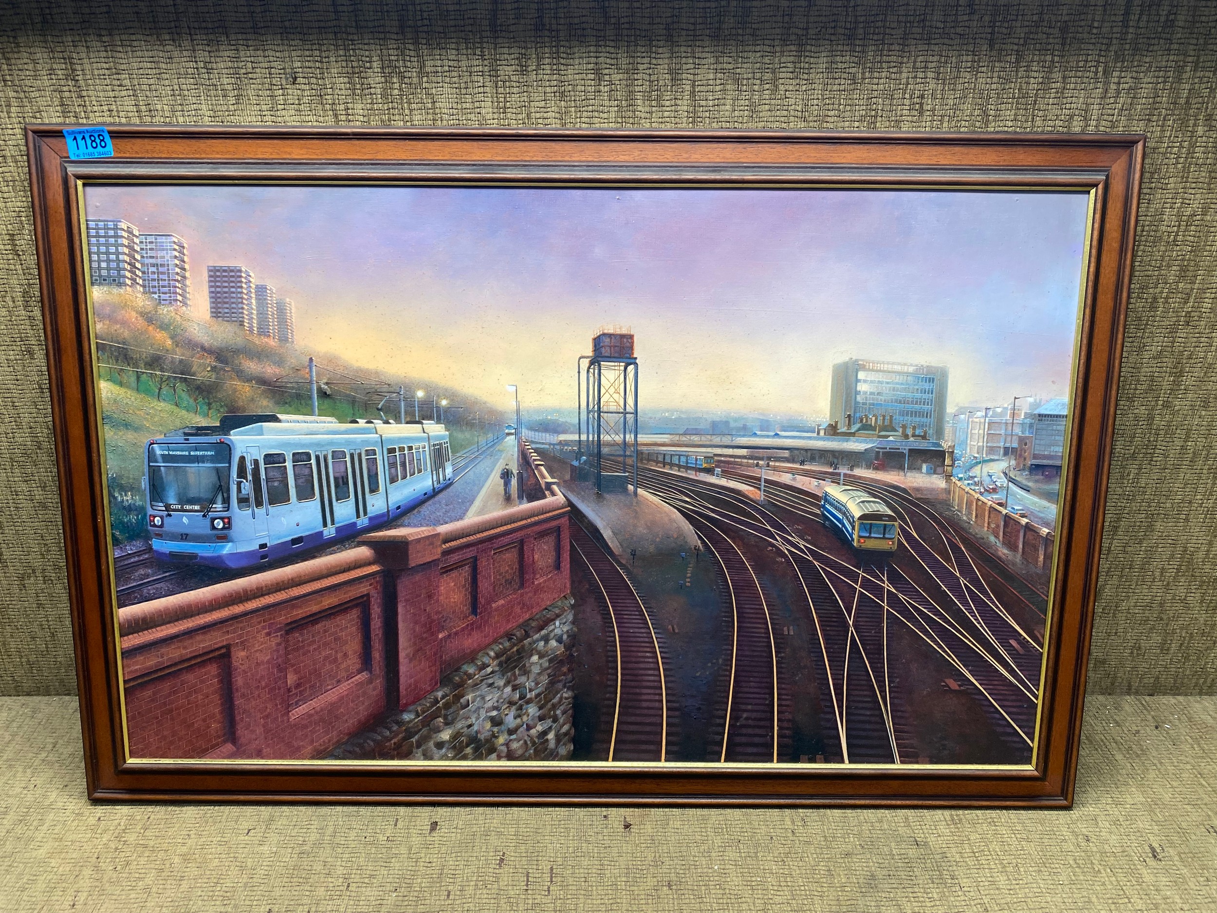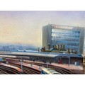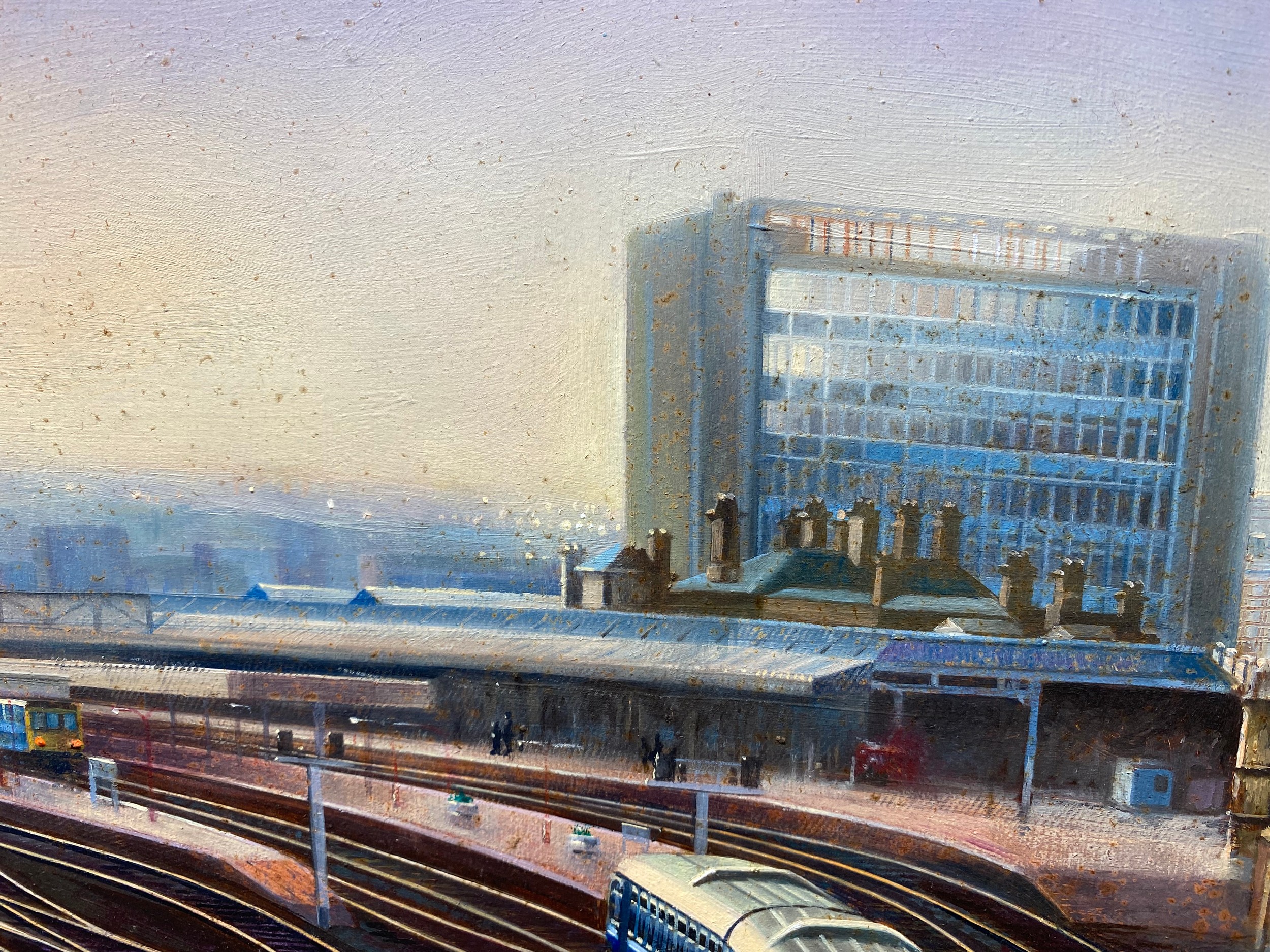 Large original oil on board by the artist Carl Henderson b. 1949 (guild of railway artists) Titled Sheffield station 98cm x 65cm