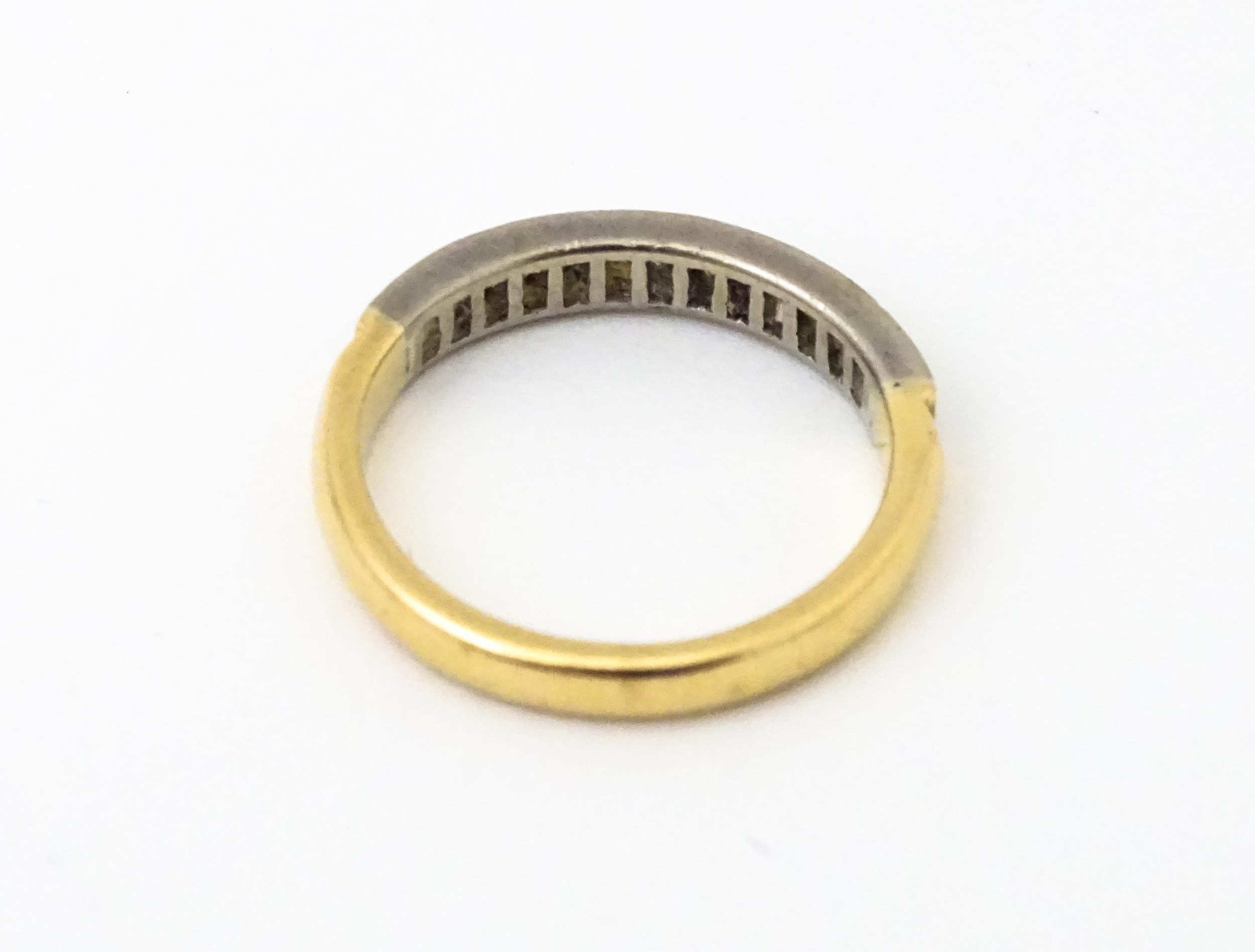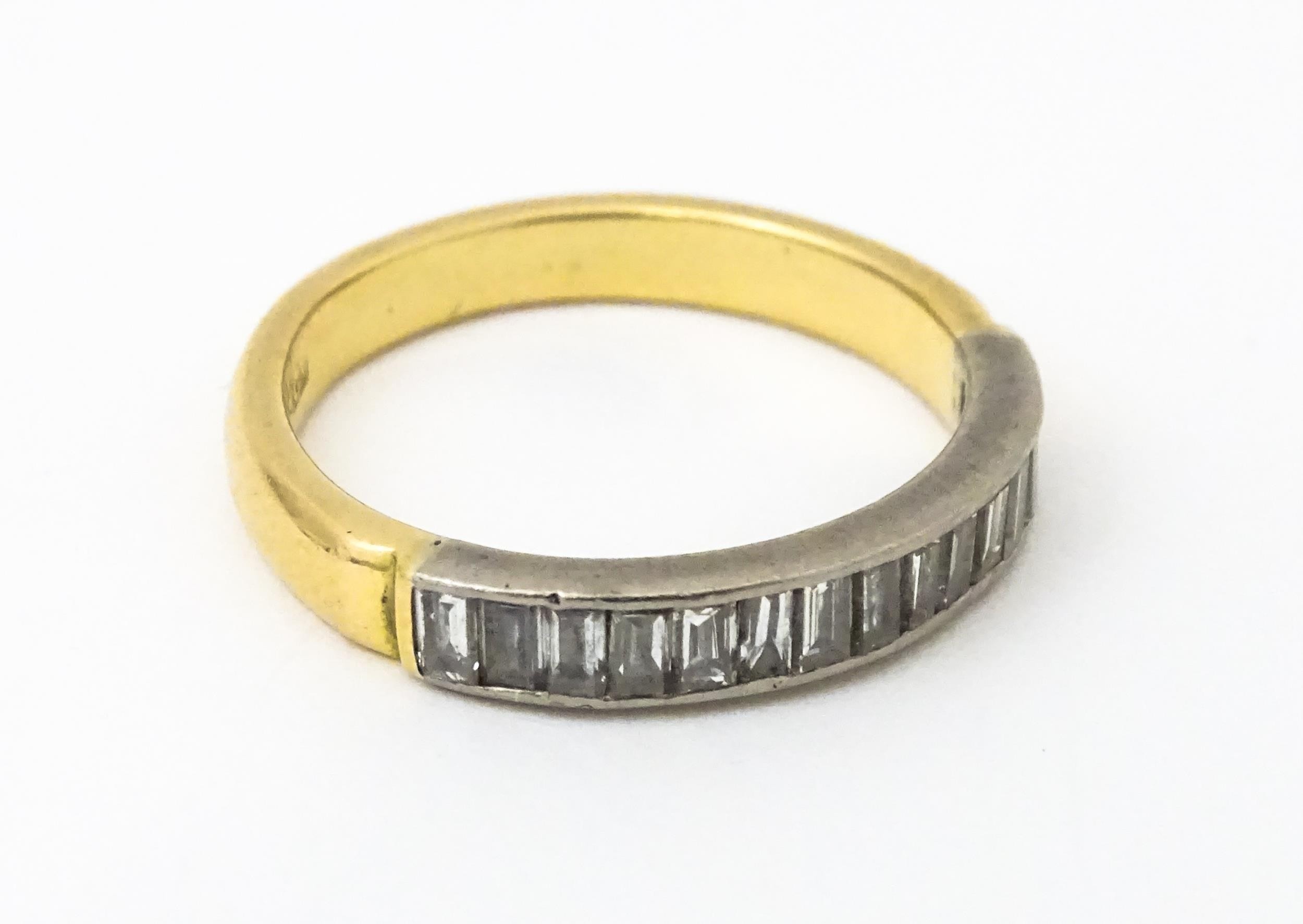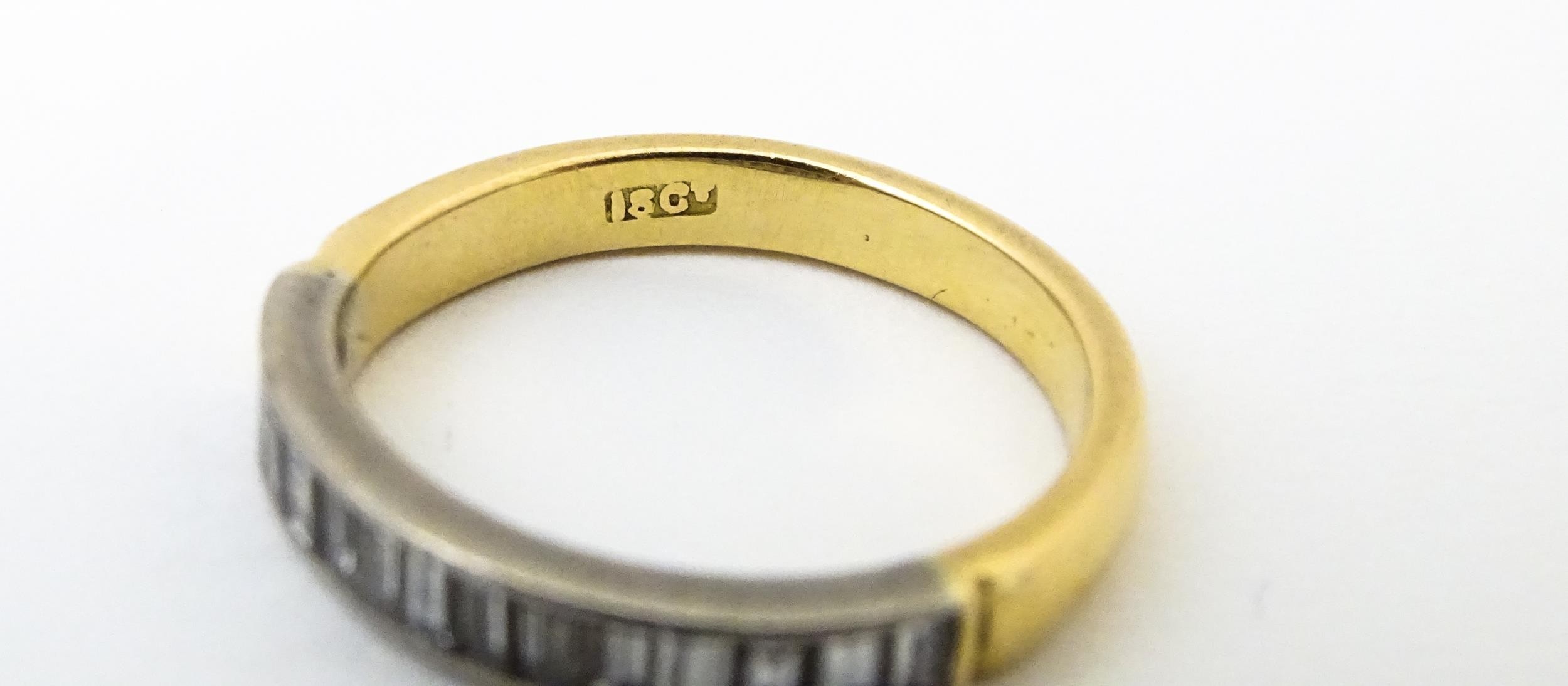 An 18ct gold half eternity ring set with 15 baguette cut diamonds. Ring size approx. M 1/2