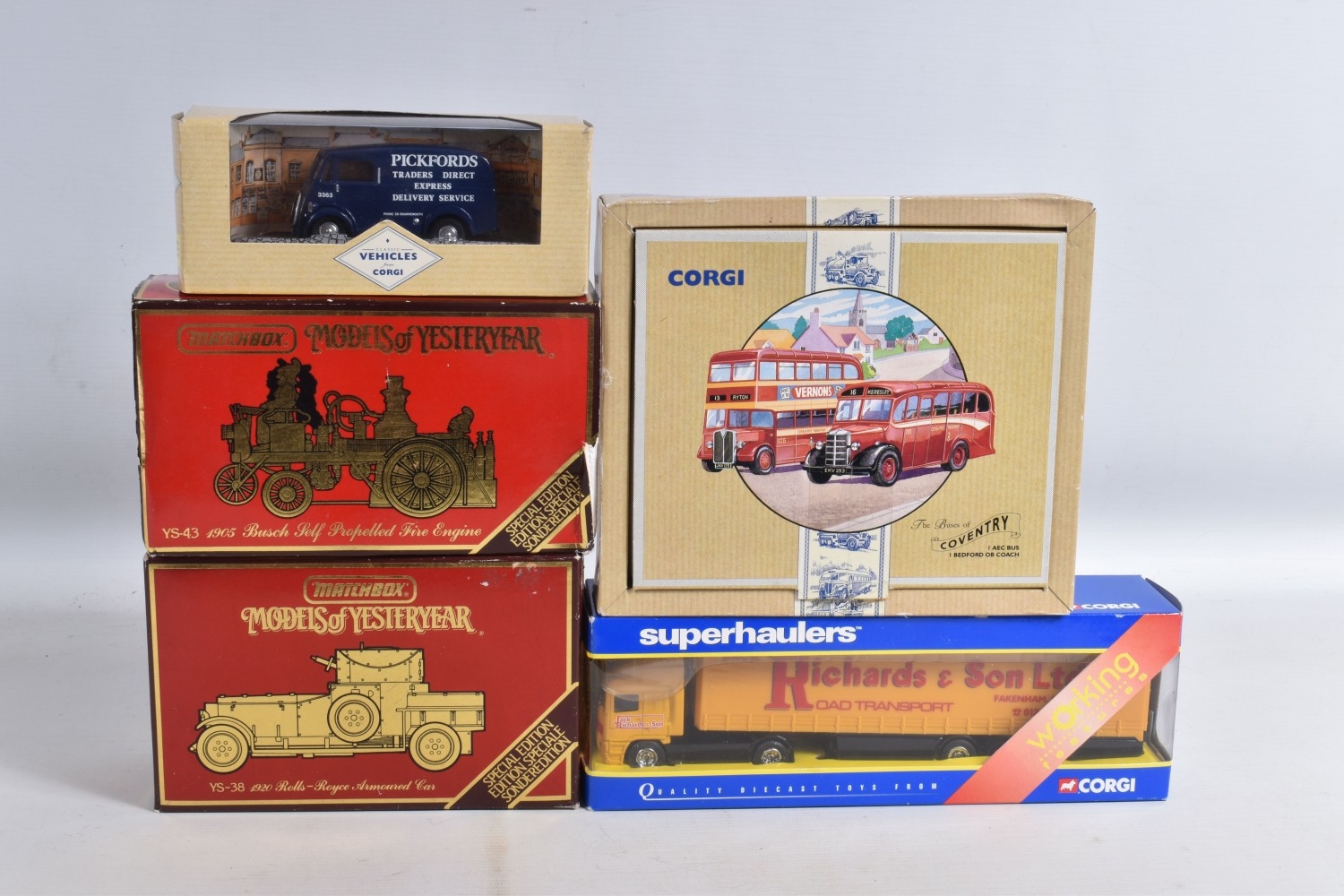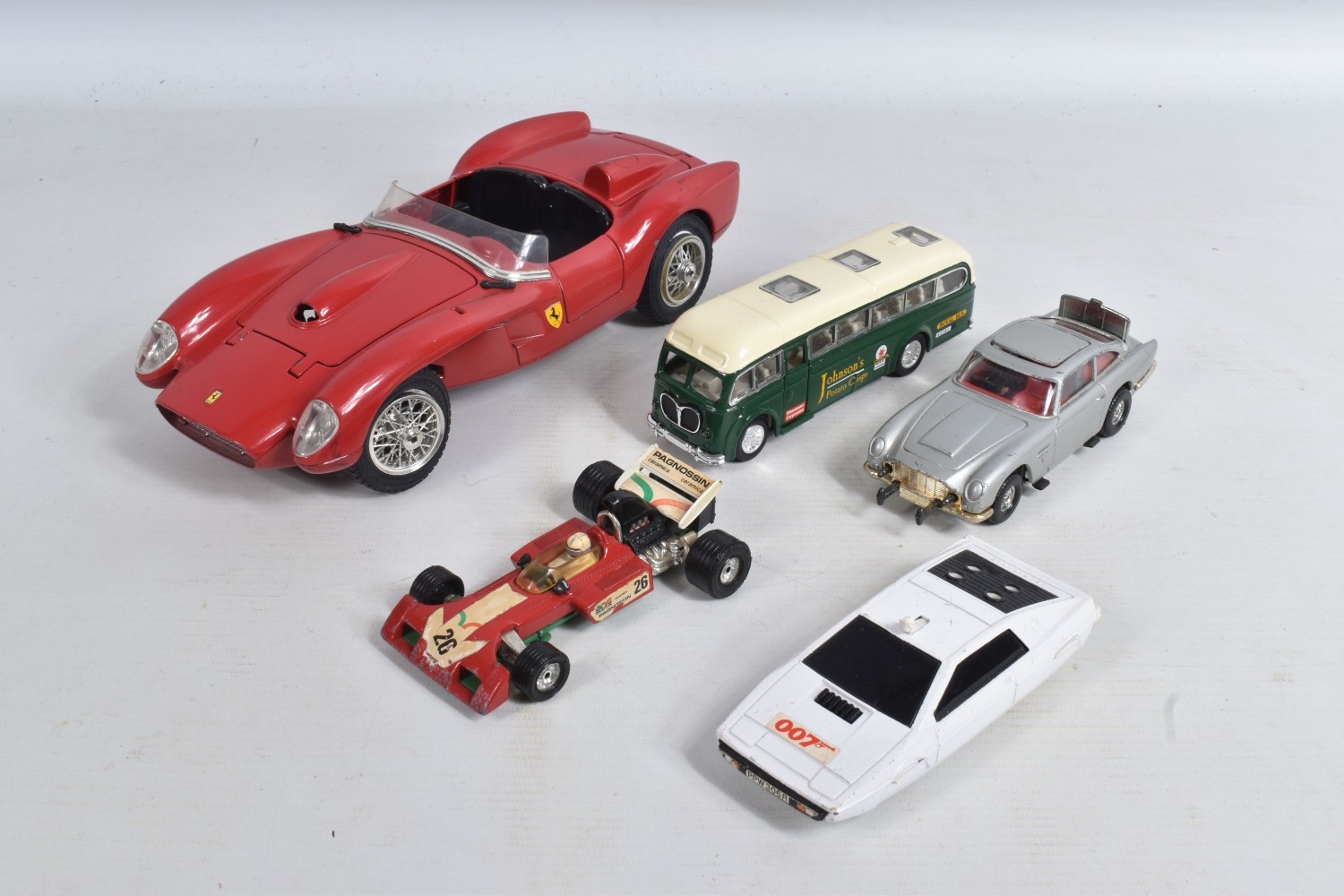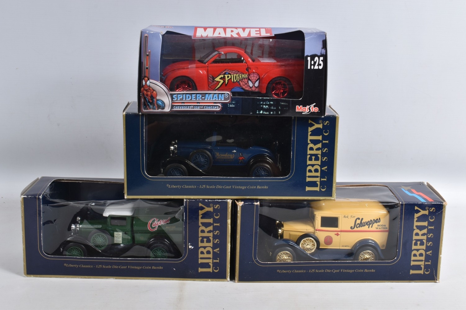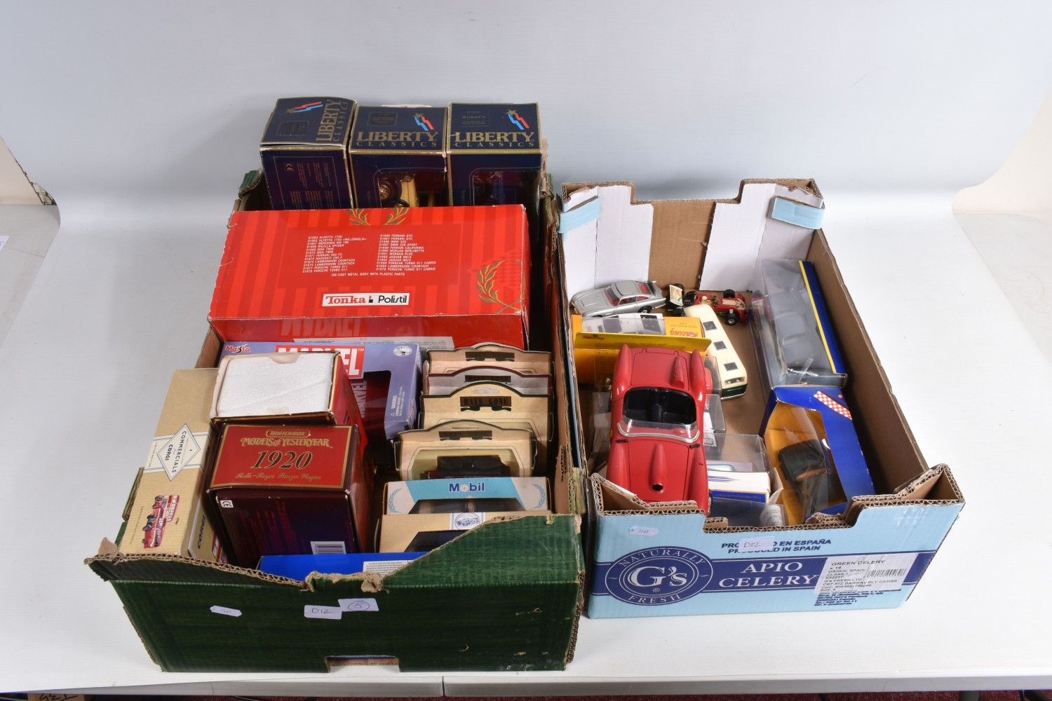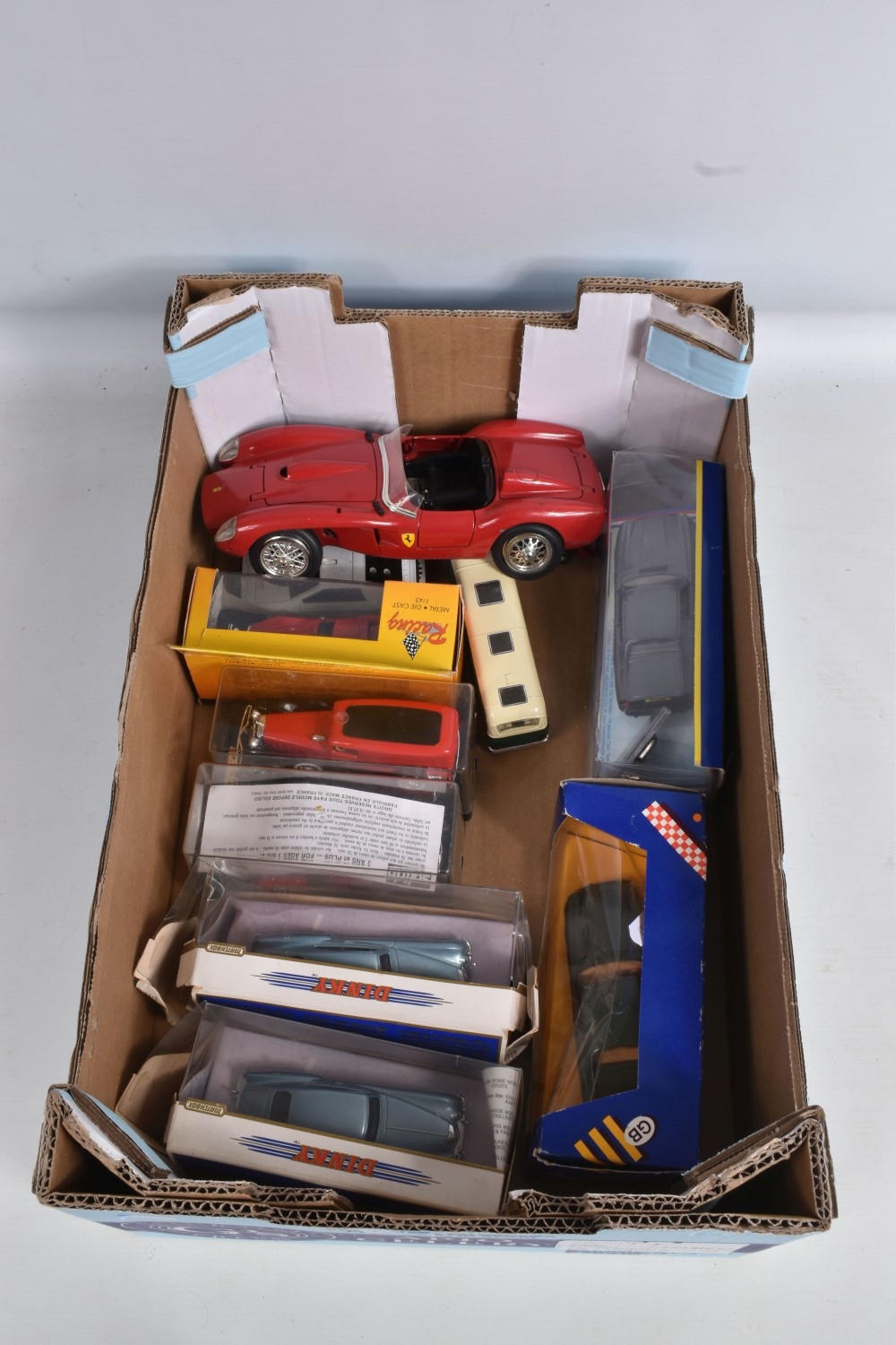 A COLLECTION OF VARIOUS SCALE BOXED AND UNBOXED MODERN DIECAST VEHICLES, to include boxed Corgi, Lledo, Maisto, and Matchbox, including a Corgi Jaguar XJS no. C318/4, two Dinky Matchbox 1955 Bentley 'R' Continental no. DY-13, a Corgi Superhaulers ERF Curtainside 'Jack Richards & Sons' no. TY86803, two unboxed Corgi James Bond 007 cars, an Aston Martin DBS in silver and a Lotus Esprit in white, a Lledo Days Gone 1934 Chevrolet Van 'Maggi's Soups' no. 21032, a Maisto Marvel Spider-Man Chevrolet SSR Concept no. 31002 to name a few, an unboxed Bburago Ferrari 250 Testa Rossi no. 3007, two unboxed Corgi James Bond 007 cars, an Aston Martin DBS in silver and a Lotus Esprit in white and similar models, an empty Tonka Polistil box for a Ferrari GTO, the box has creases and the plastic window has come loose, the models vary in condition from good to playworn, the outer packing showing signs of wear on corners and edges. contents have not been checked for completeness (2 boxes)