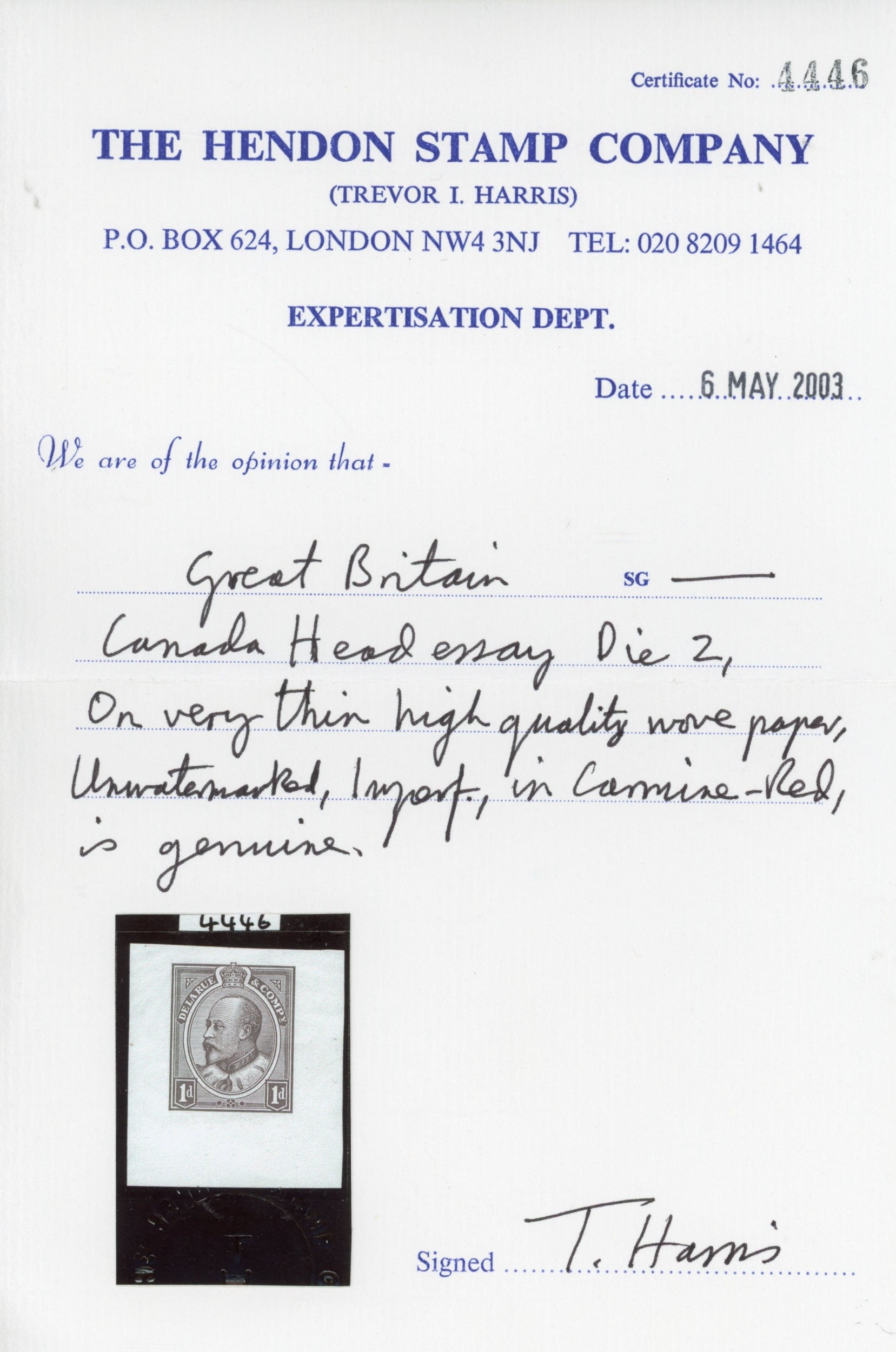 GB 1903 1d 'Canada Head' colour trial