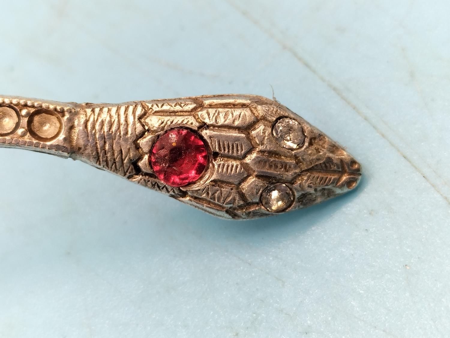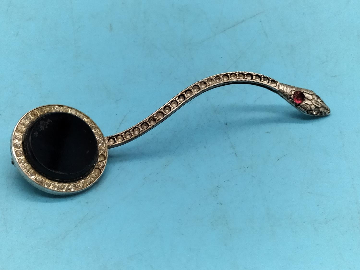 Art Deco Black Stone and Diamante Snake Brooch. Some Stones Missing.