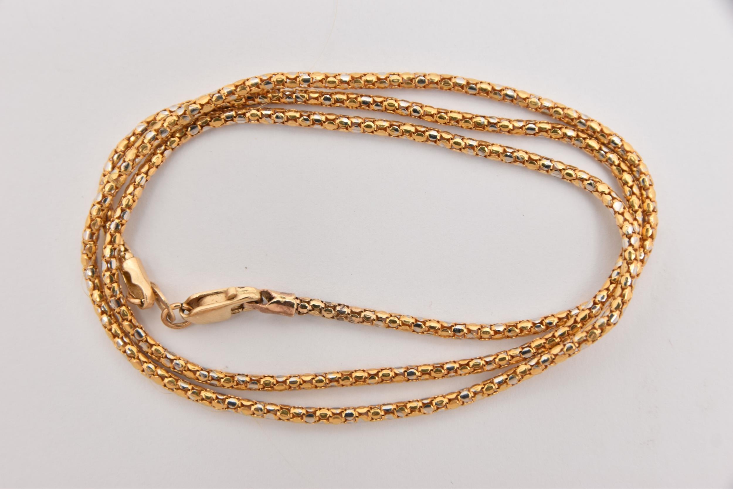 A BI-COLOUR SNAKE CHAIN NECKLACE, fitted with a lobster clasp, stamped 585 Italy, length 400mm, approximate gross weight 3.4 grams (condition report: general light wear, clasp slightly stiff)