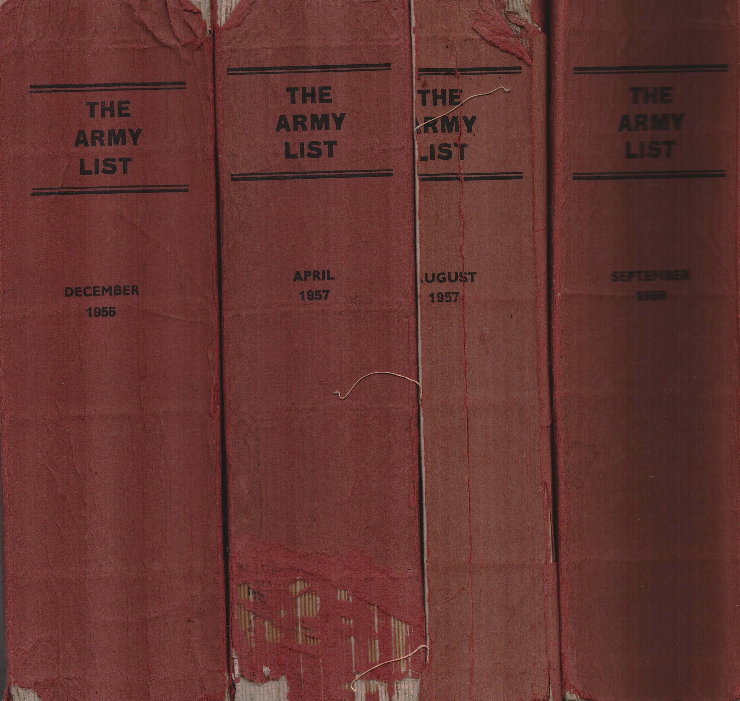 The Army List Paperback Books Collection 4. December 1955, April 1957, August 1957, September 1958. Some Spine are Torn plus 2 front pages torn.