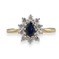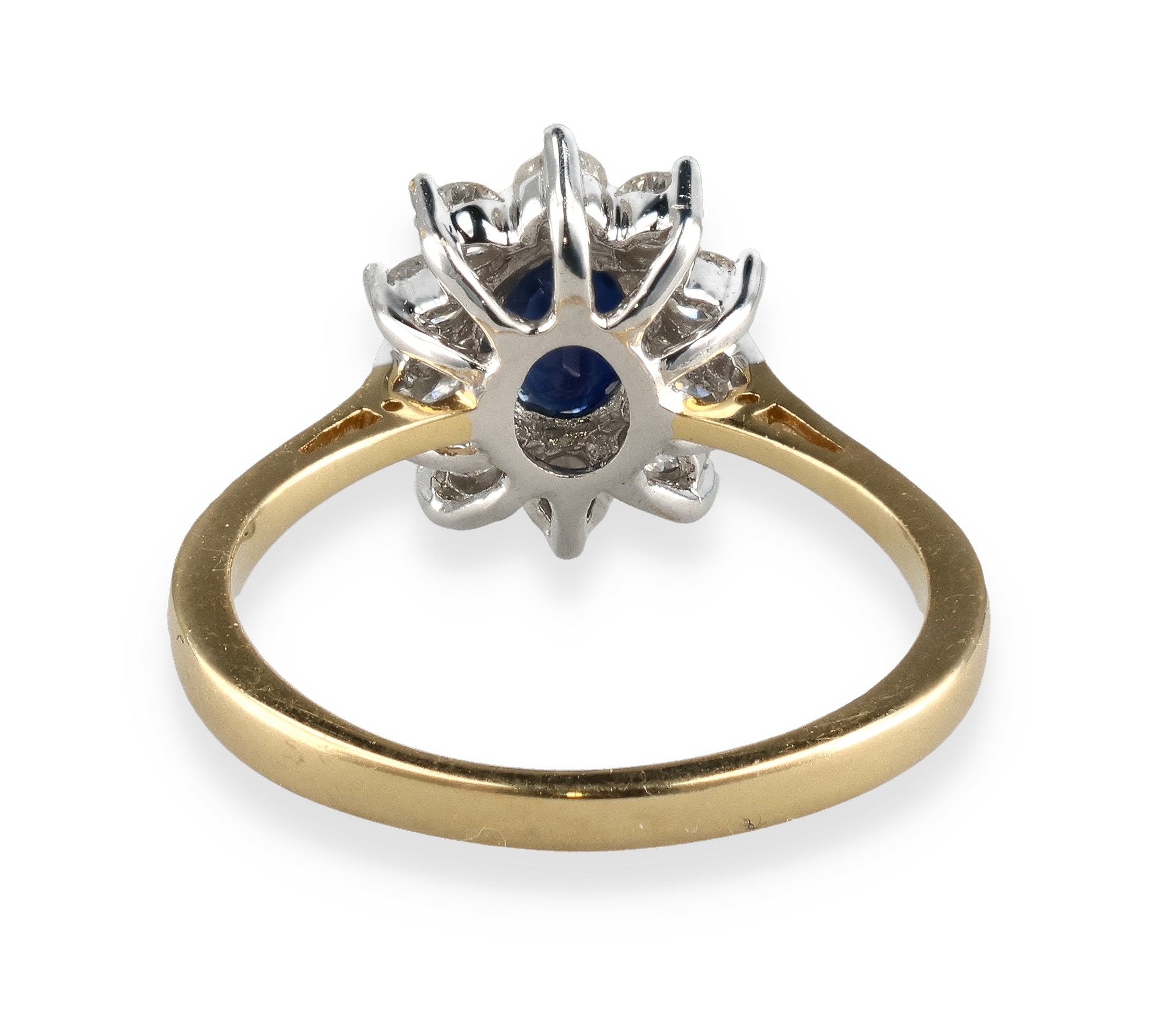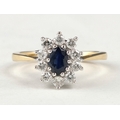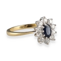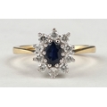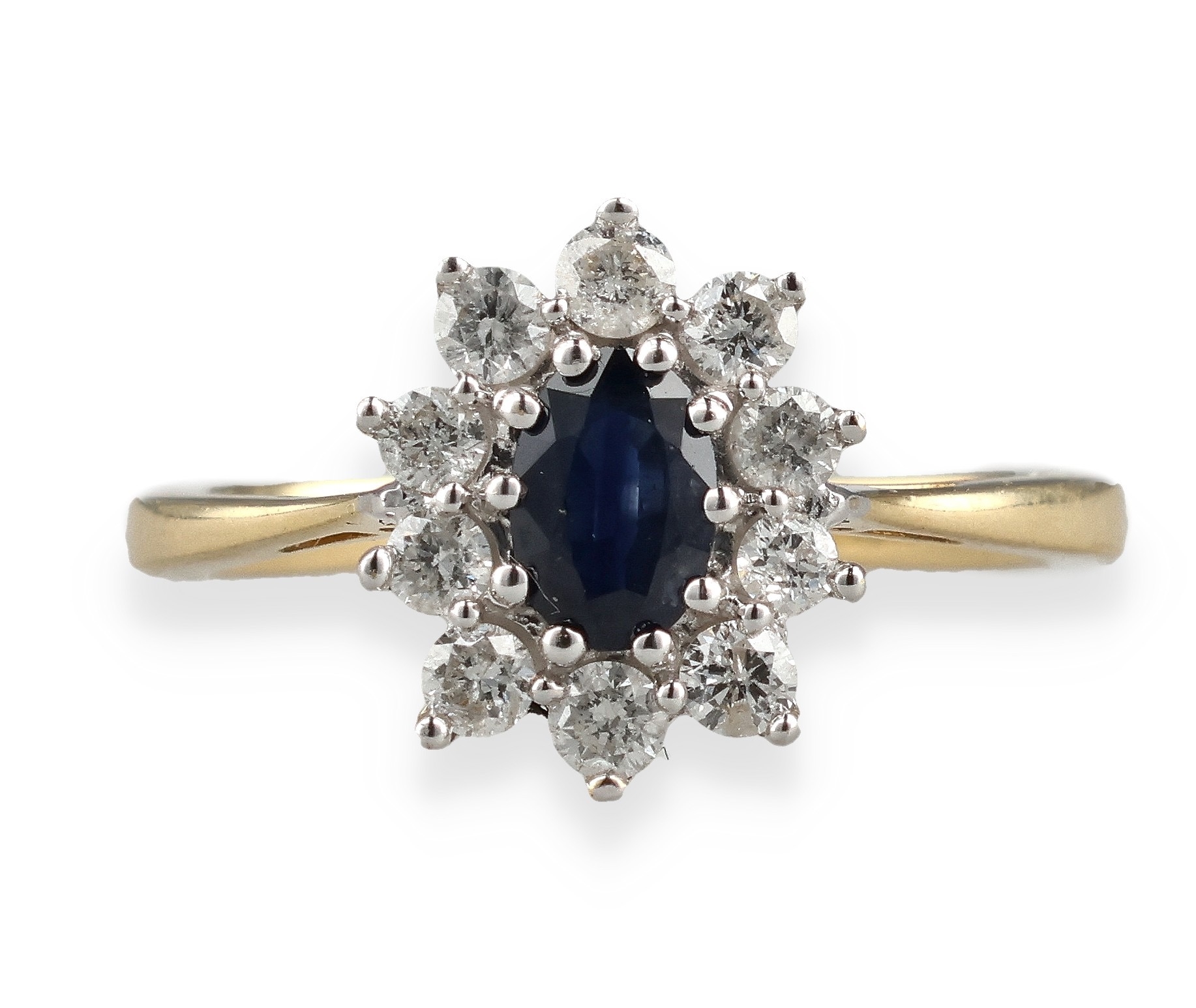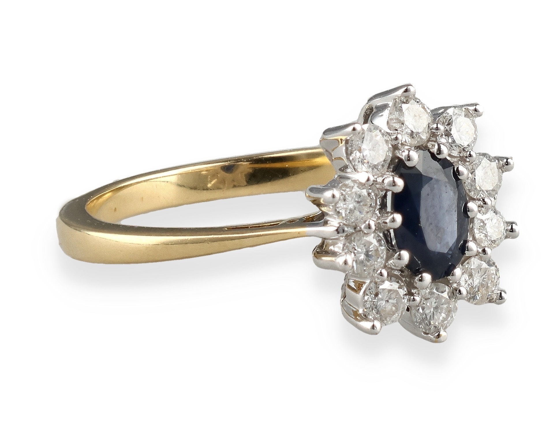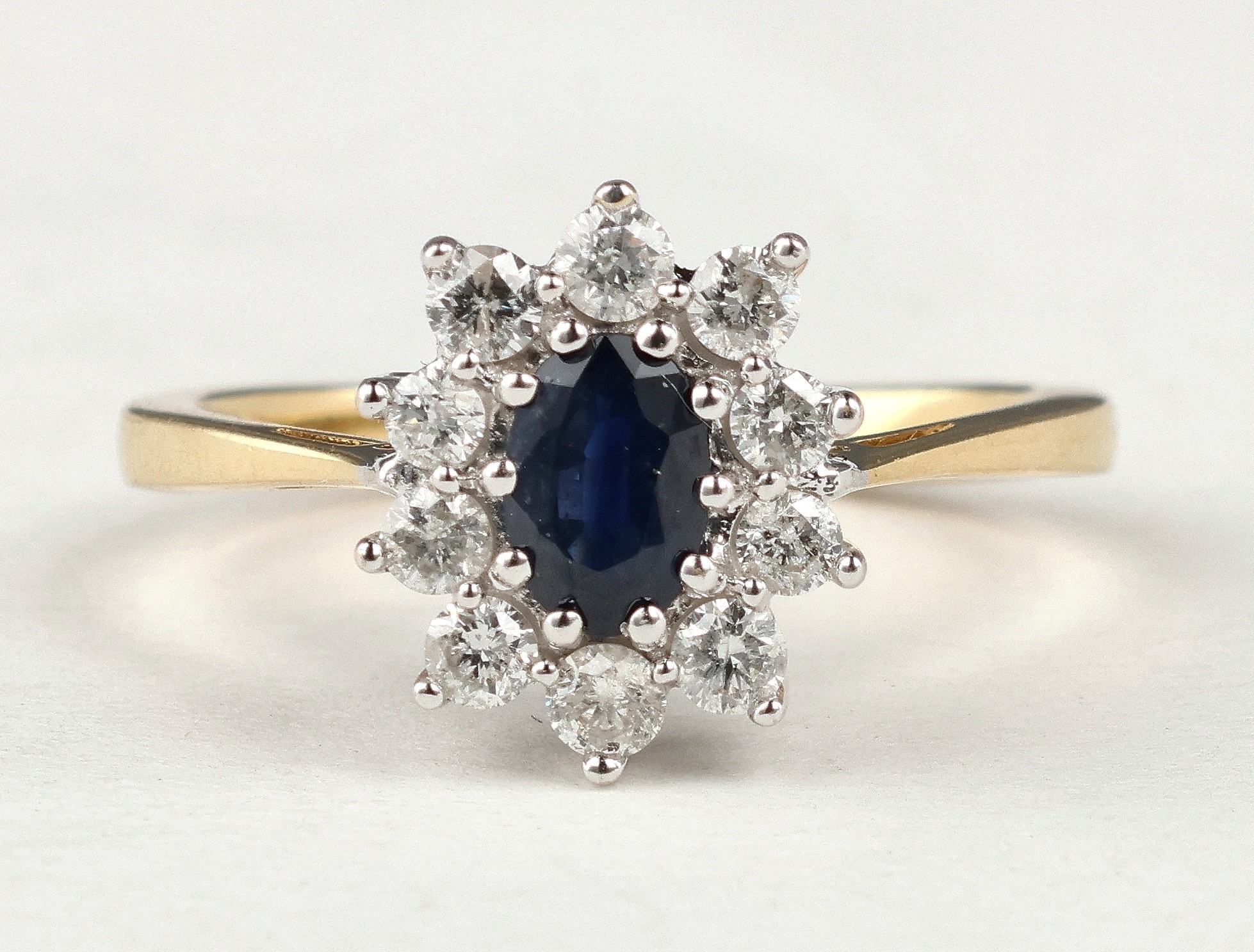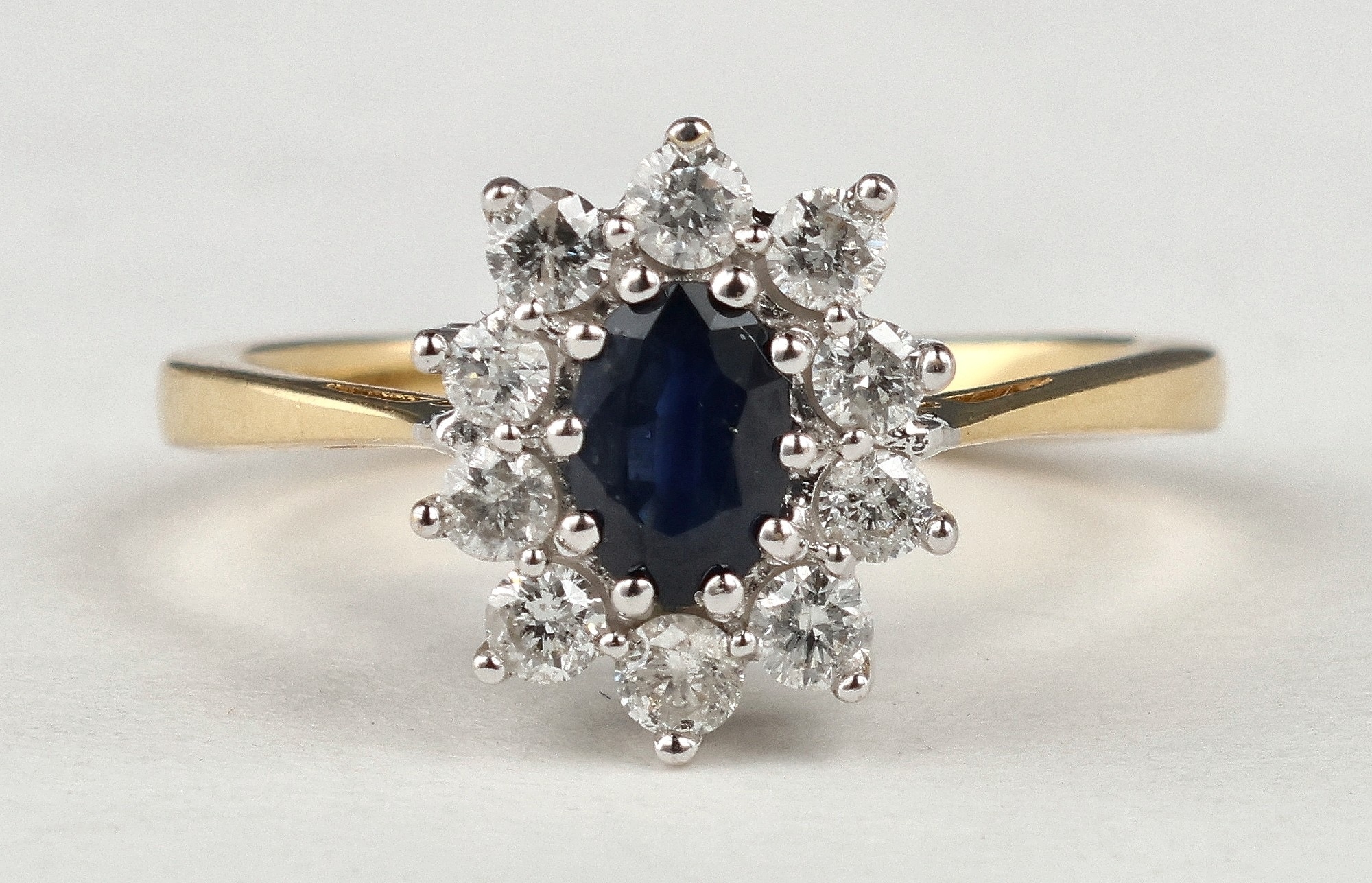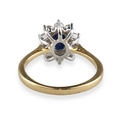 AN 18CT GOLD SAPPHIRE AND DIAMOND CLUSTER RING, 50 POINTS DIAMONDS