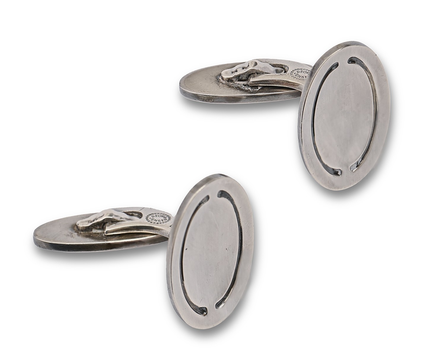 Georg Jensen. A pair of silver cufflinks 75, designed by Poul Hansen, oval 24mm, maker's mark and card box, 15g