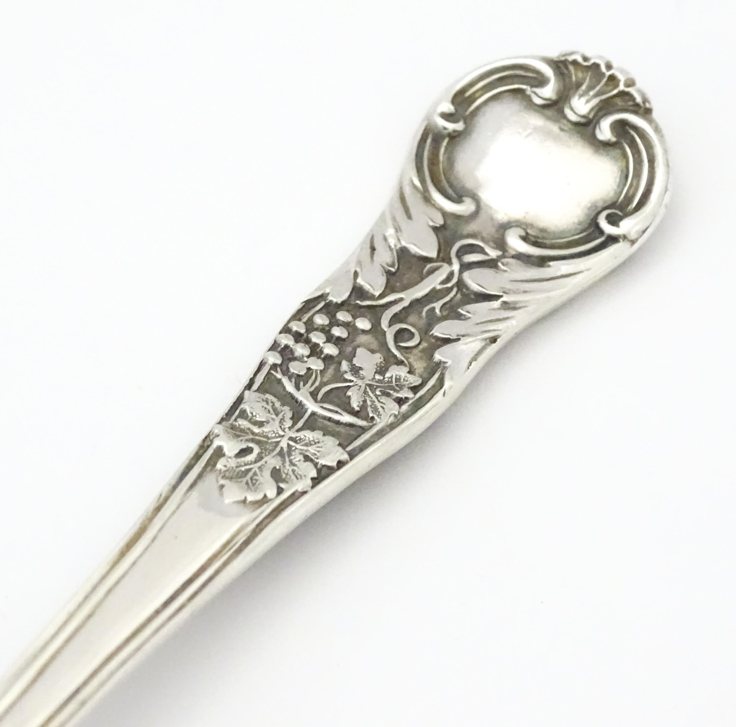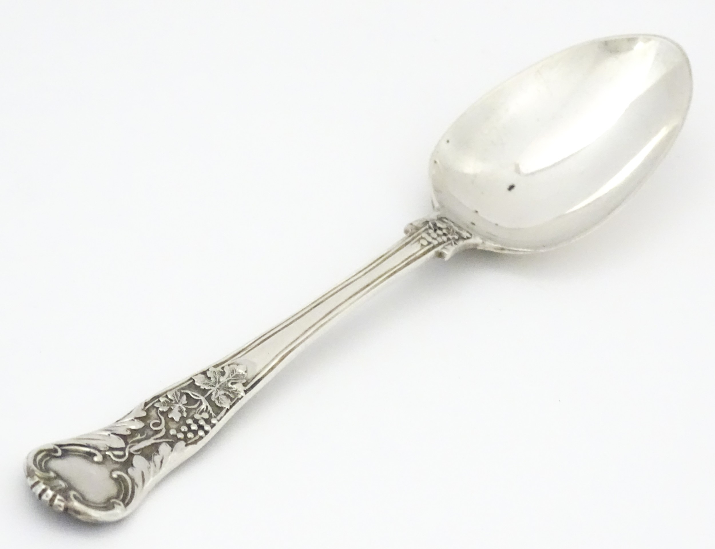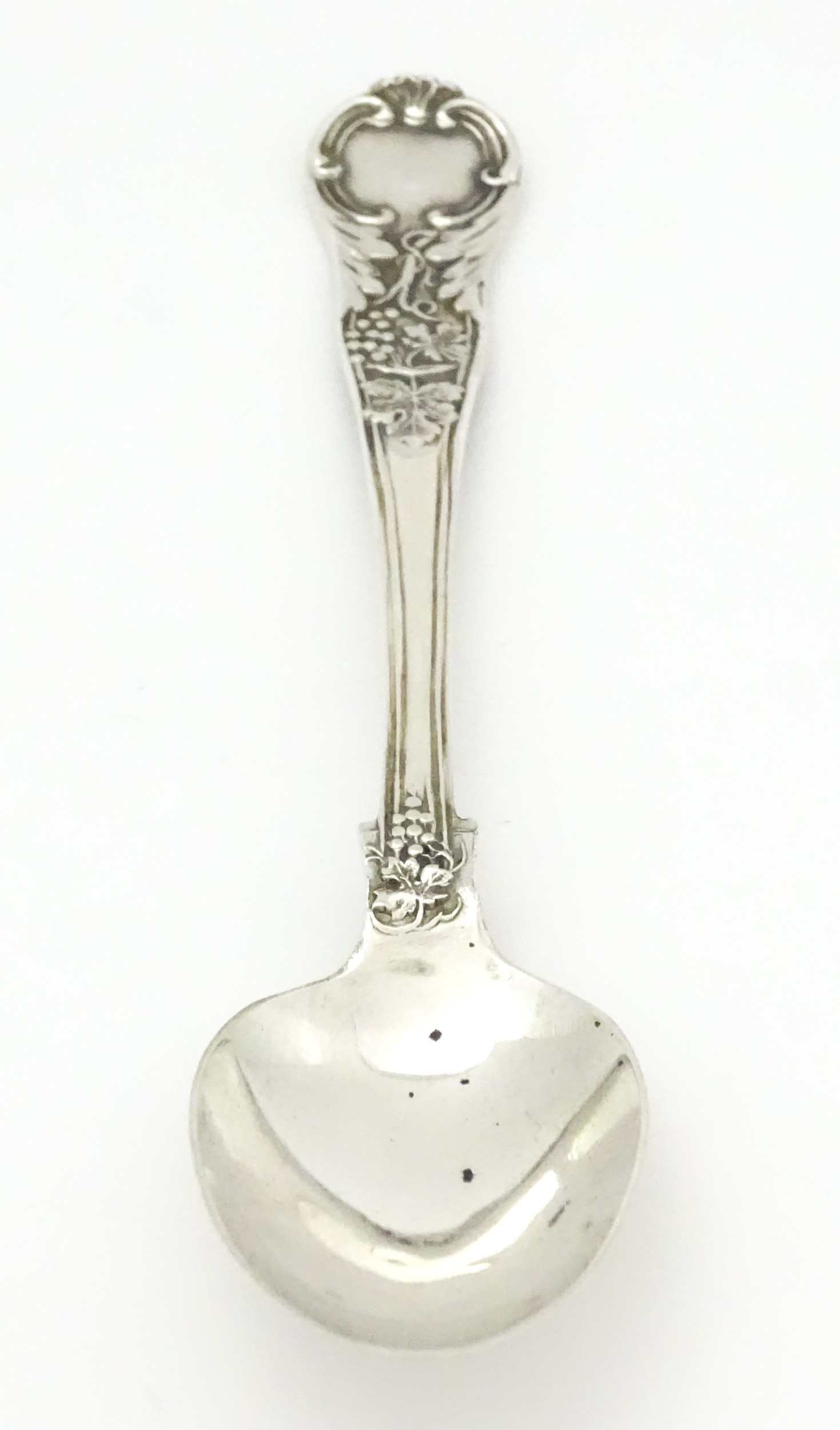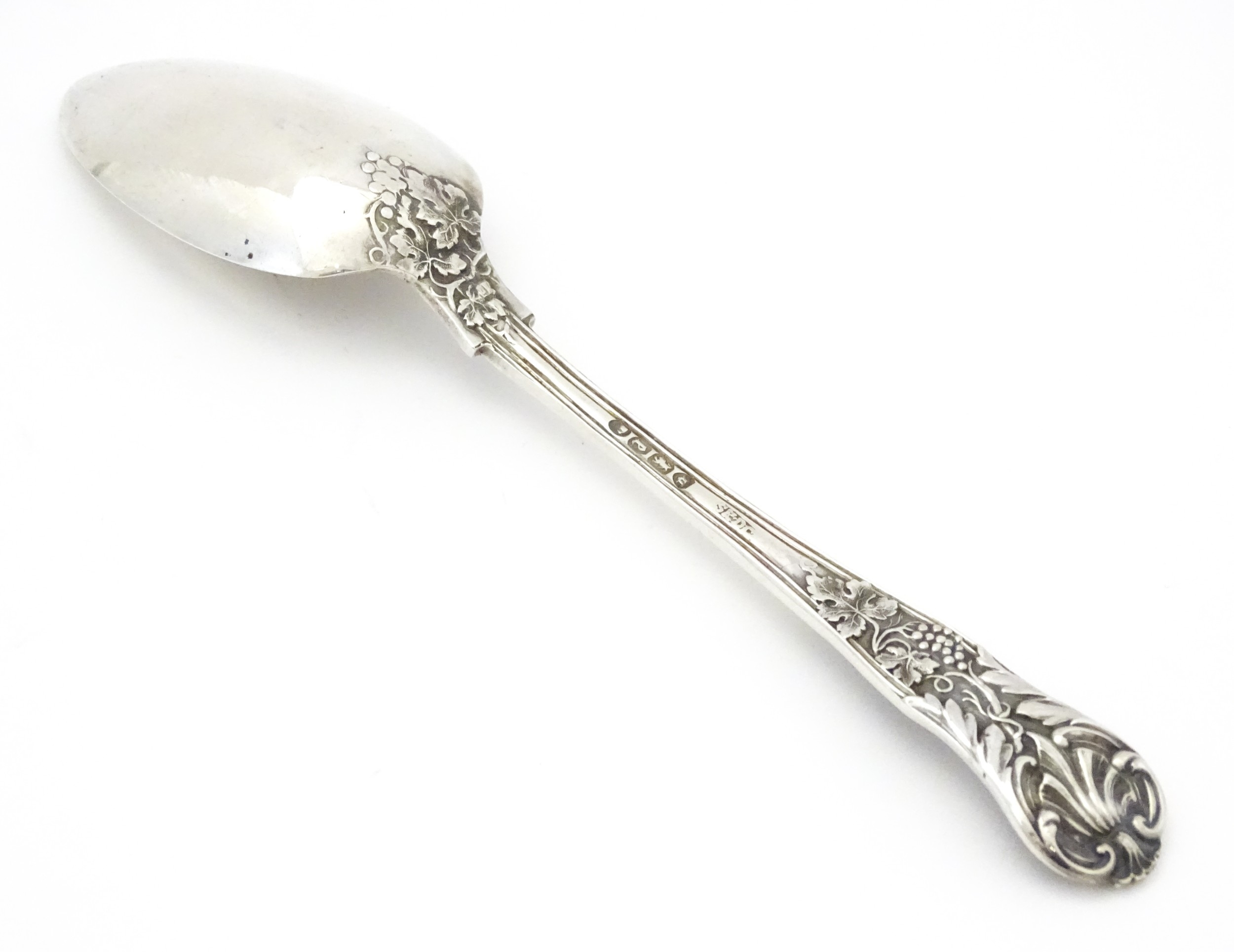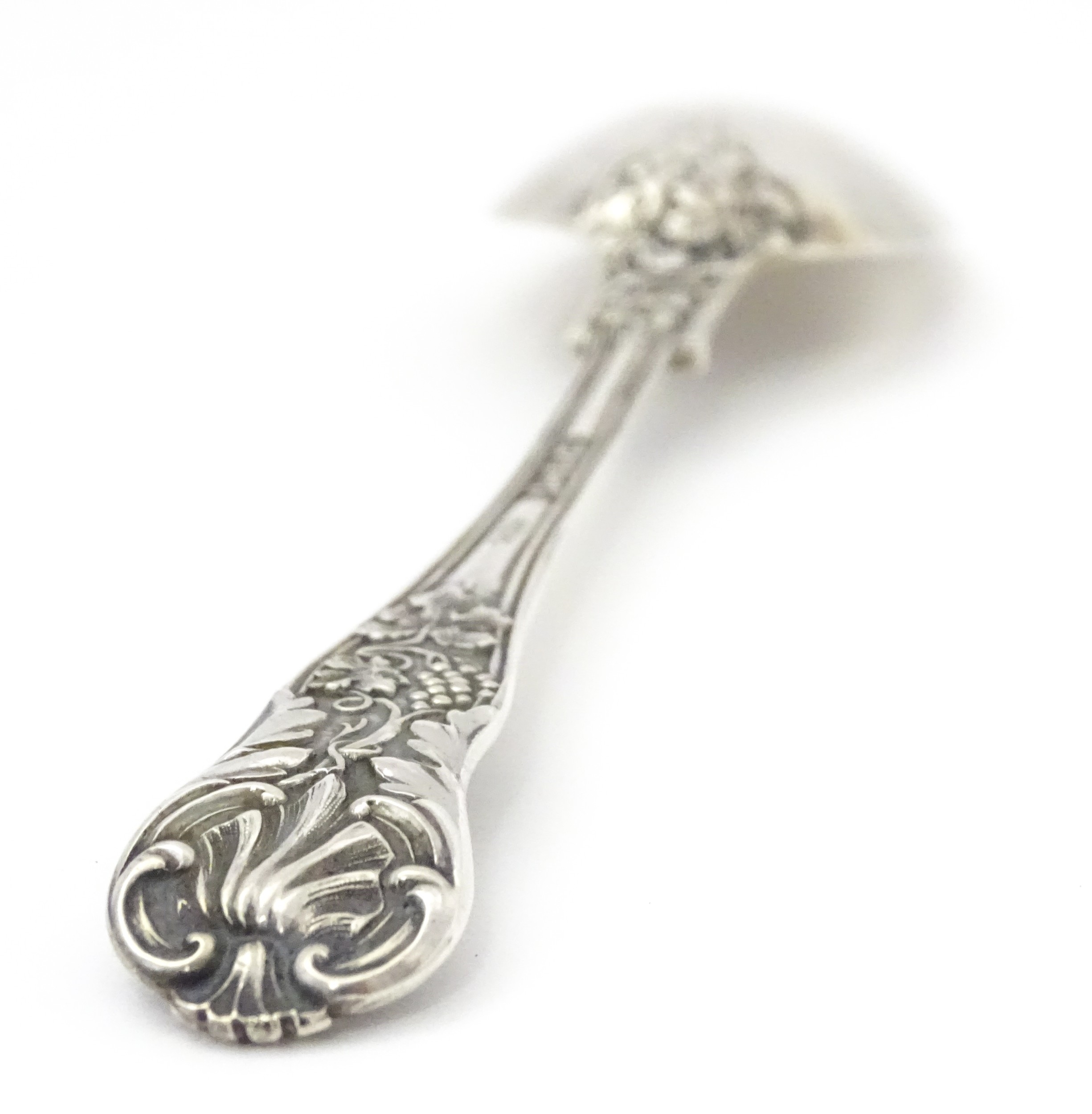 A cased Victorian silver Christening spoon with fruiting vine decoration, hallmarked London 1879, maker Samuel Hayne & Dudley Cater. Approx. 6 1/4" long