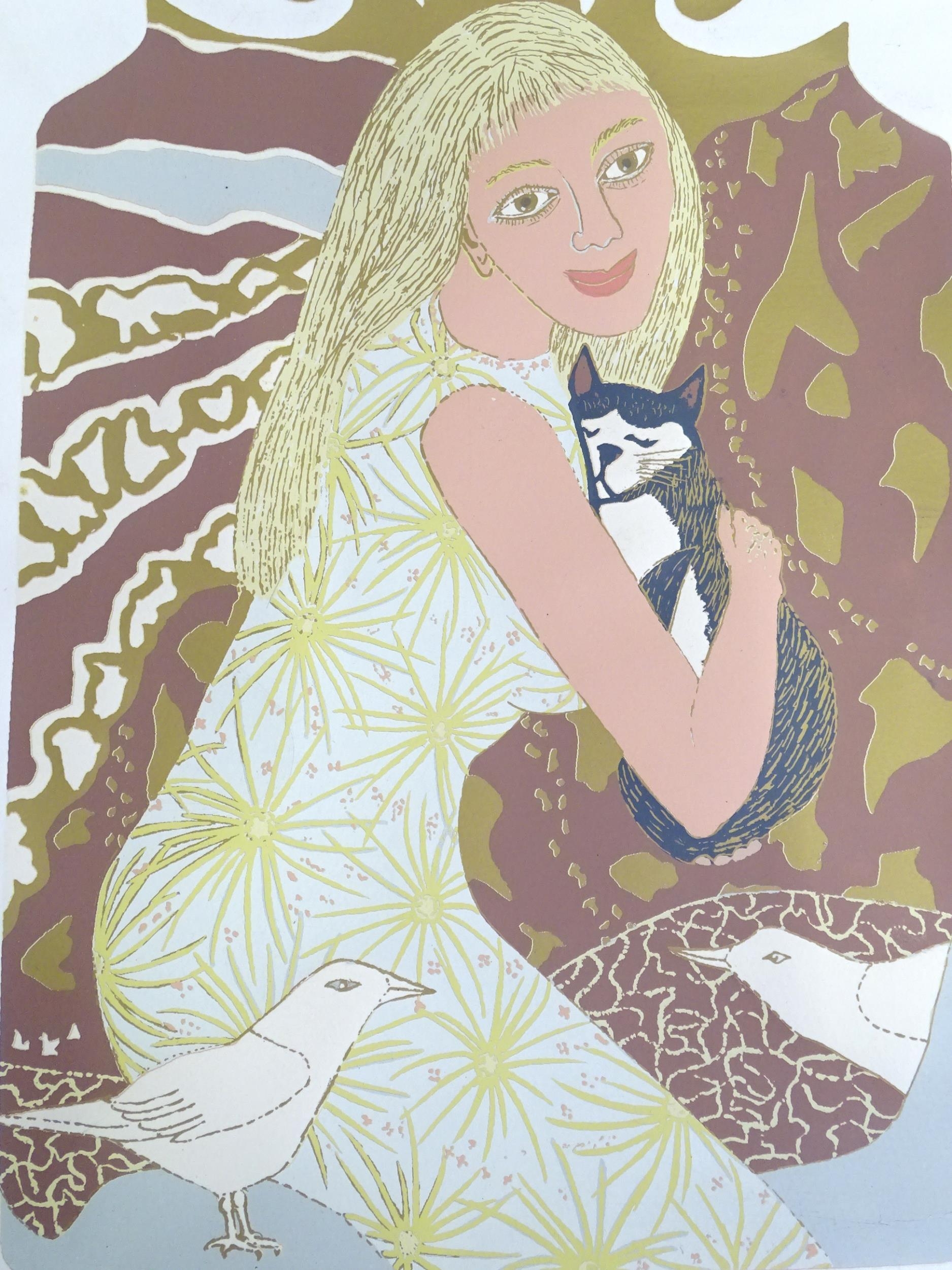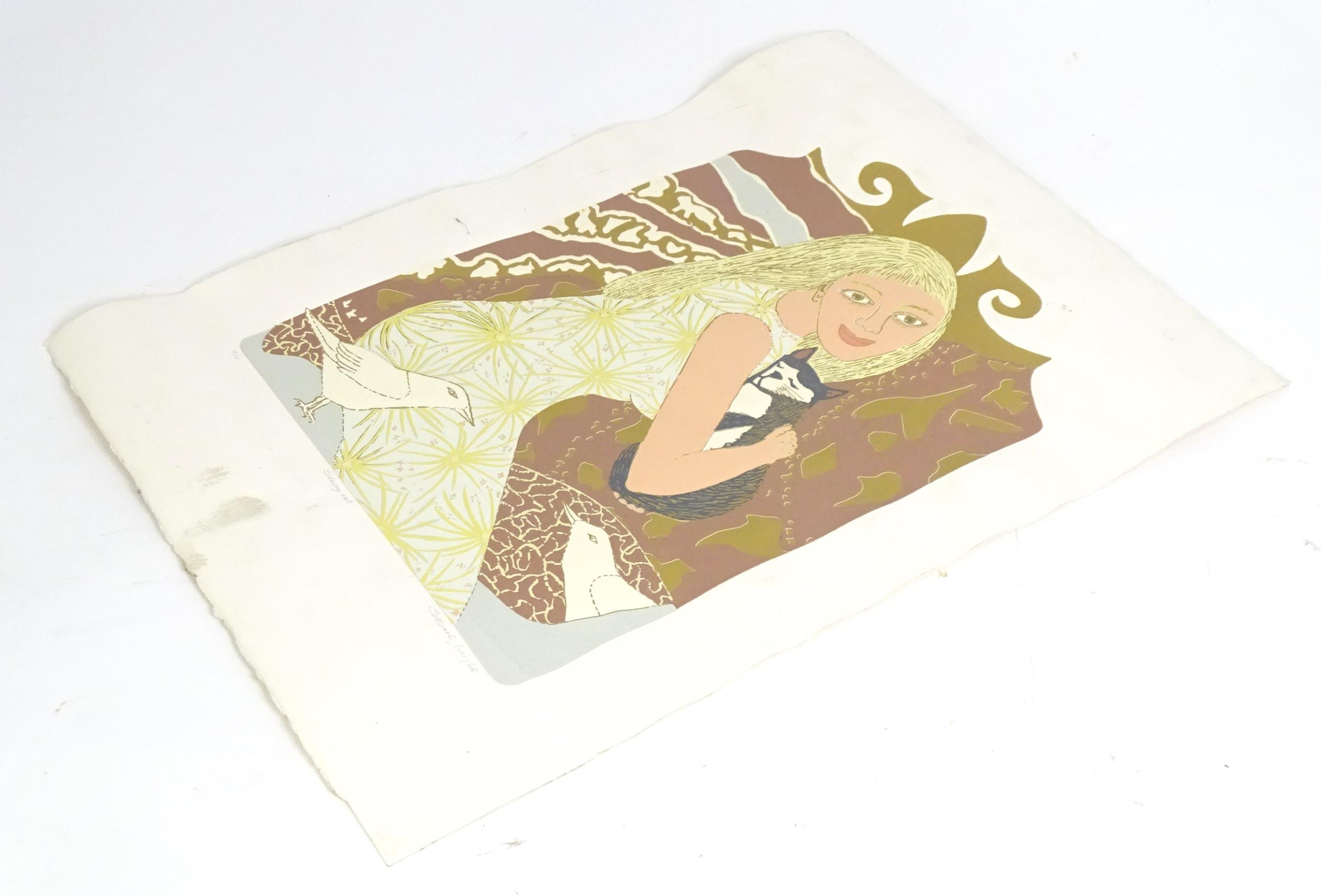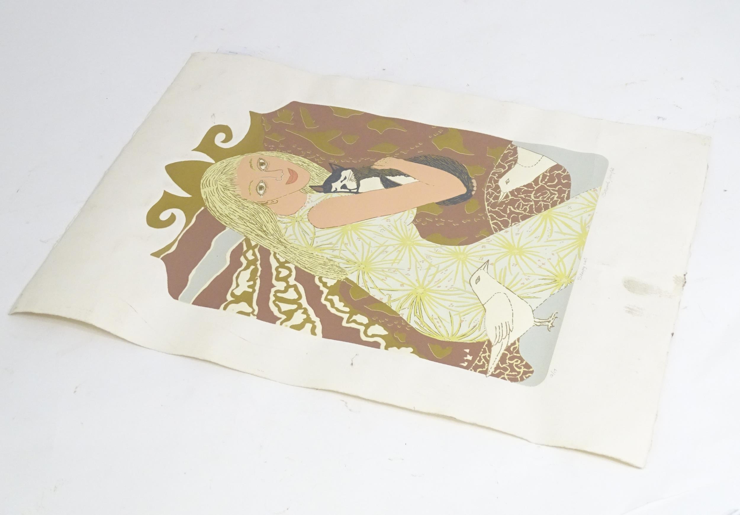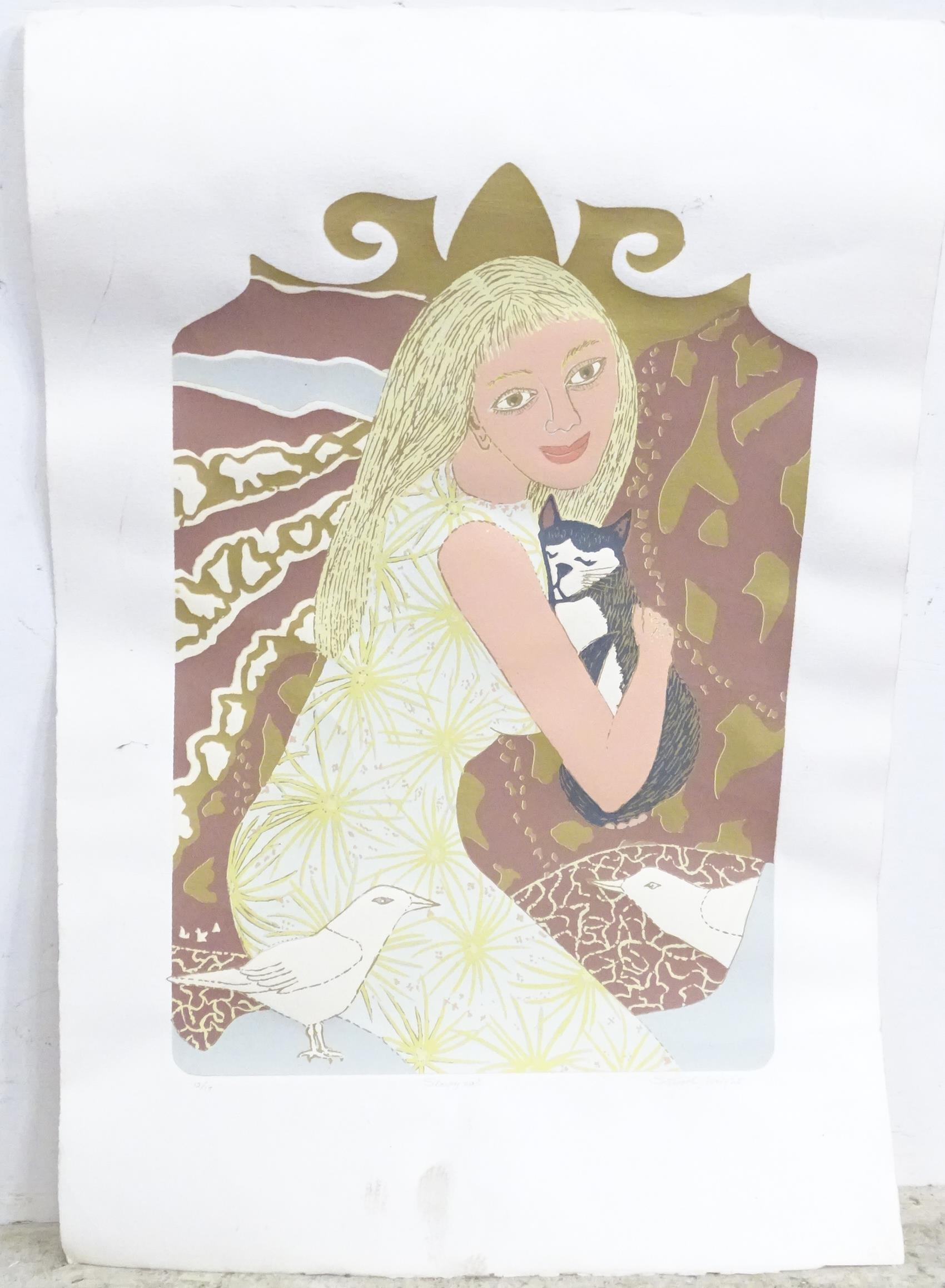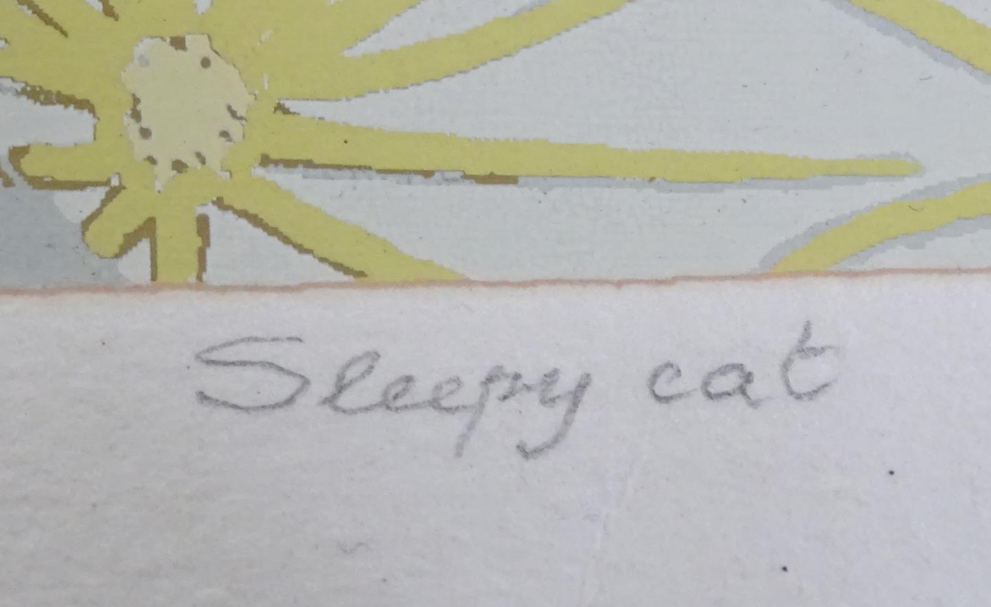 A 20thC signed limited edition print titled Sleepy Cat by Stewart Thomas Charles Wright (1924-2007). Signed, titled and numbered 12/17 in pencil under. Approx. 16 1/2" x 11"