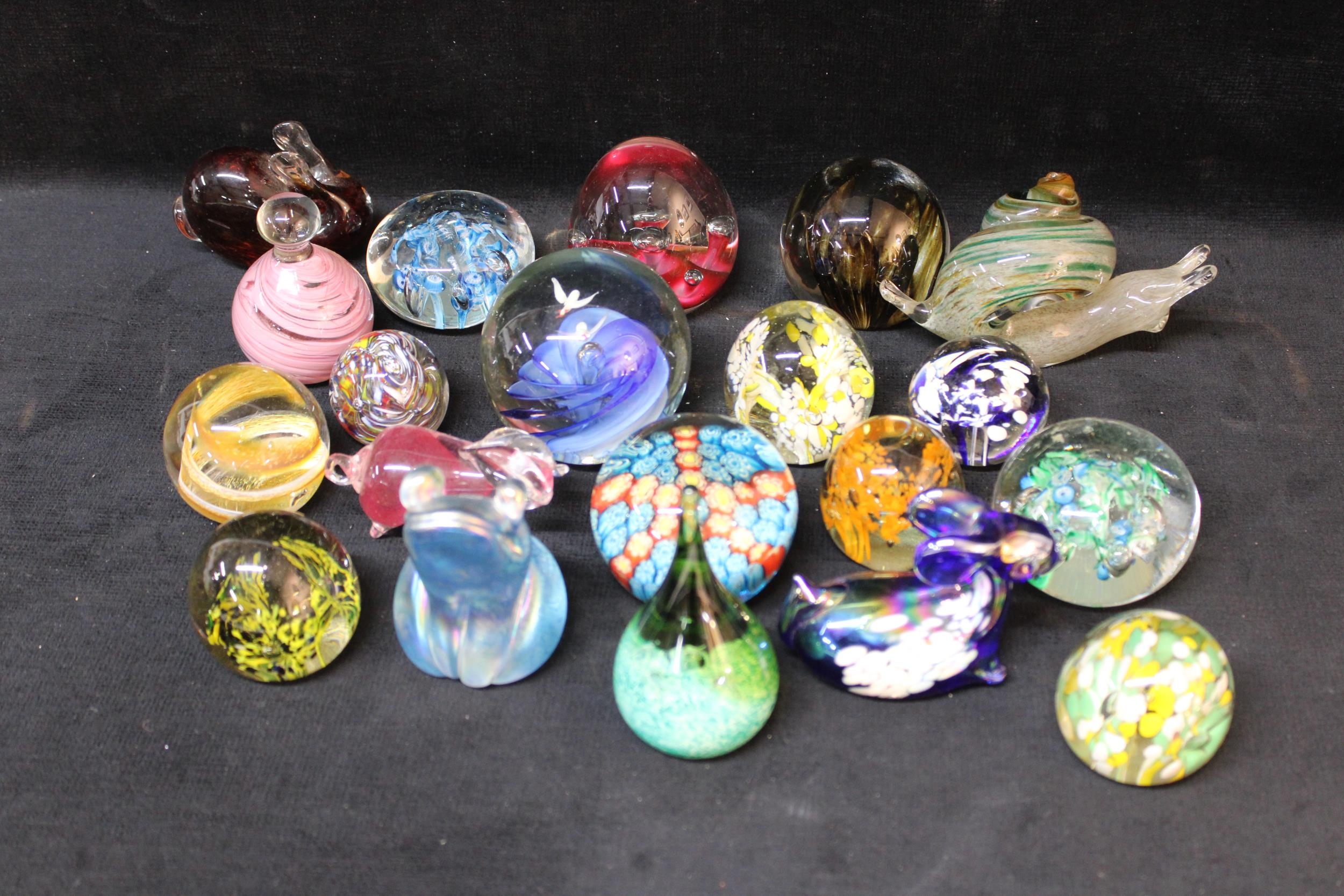 Twenty assorted glass paperweights