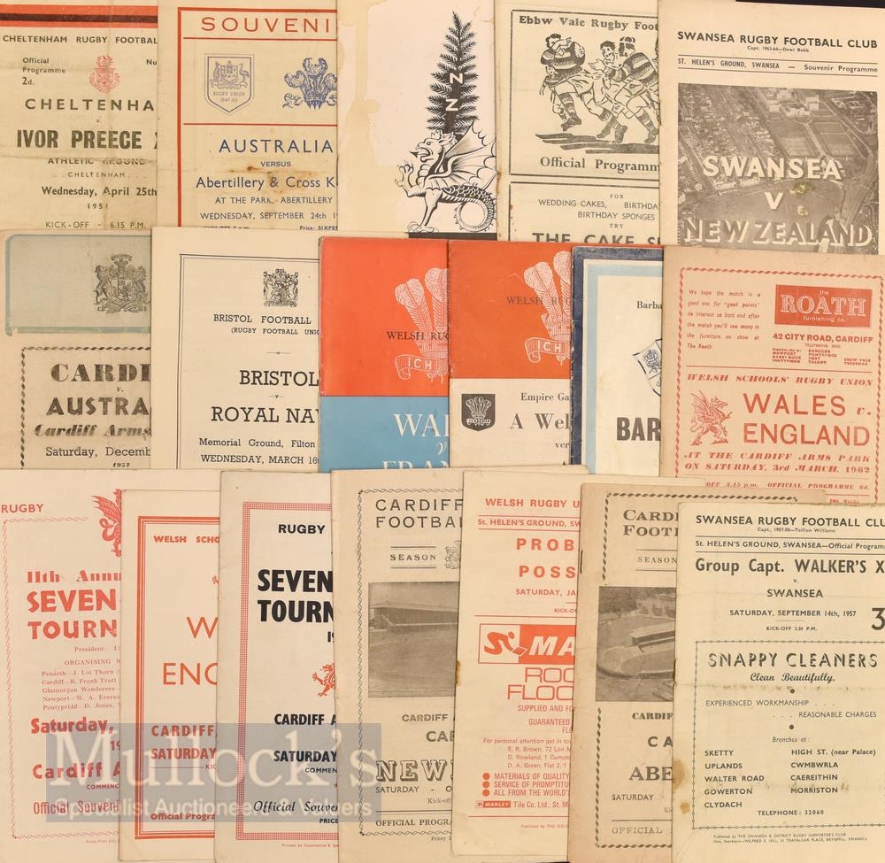 Assorted Selection of Rugby League Programmes featuring 51 Cheltenham v Ivor Preece XV, 47 Australia v Abertillery & Cross Keys, 67 South of England v New Zealand, 63 Swansea v New Zealand, 57 Cardiff v Australia, 66 Bristol v Royal Navy, plus others, varied condition A/G overall (#20)