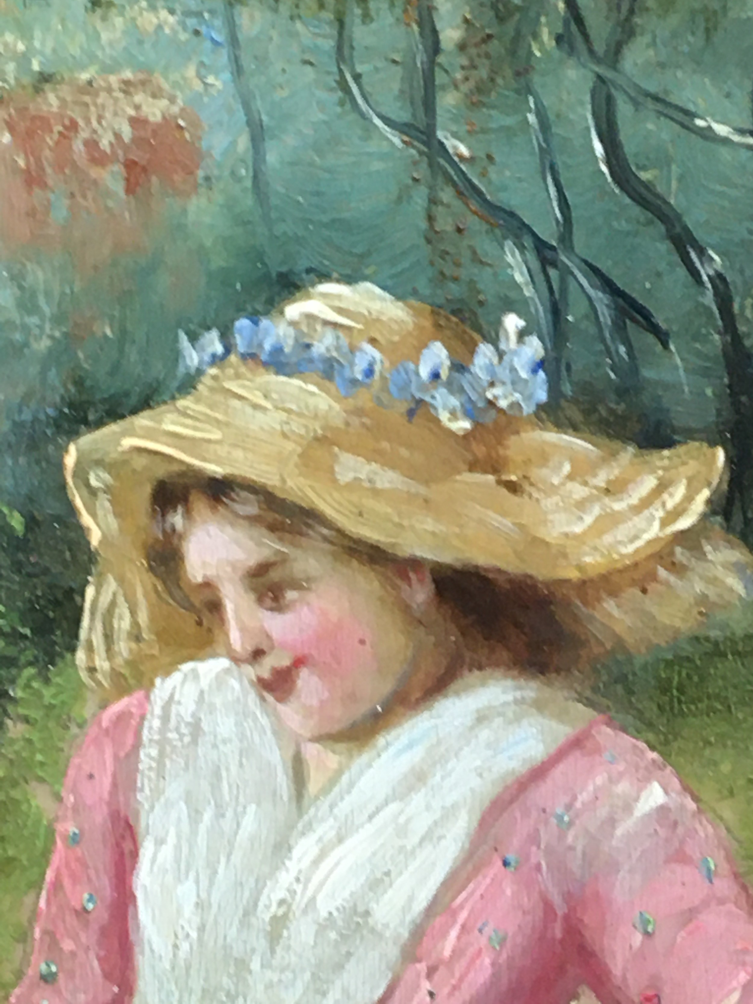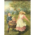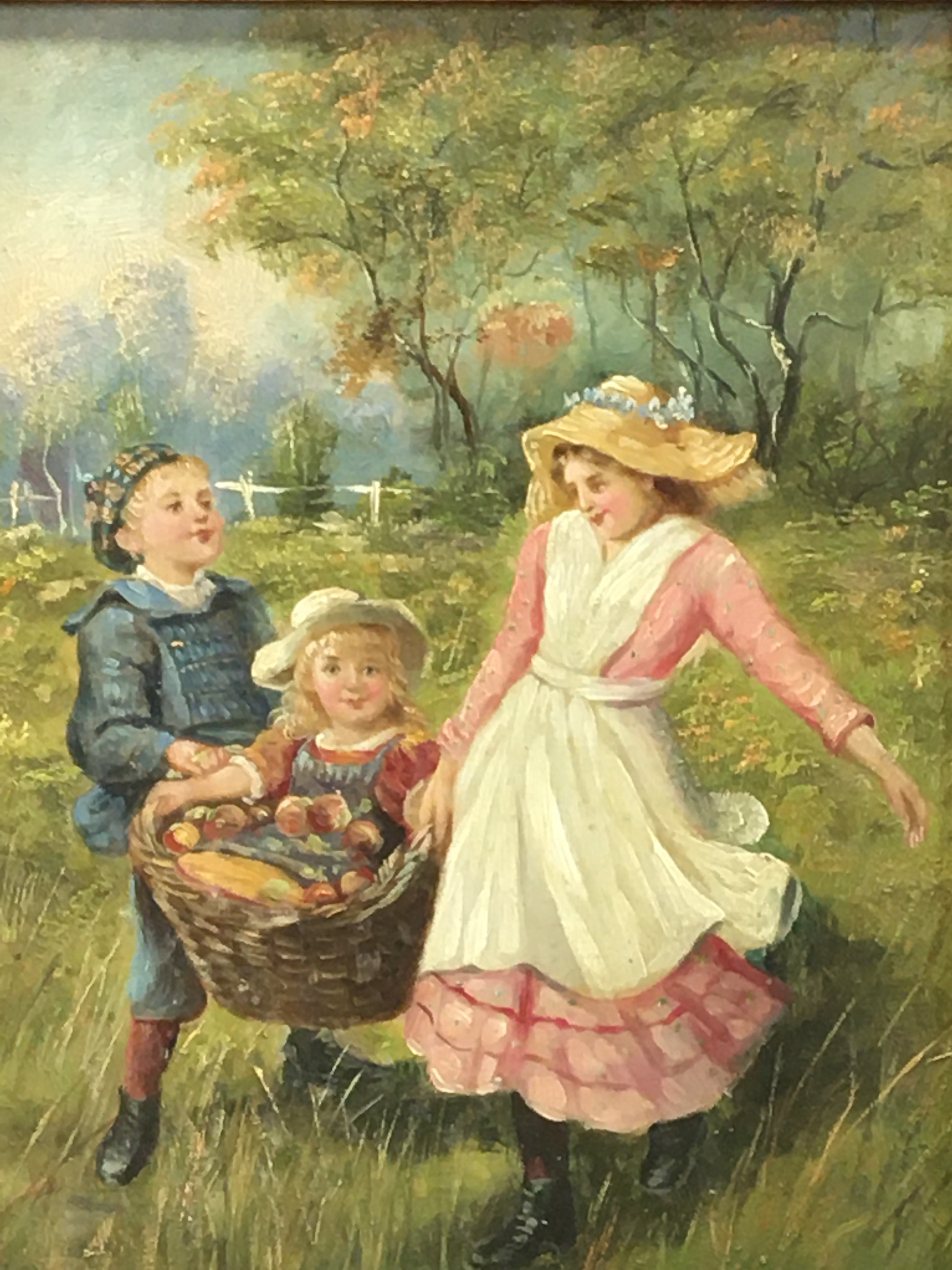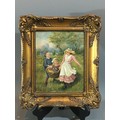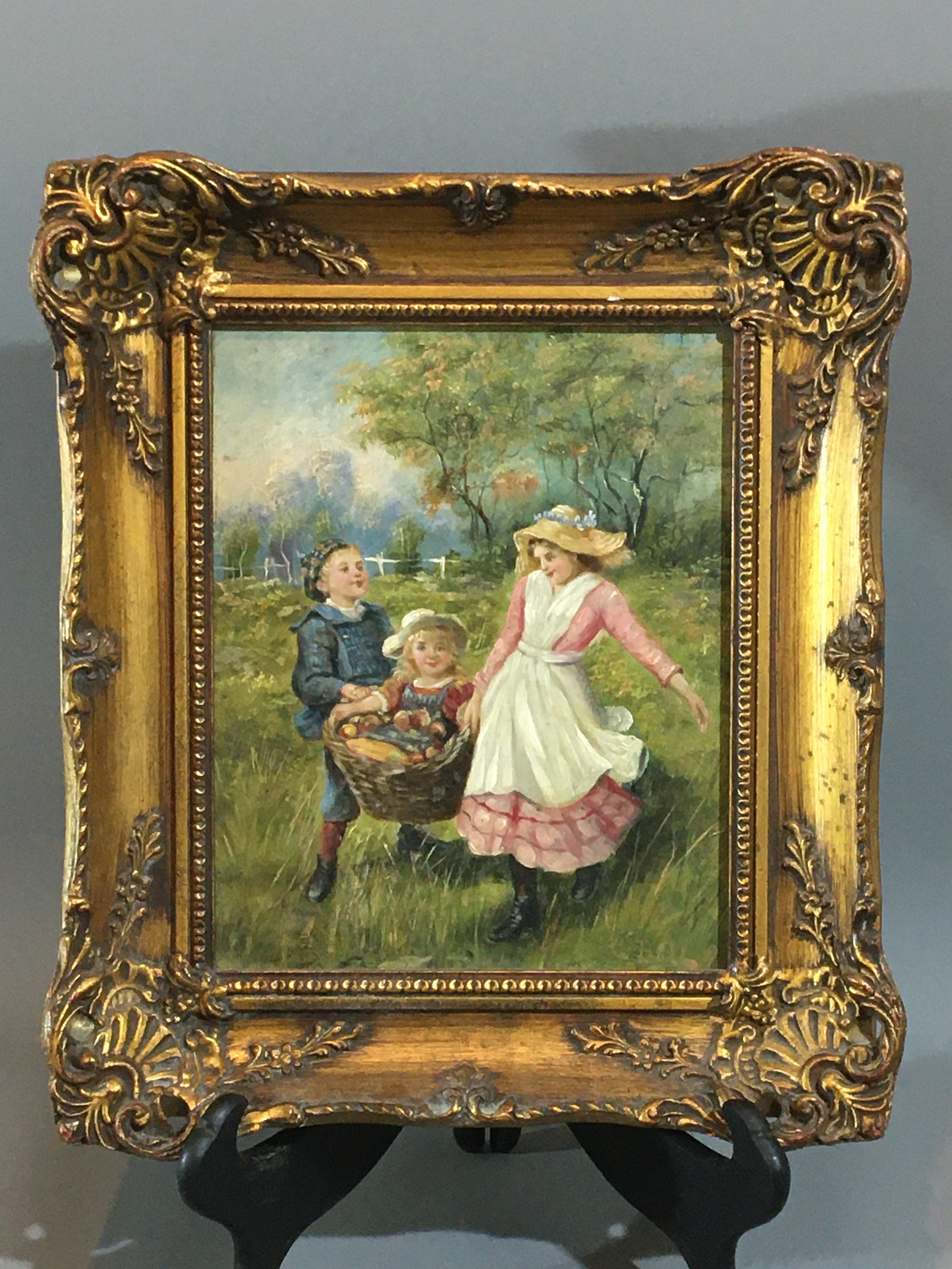 Early 20th Century Oil on Panel "Children Cavorting" indistinctly signed lower R/H. Gilt Framed (Later).
