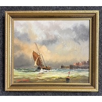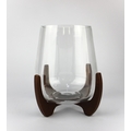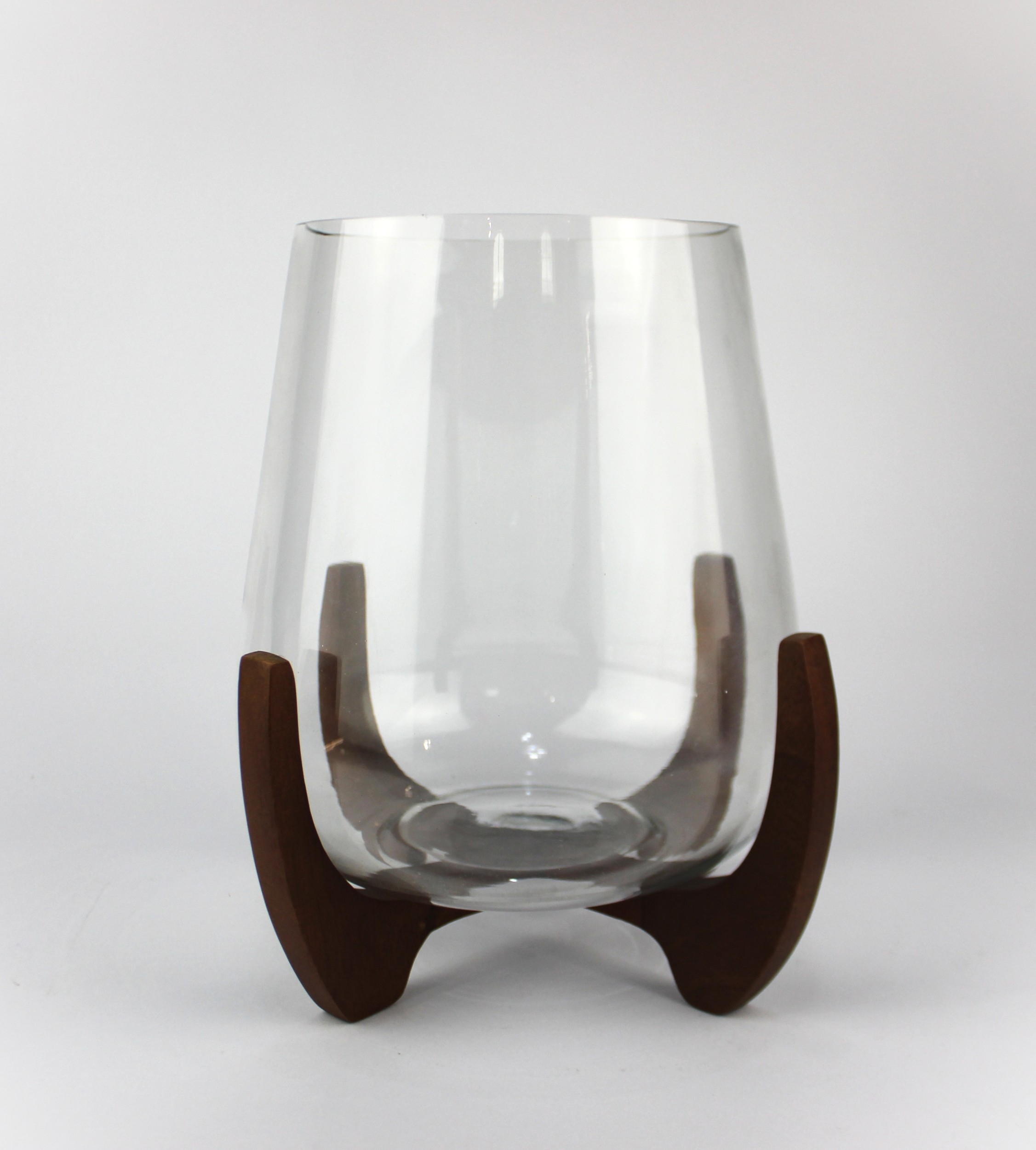 A contemporary glass vase / large candle holder on stand, height overall 25cm