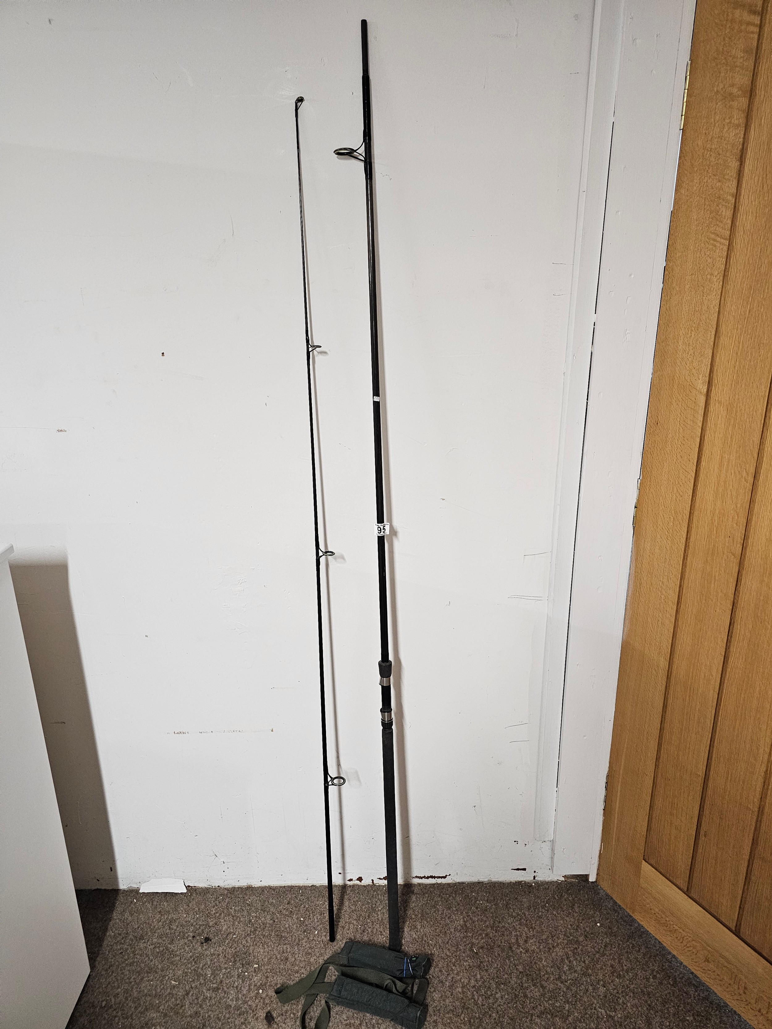 A good quality 12ft long 2 section carp fishing rod in good order with a carryall harness by test curve 2.5/2.75