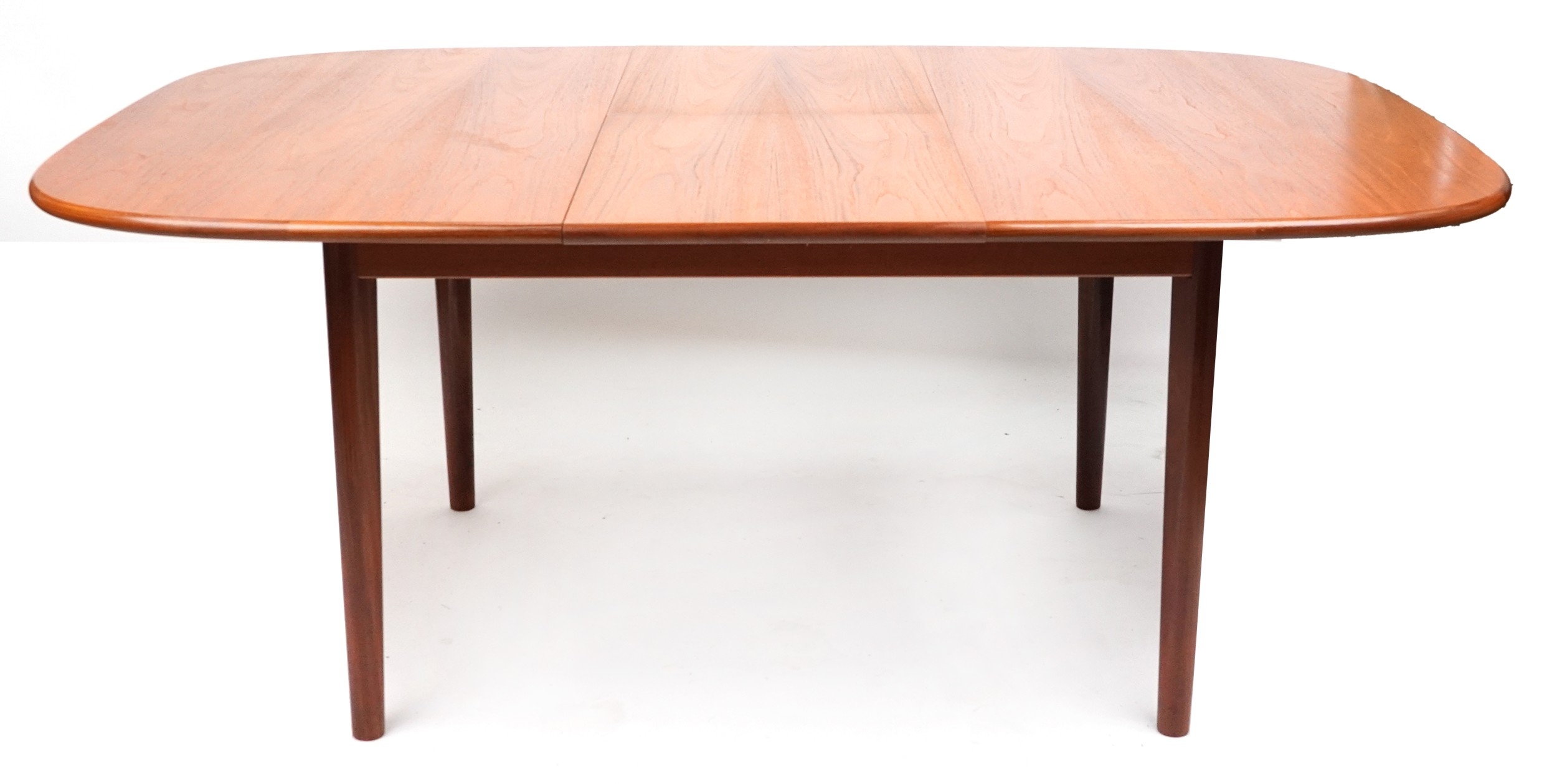 A mid 20th G Plan century teak extending dining table raised on turned legs, 73cm H x 183cm L extended x 117cm D.