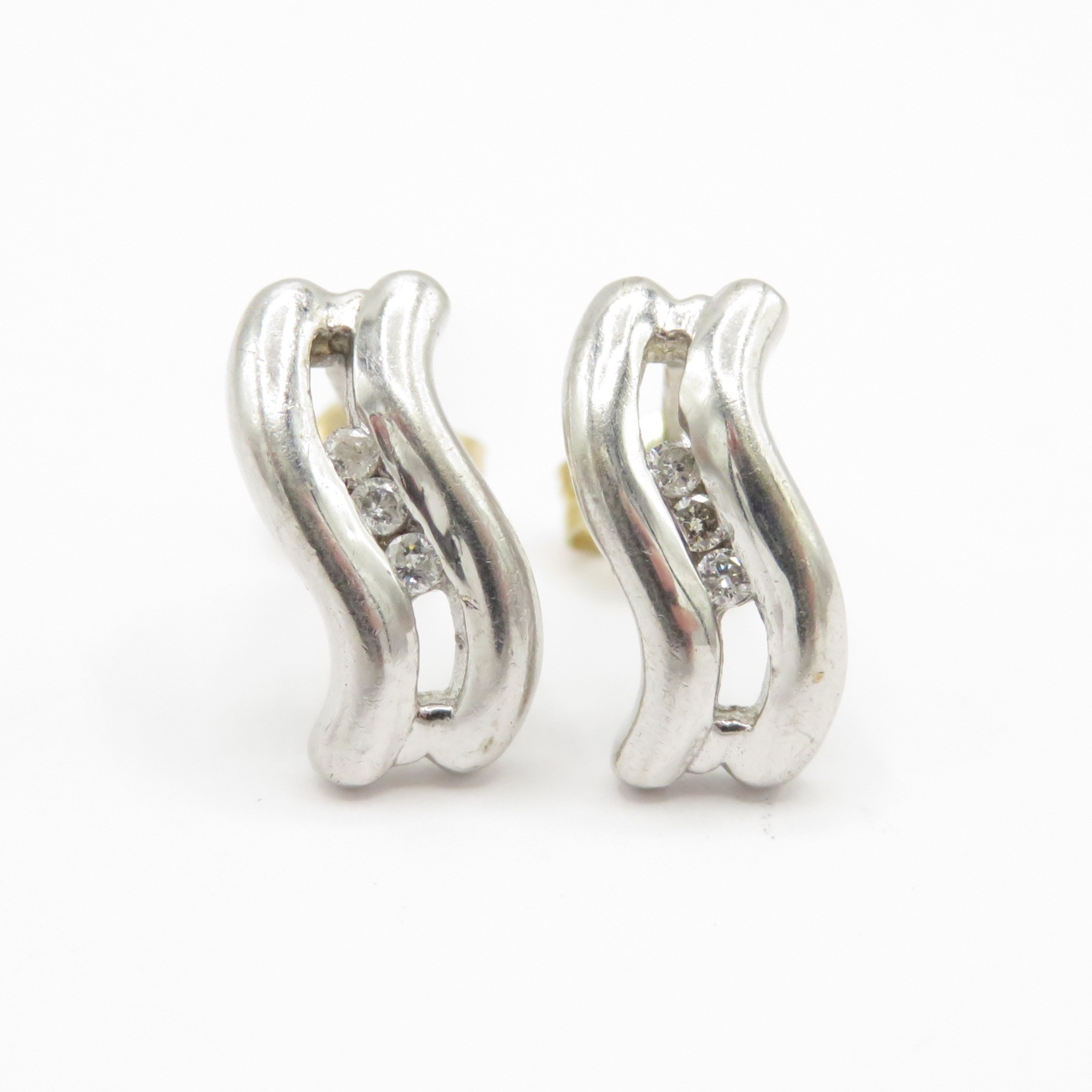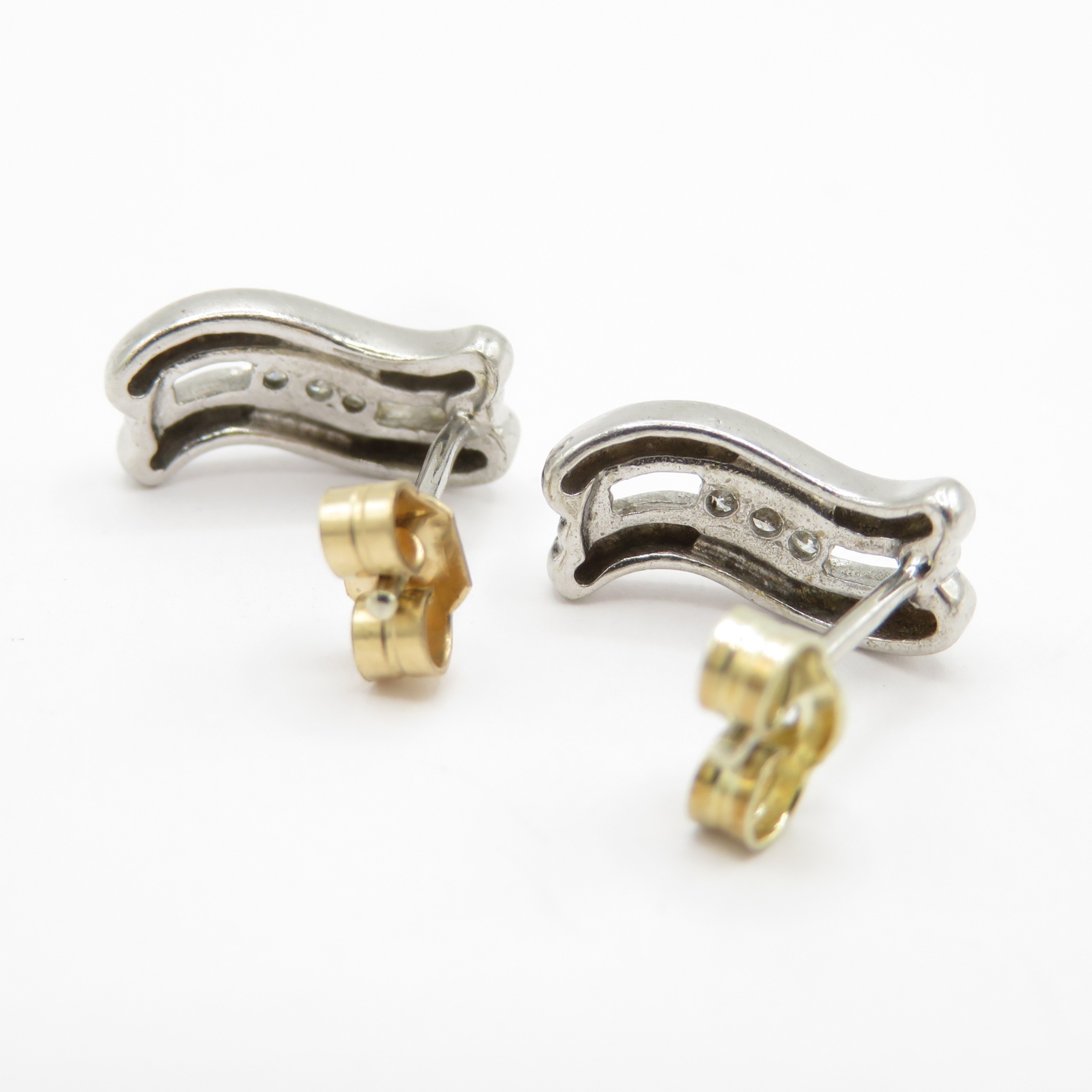 9ct white gold diamond earrings with yellow gold backs (2g)