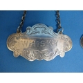 A set of four George V silver Wine Labels, by S Blanckensee & Son Ltd., hallmarked Birmingham, 1934, with engraved decoration and the centres incised 'Brandy', 'Whisky', 'Sherry' and 'Port', approx total weight 1.88ozt (4)
