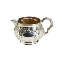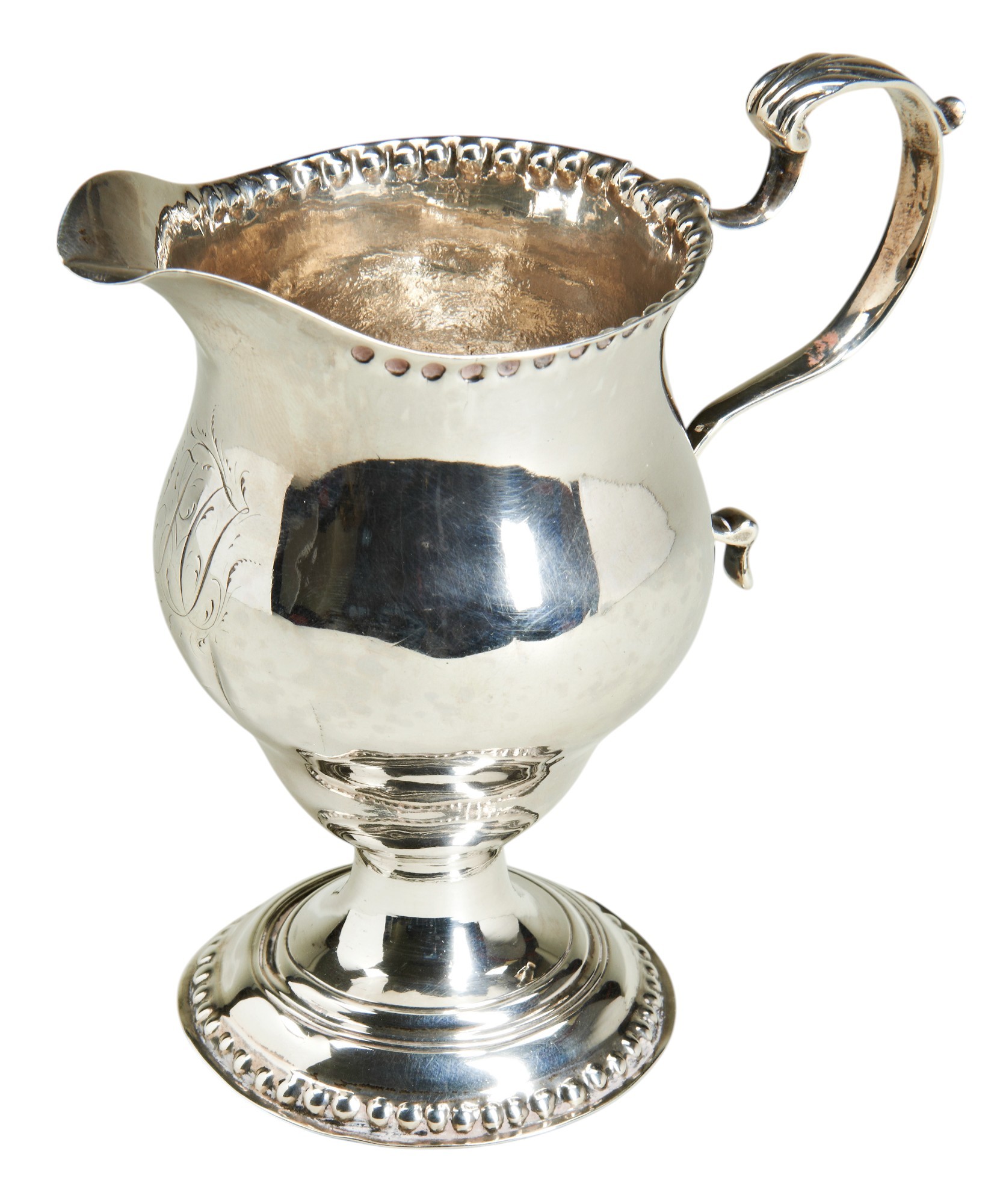 A cream jug decorated with chased beads and engraved to the front "JCJ"