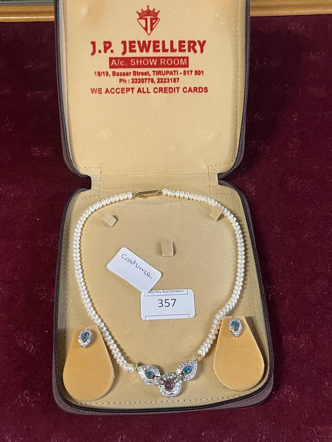 A vintage cased costume jewellery earrings and necklace set