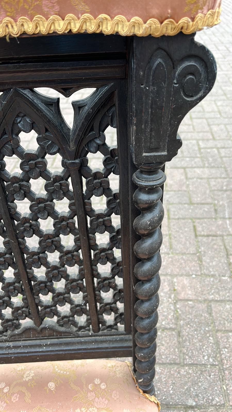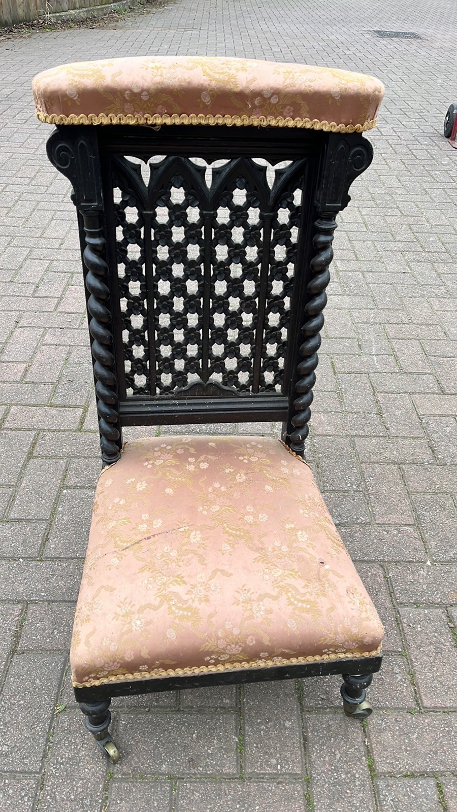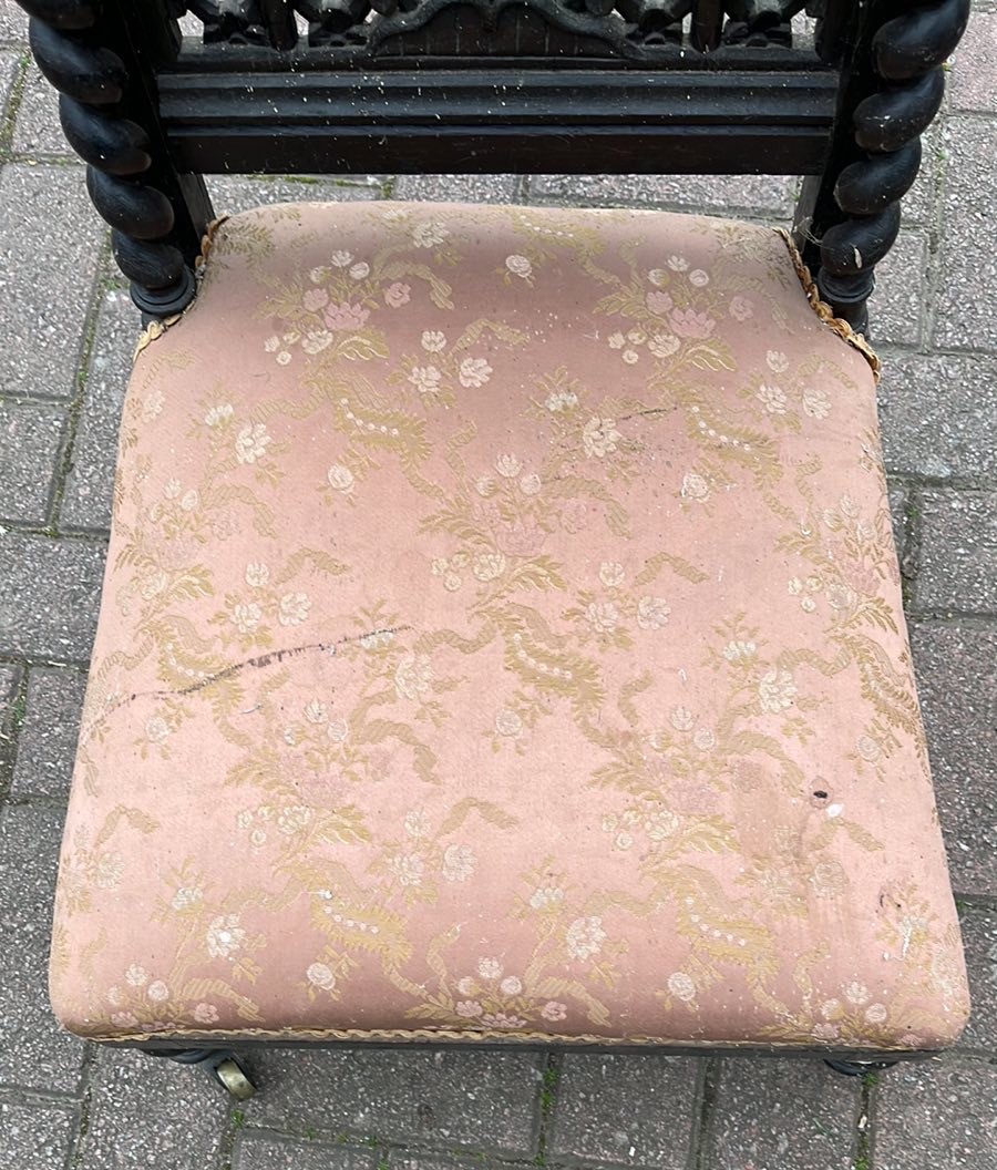 VICTORIAN BARLEY TWIST , FRET WORK DETAIL BACKED PALOUR LADYS SEWING / NURSING CHAIR