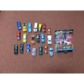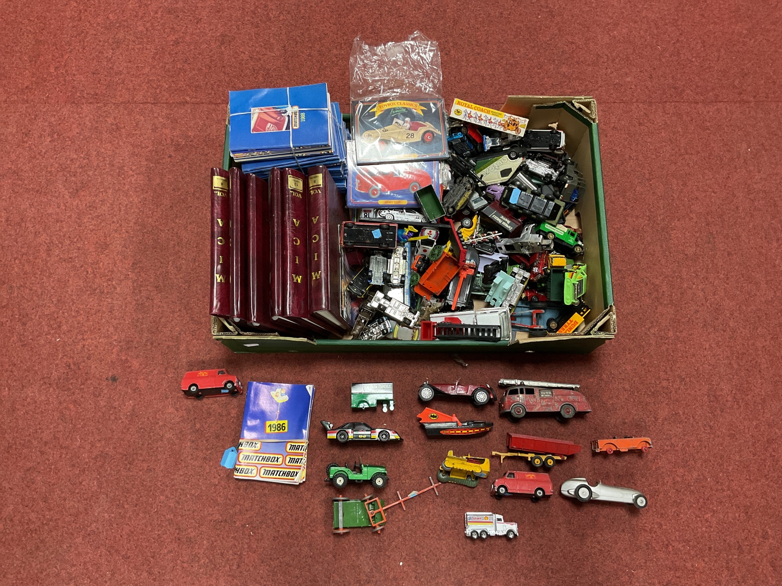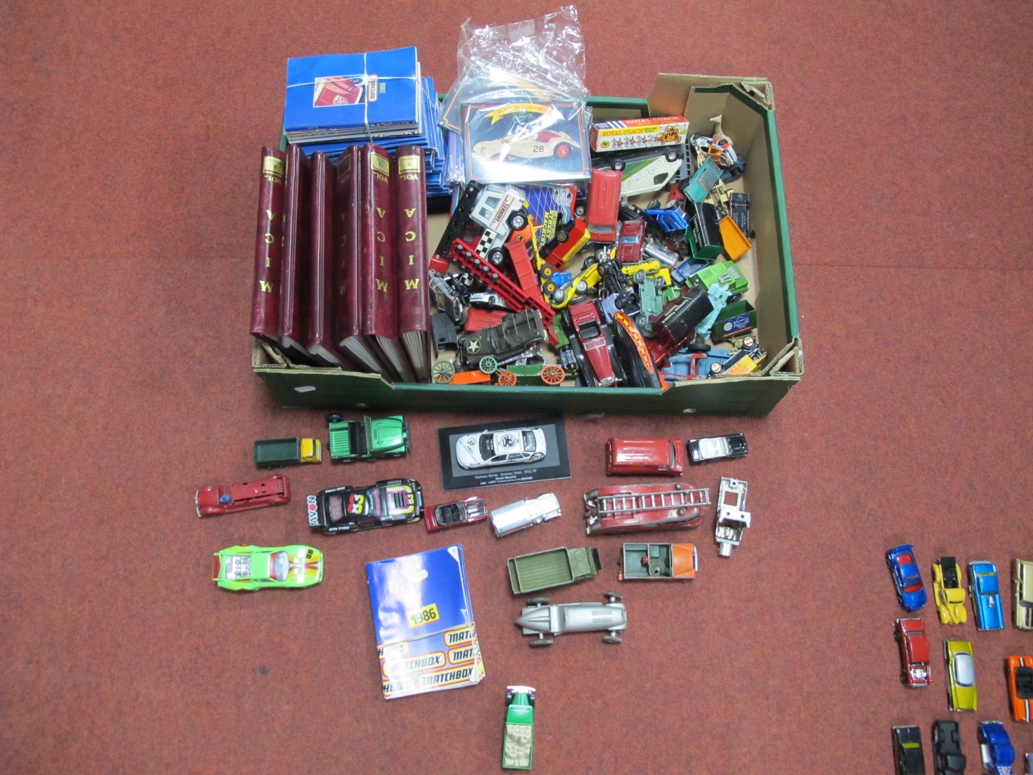 A Quantity Of Mostly Modern Playworn Diecast Vehicles, by Dinky, Corgi, Polistill, Hot Wheels, Matchbox, etc. Plus Some Postcards, And A Quantity Of Matchbox 1988 Catalogues, Etc.