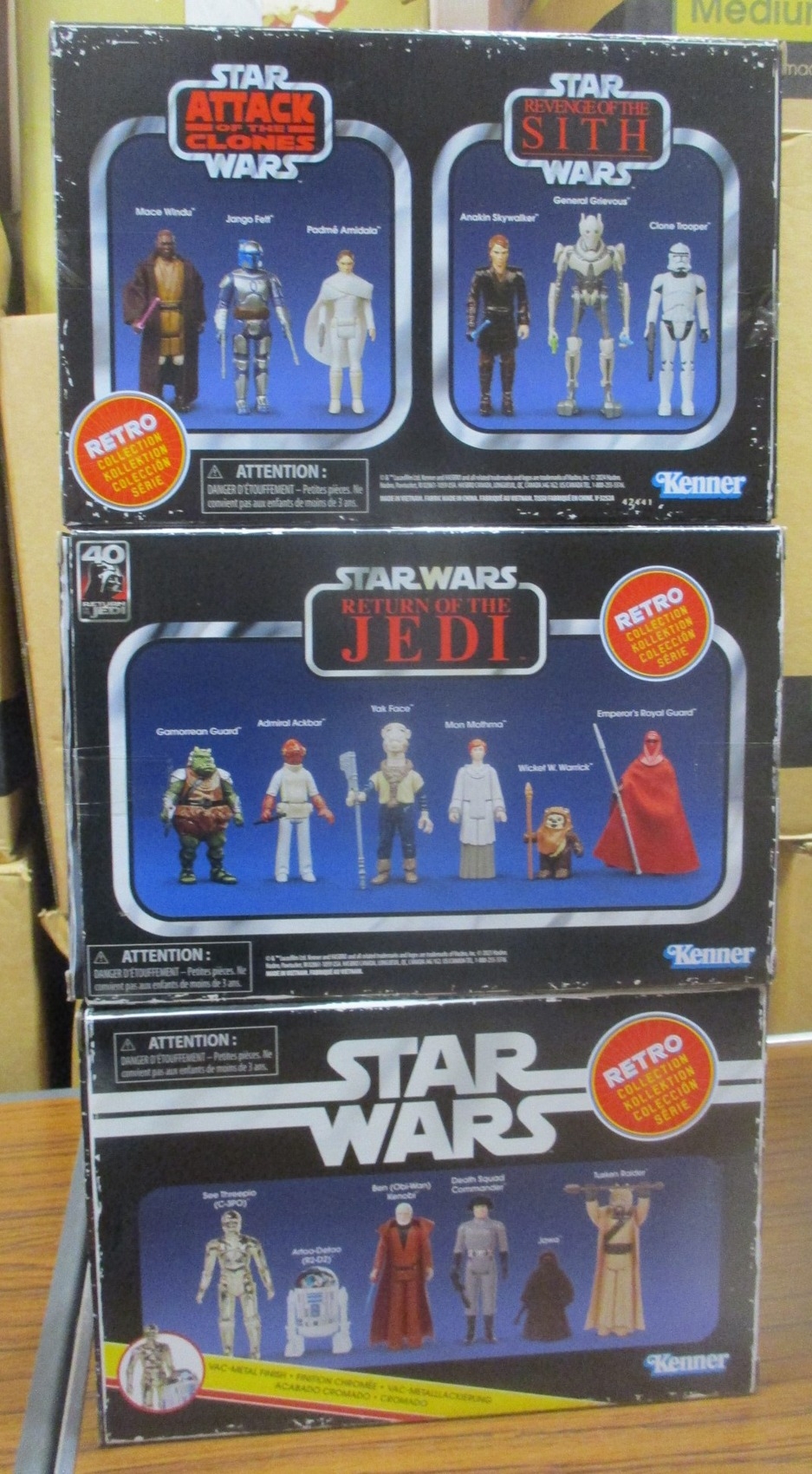 Star Wars. Hasbro. Range of Retro Collection box sets, generally mint in near excellent to excellent plus boxes, with Attack of the Clones & Revenge of the Sith, A New Hope and Return of the Jedi. Qty 3 (½B)