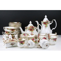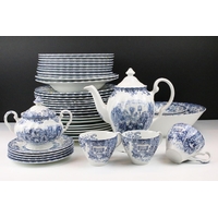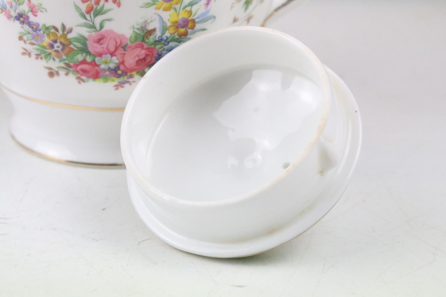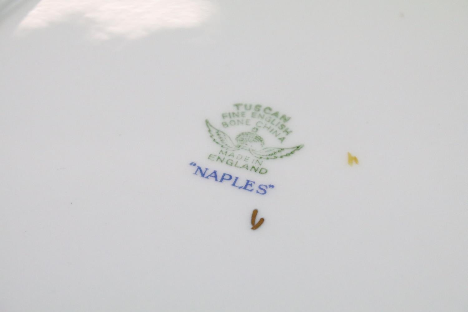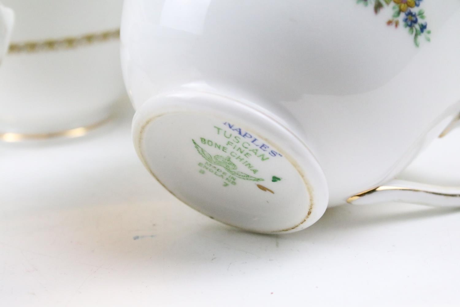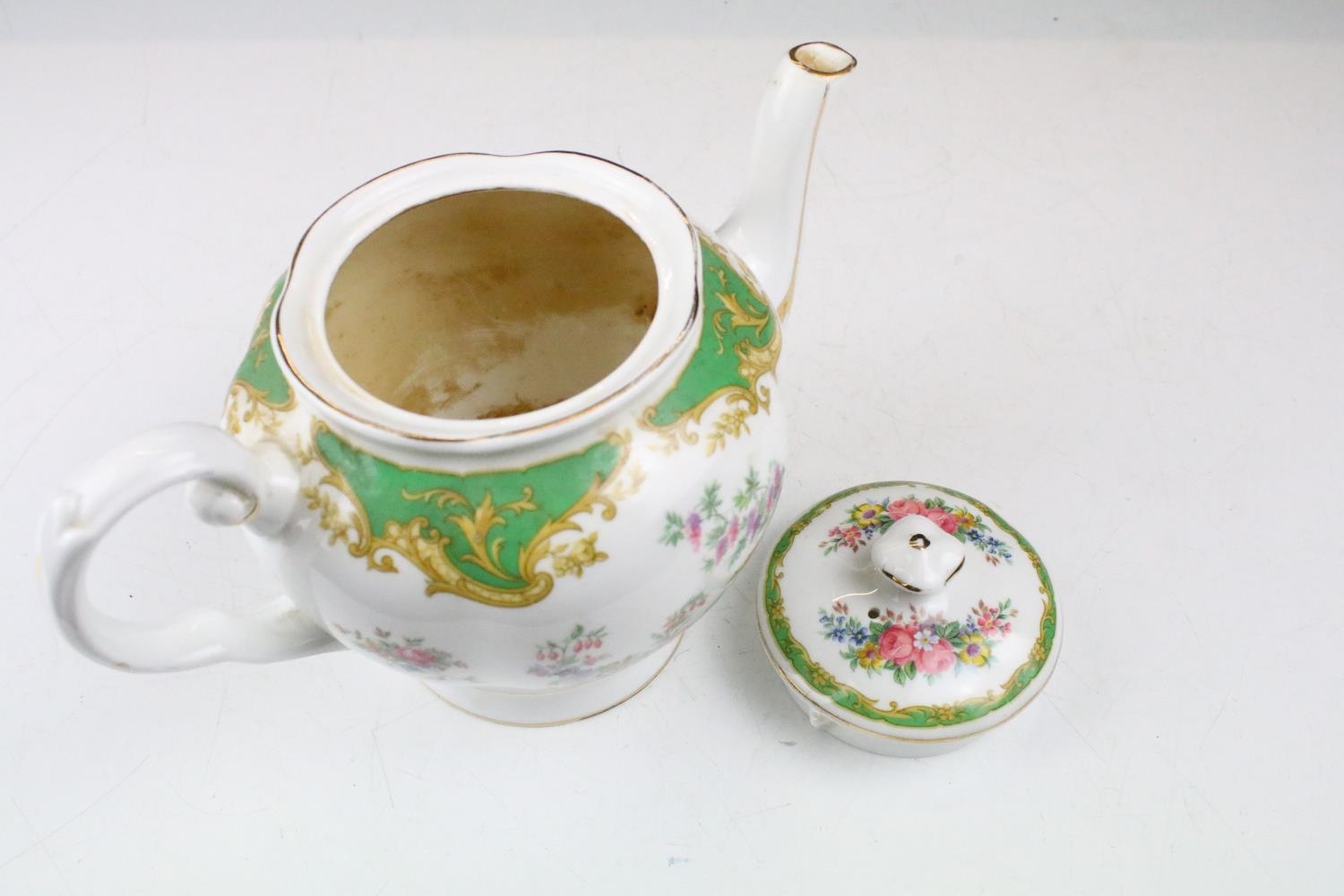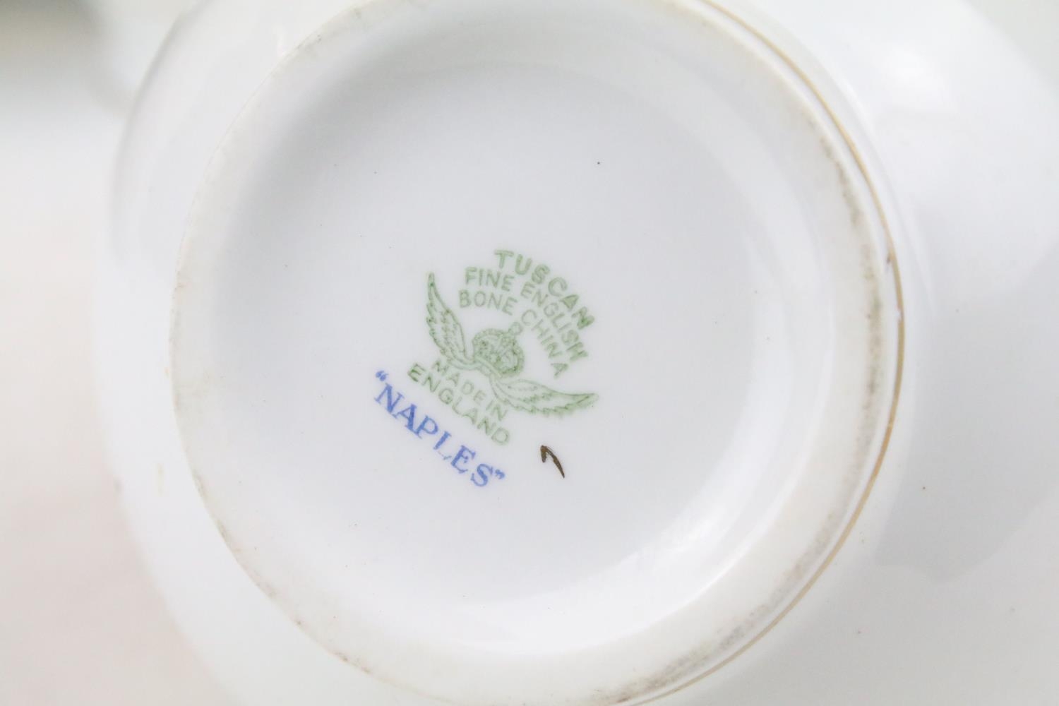 Tuscan green ground floral tea ware to include 'Naples' and 'Windsor' pattern, featuring tea pot, sugar basin, cups & saucers, tea plates, etc
