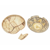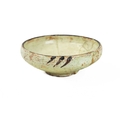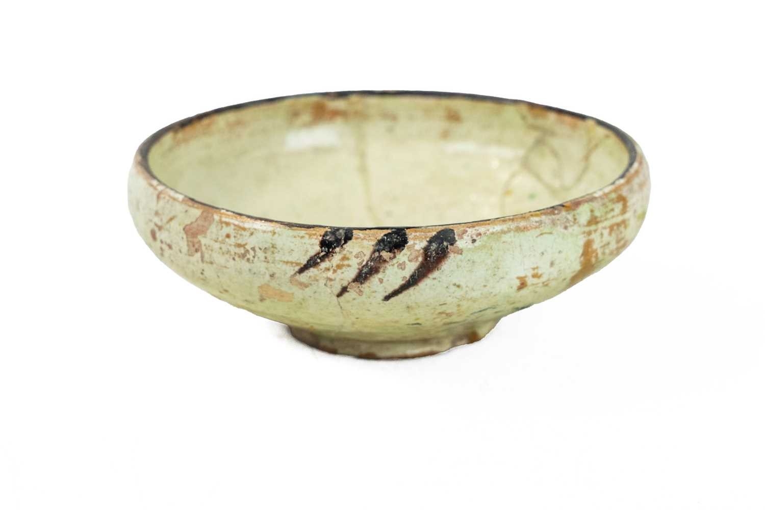 A Persian Kashan pottery small bowl. 12th/13th century, the ivory ground slip decorated with simple designs, height 5cm, diameter 14.5cm.