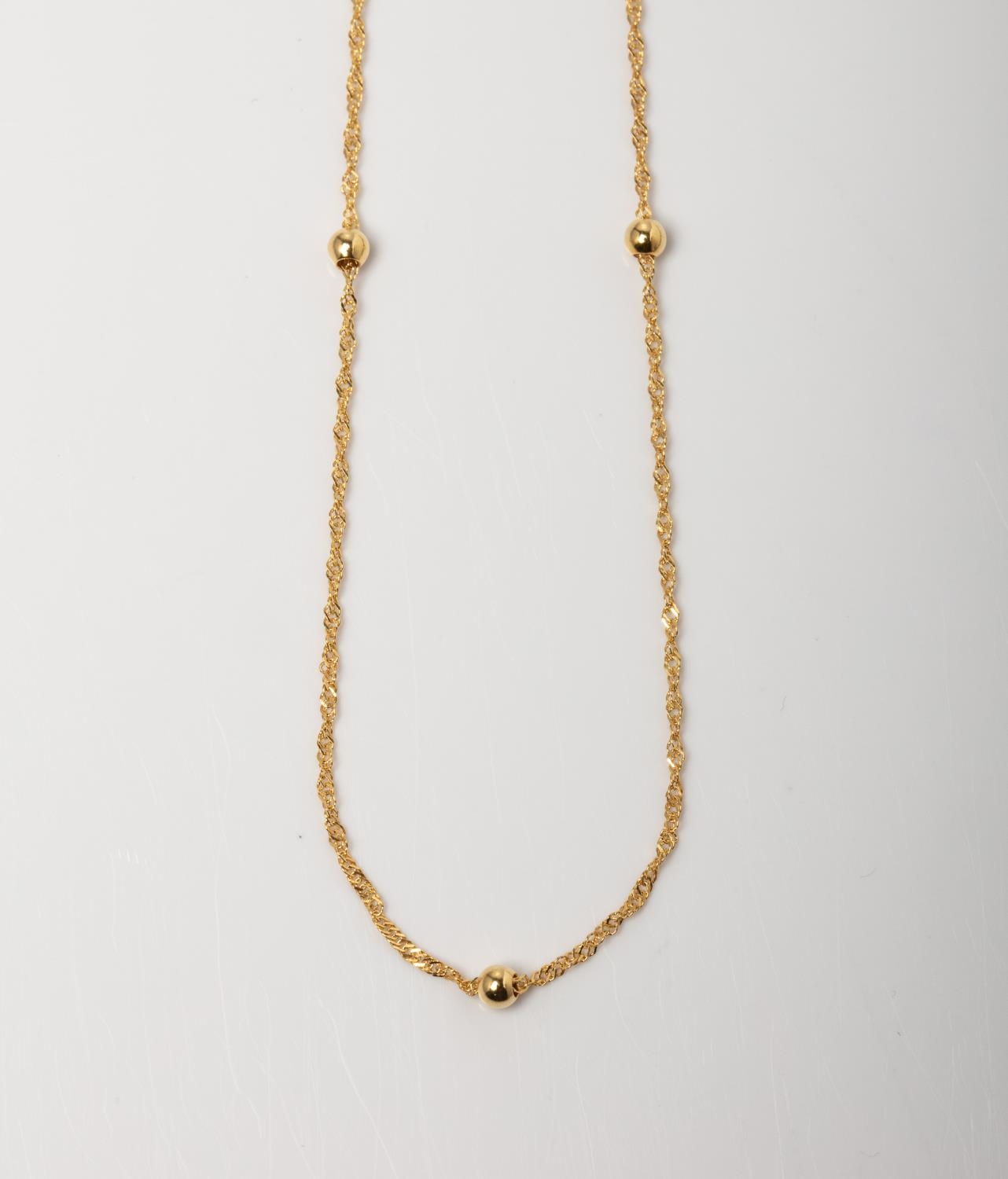 A 14CT GOLD CHAIN WITH BALL ELEMENTS A N/A long Singapore styled chain with ball detail crafted in 14ct yellow gold weighing 1.75 grams.