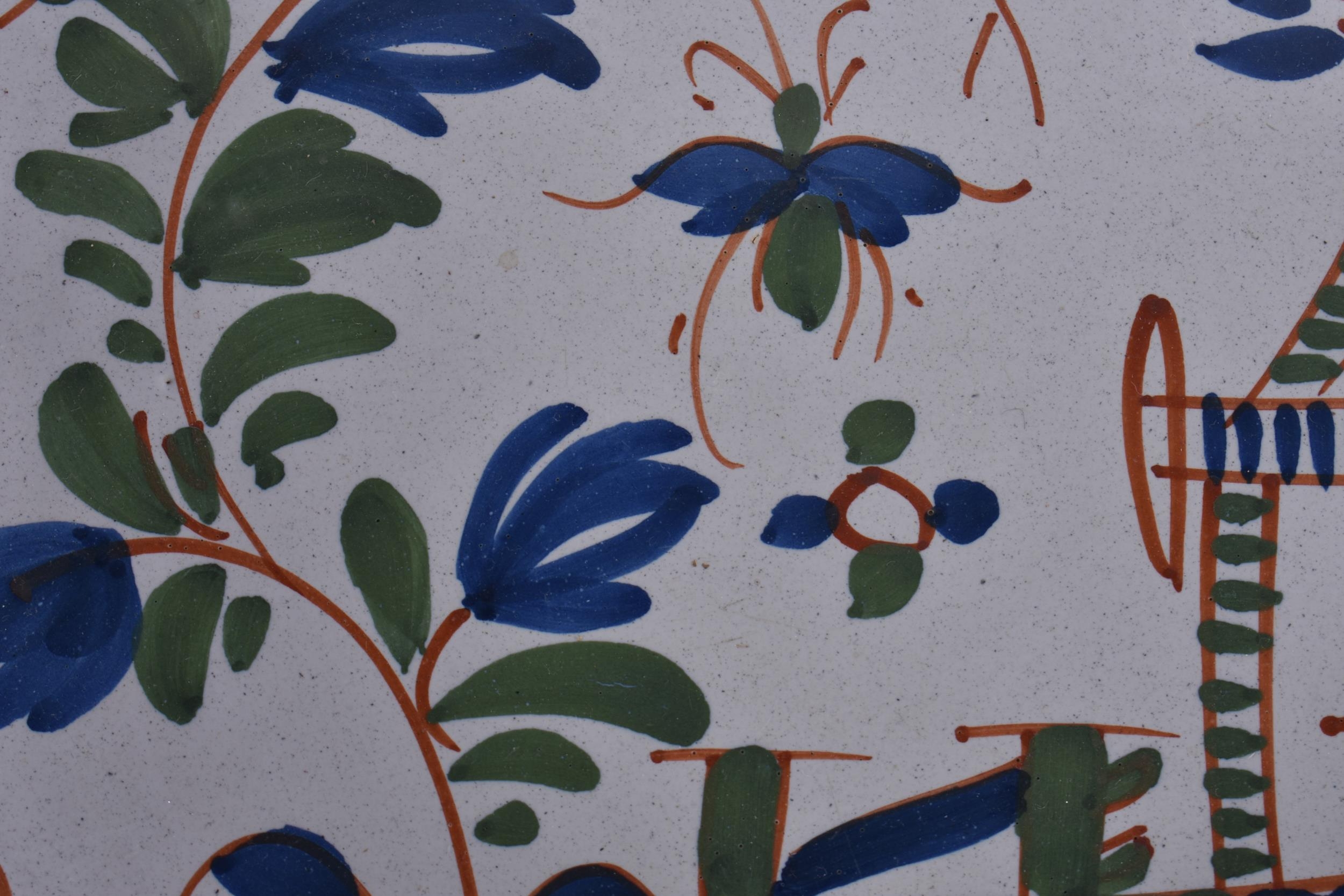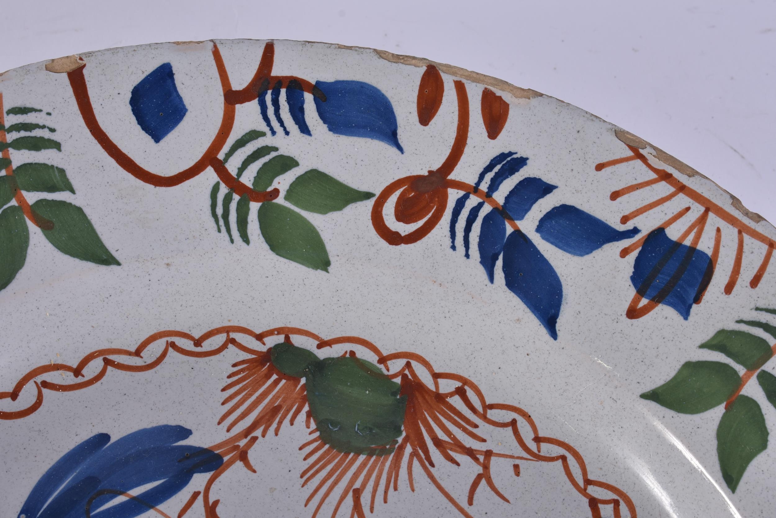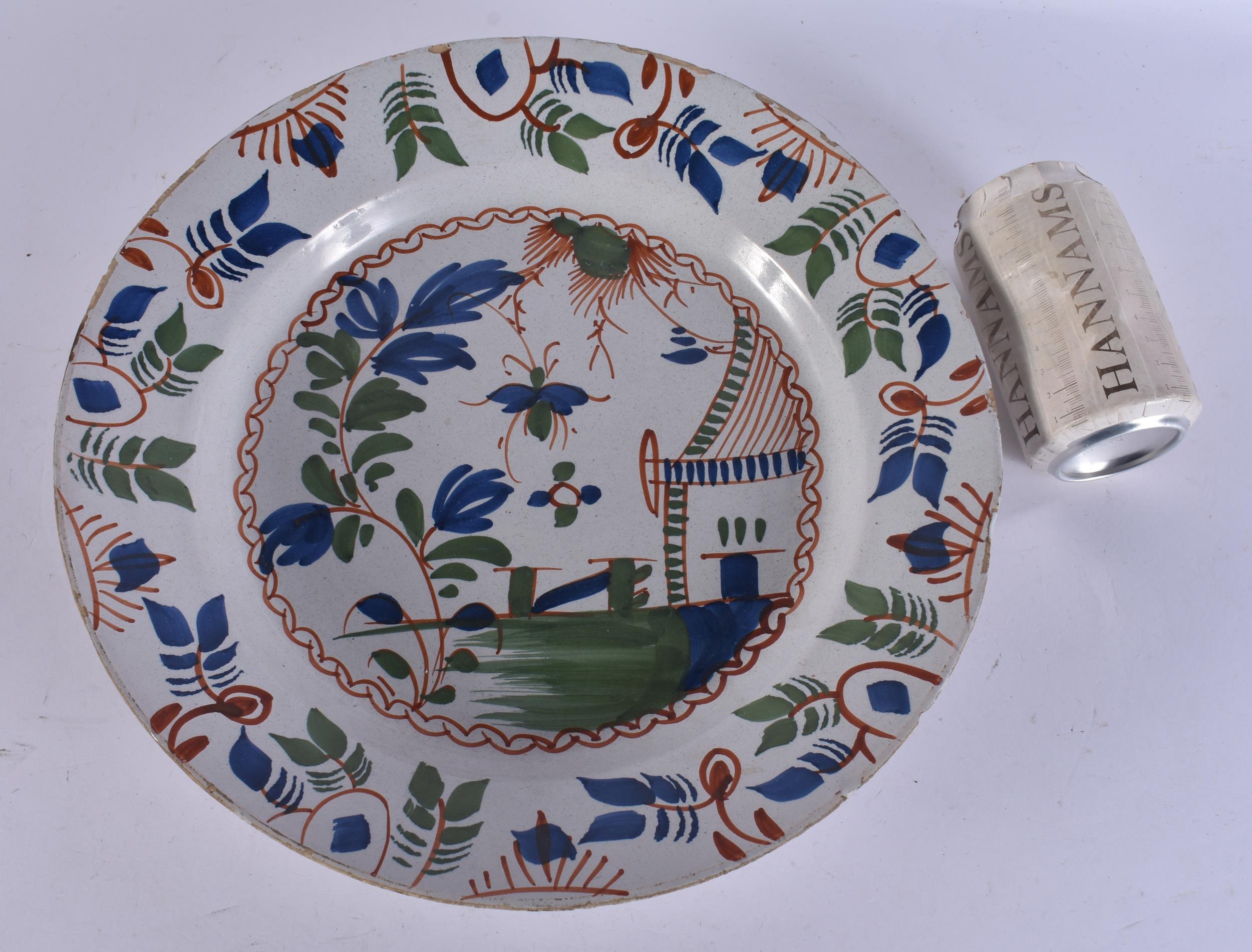 A LARGE 18TH CENTURY DELFT TIN GLAZED POTTERY DISH. 27 cm diameter.