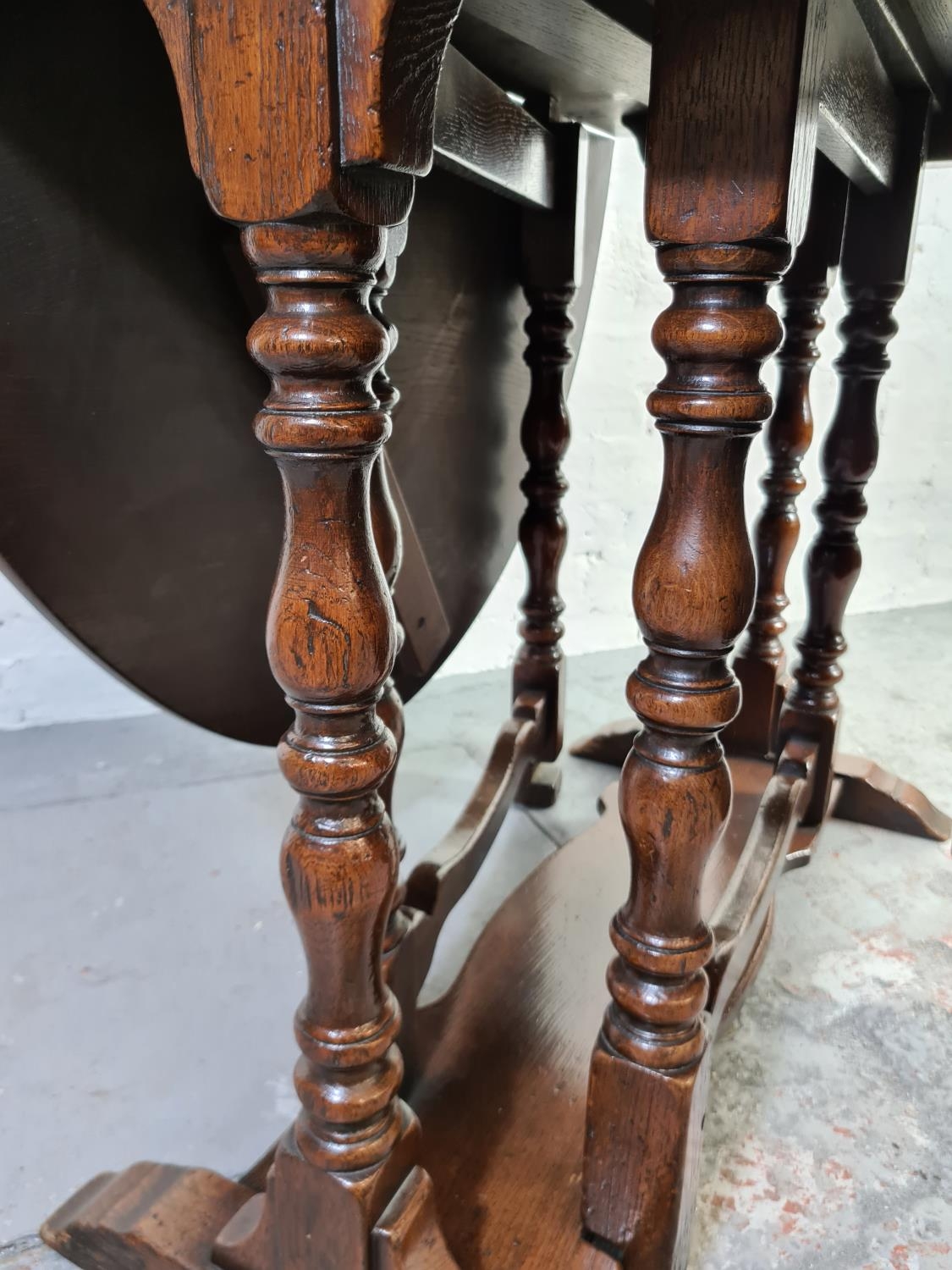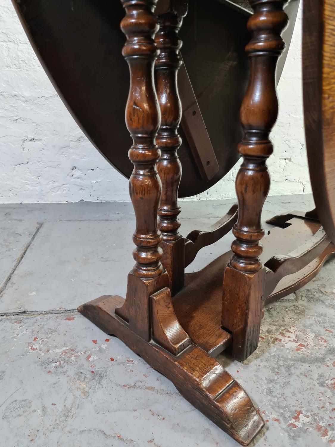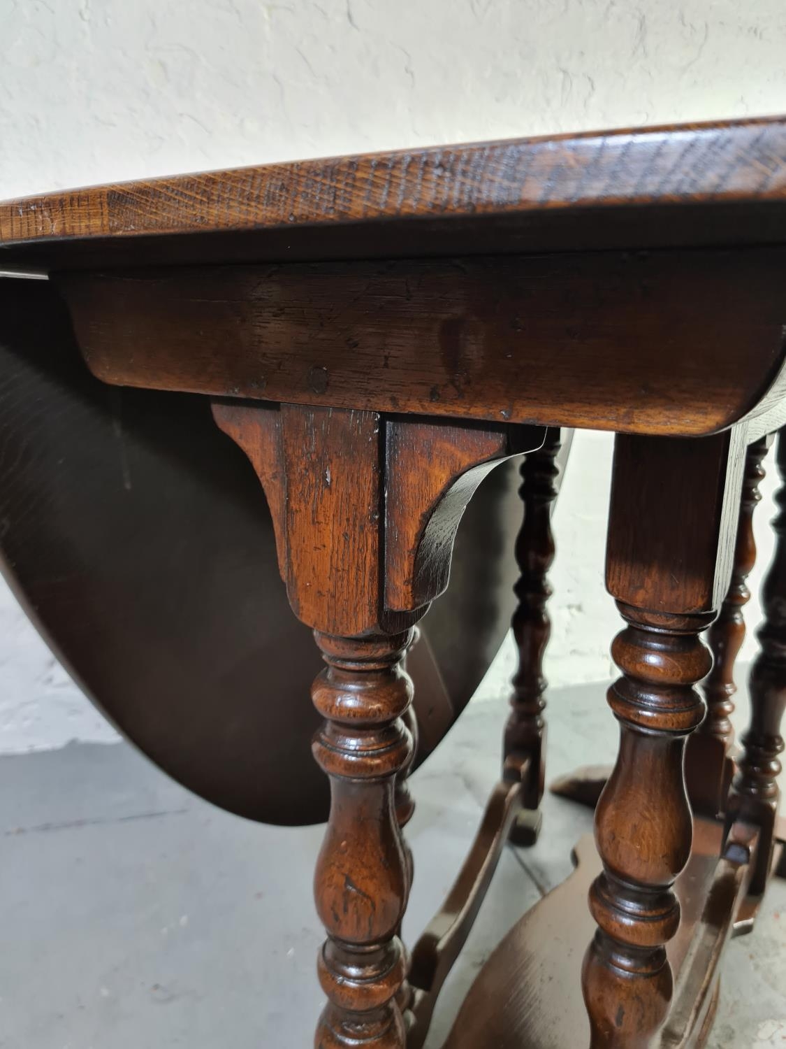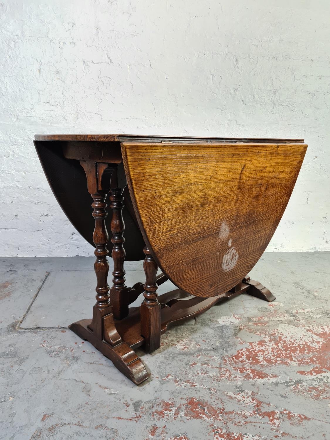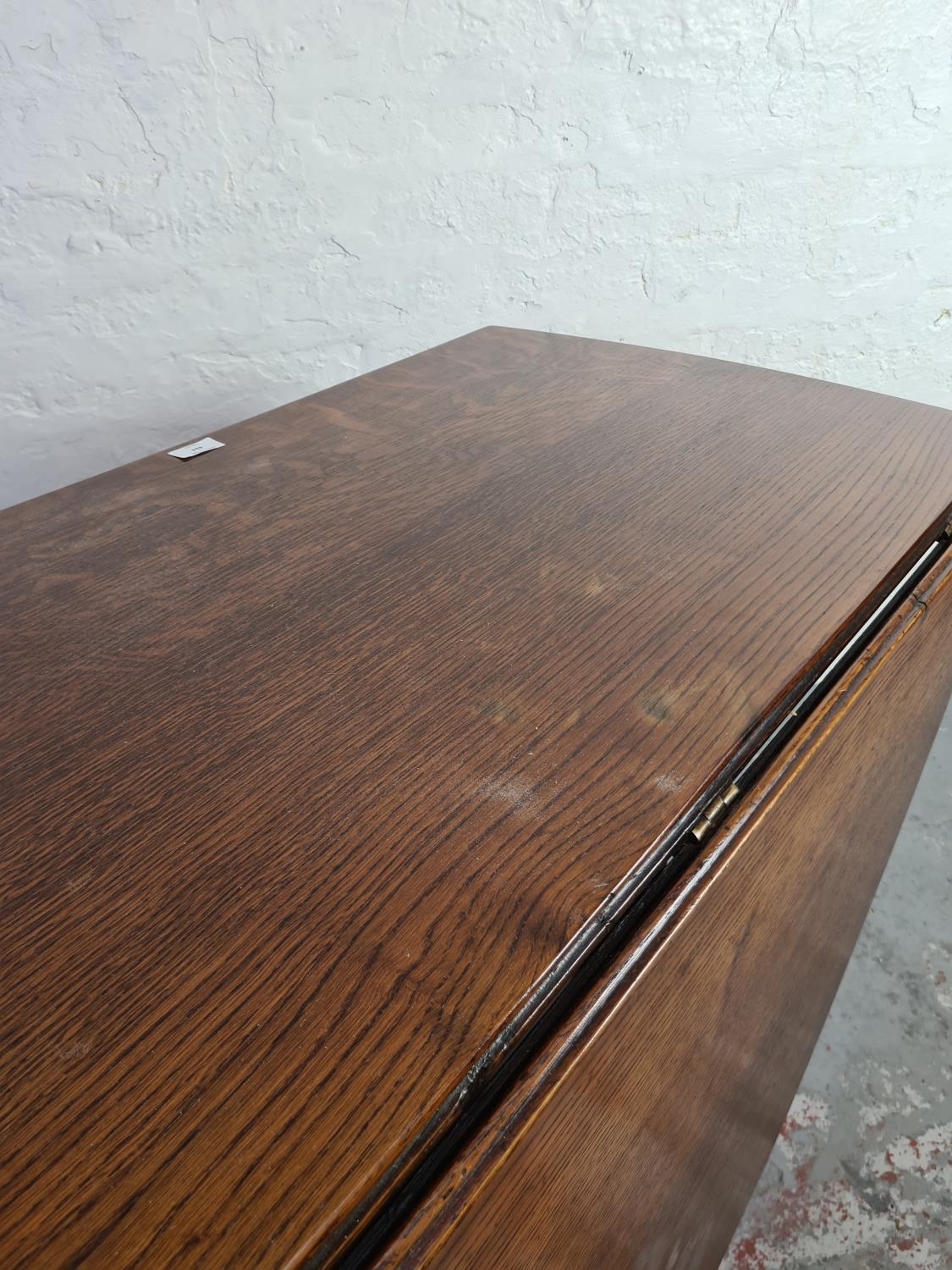 An 18th century style oak drop leaf gate leg dining table