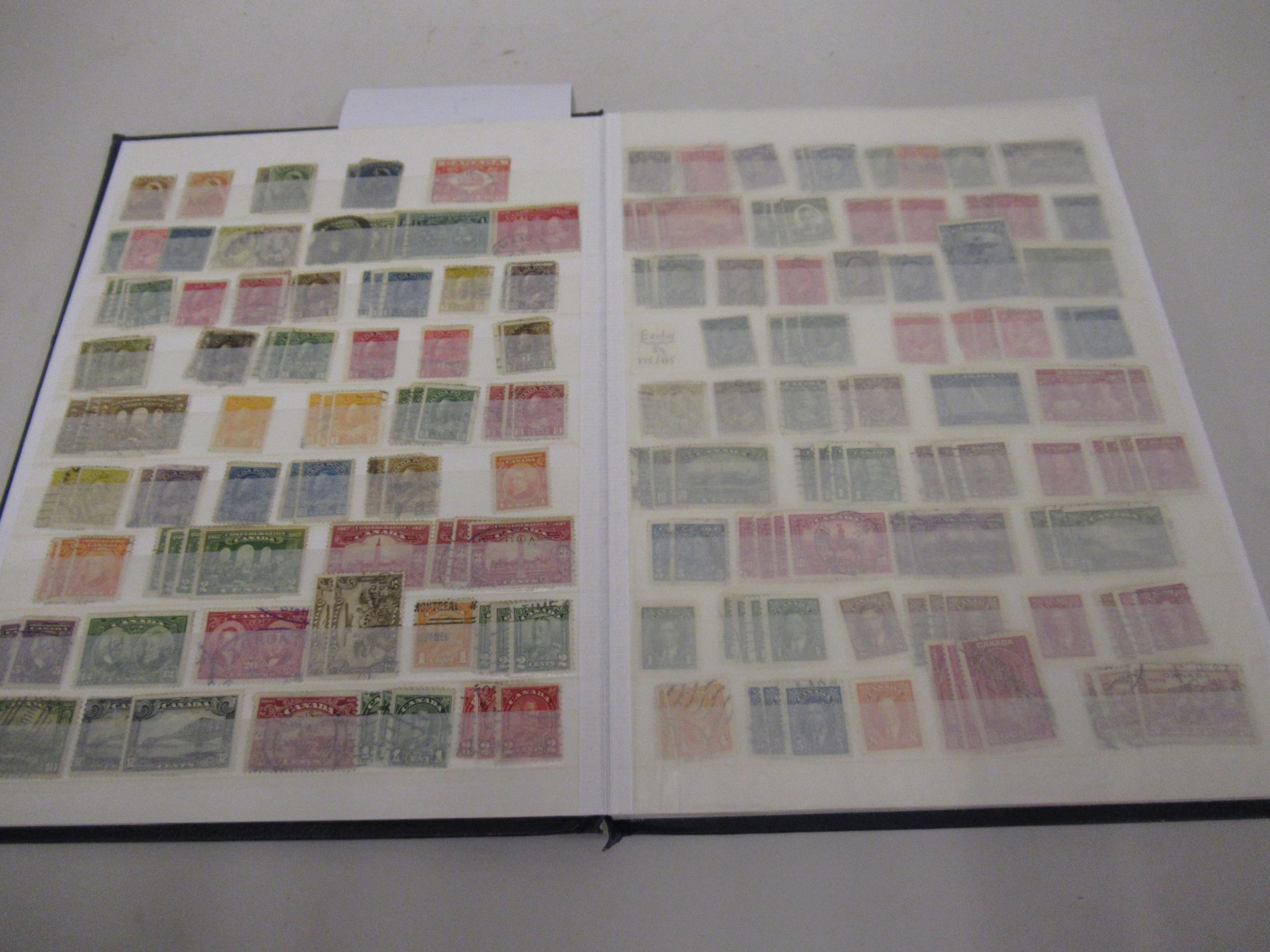 Album containing a collection of Canadian and USA stamps from Queen Victoria to Queen Elizabeth II