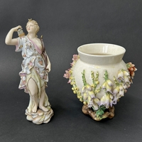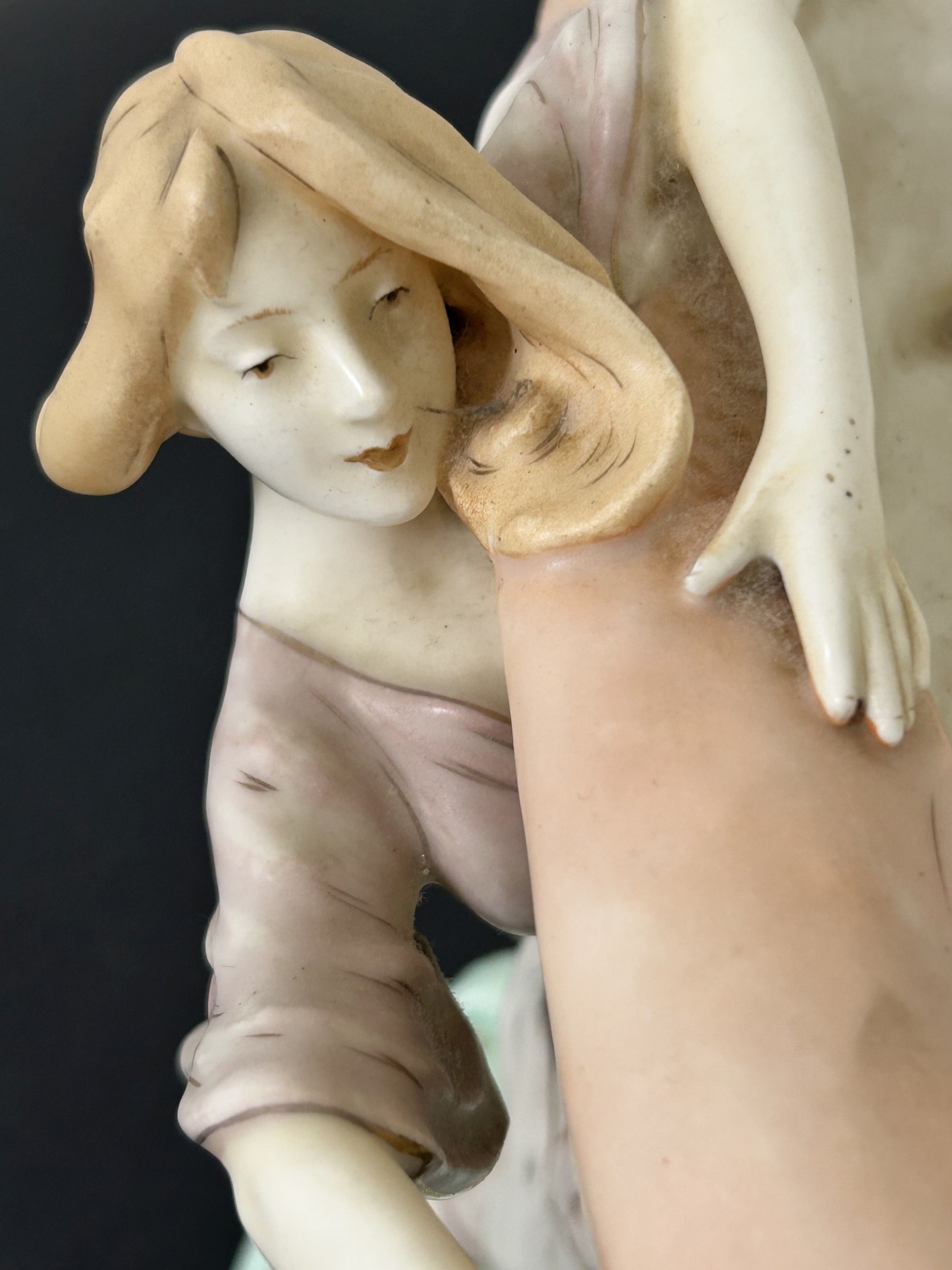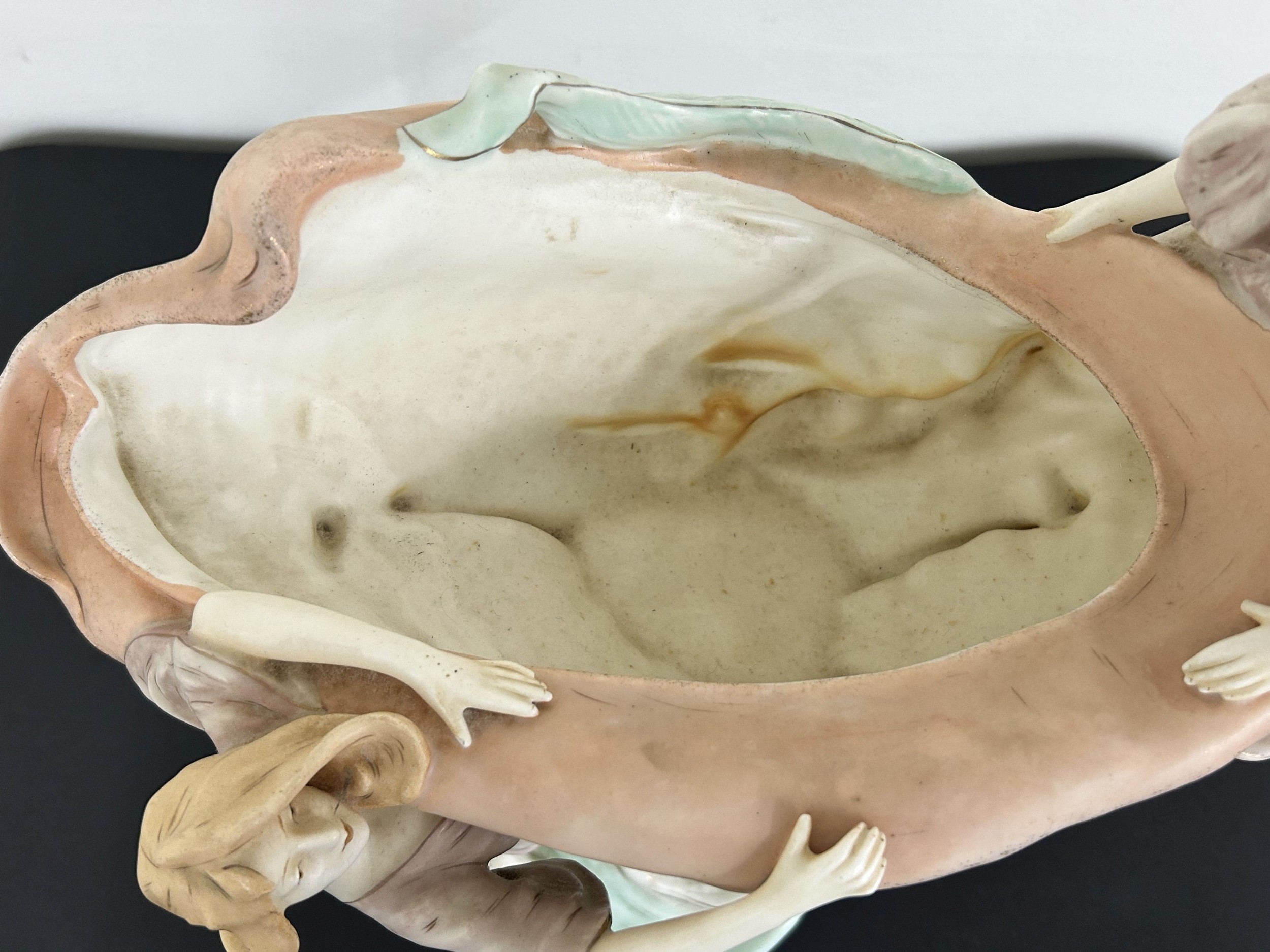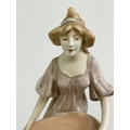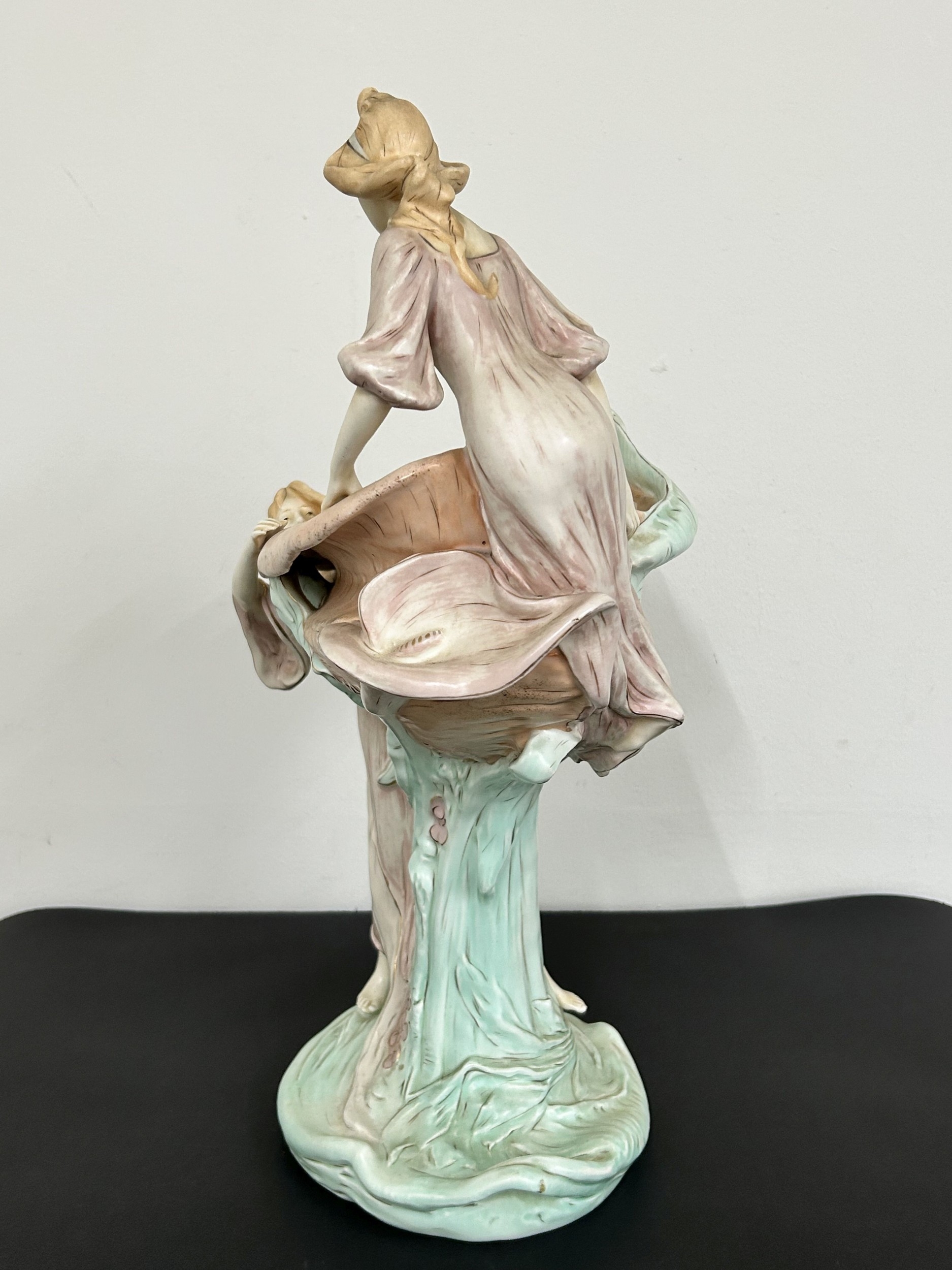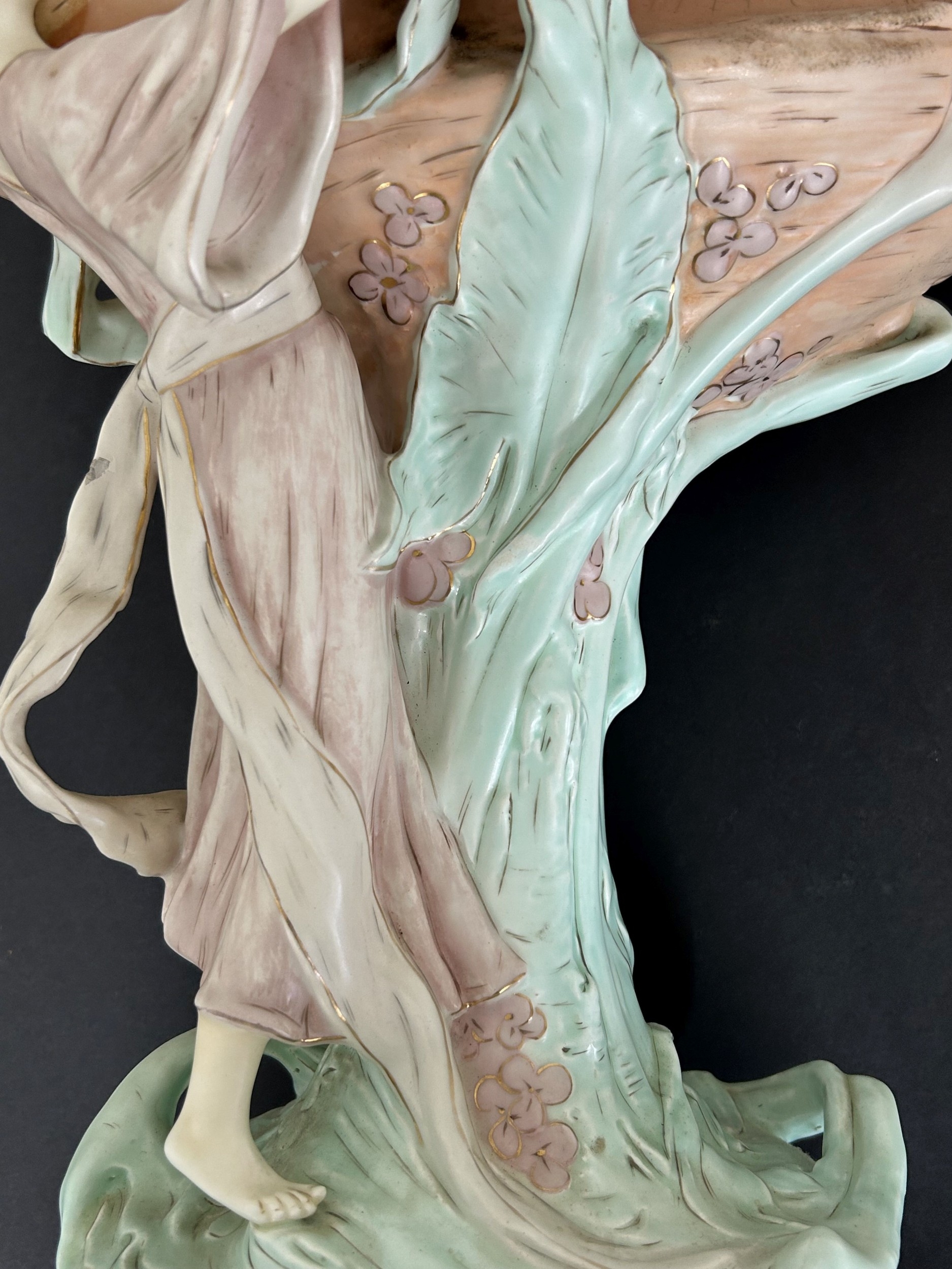 A large Royal Dux Art Nouveau porcelain figure group of two females with a large shell, approx. 19 1/4" tall (a small area of damage on the sash of the lower girl)