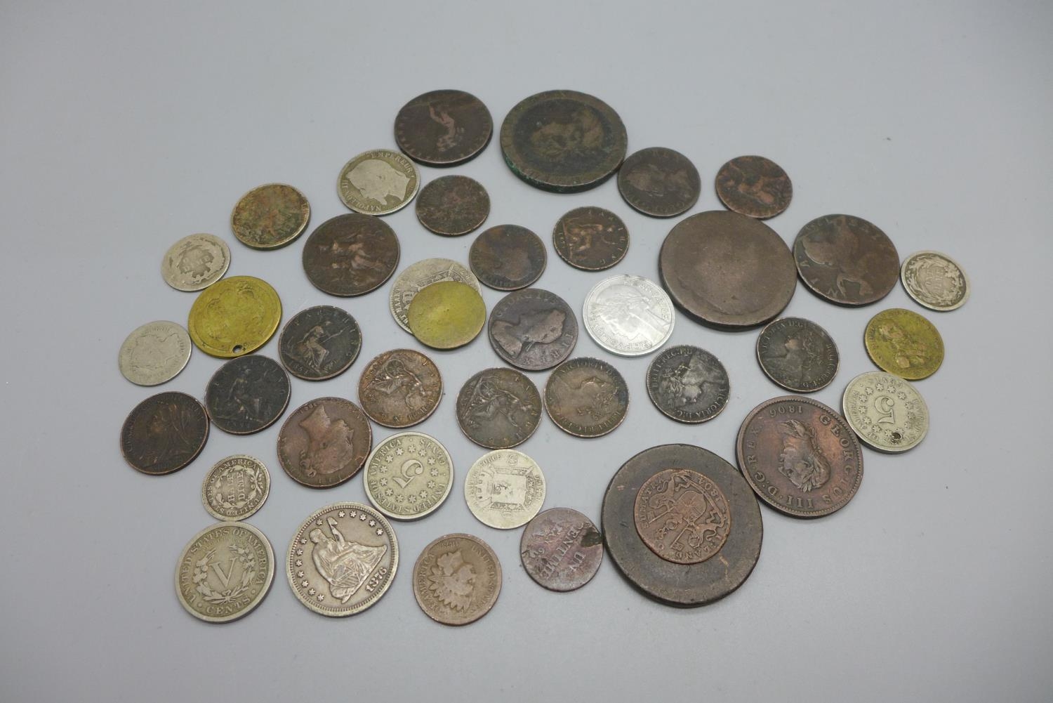 Georgian, Victorian and other coins including five 19th Century U.S.A. coins with one 1876 Carson City quarter dollar
