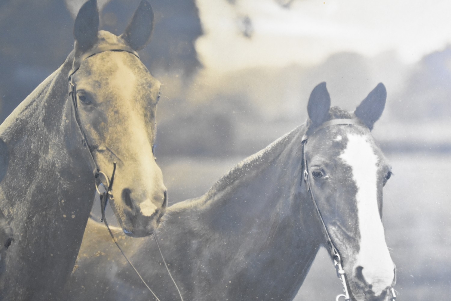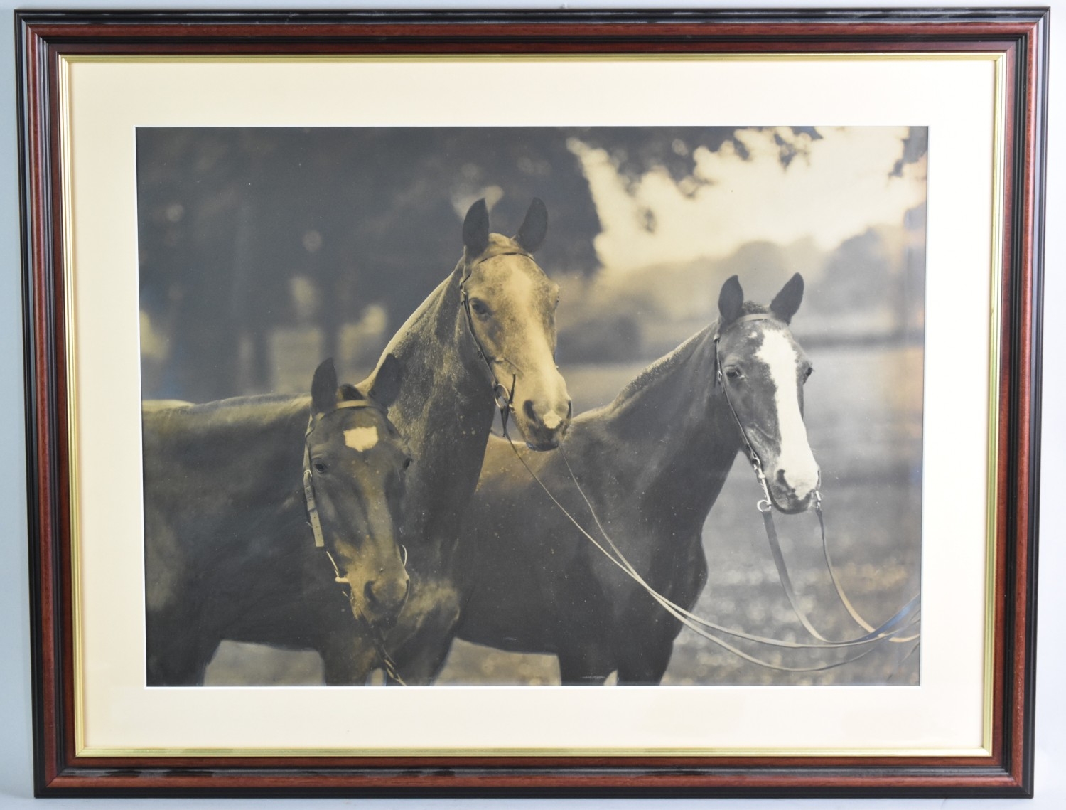 A Framed Monochrome Photograph of Three Horses, 55x40cms