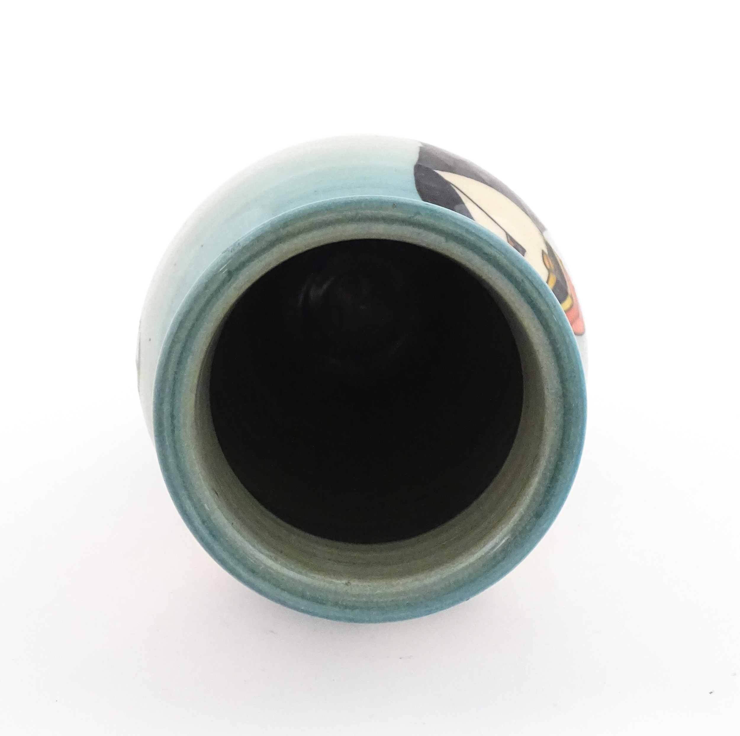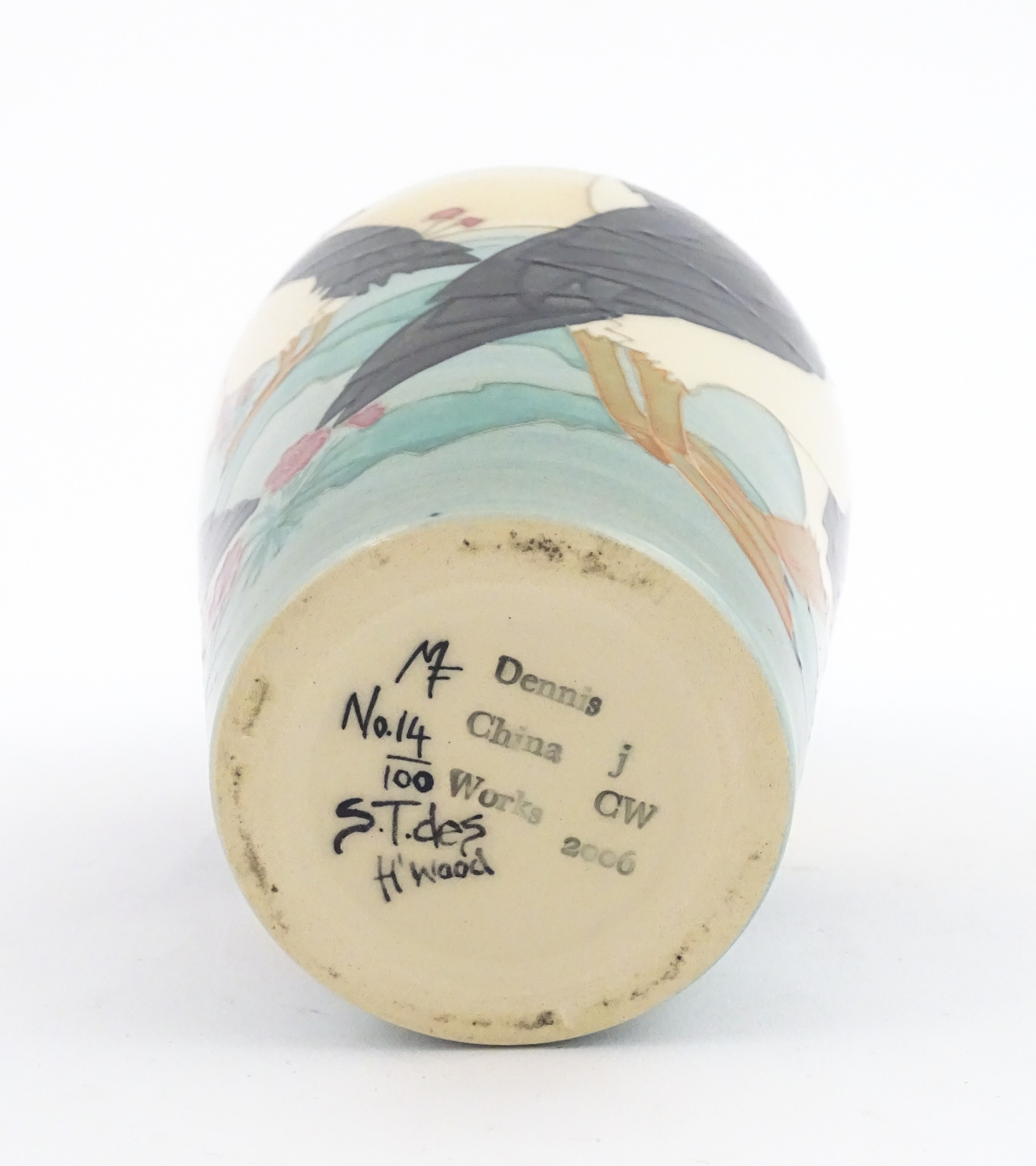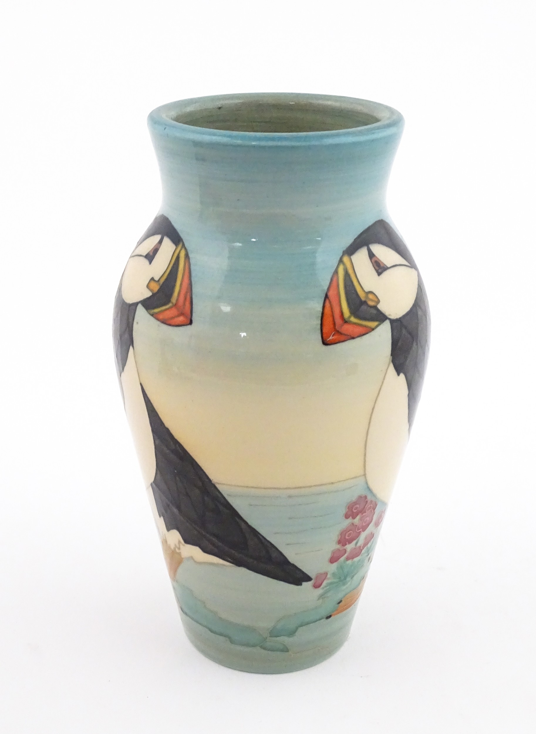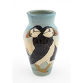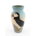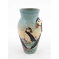 A Dennis China Works vase with puffin detail. Marked under no. 14 / 100. Approx. 8" high