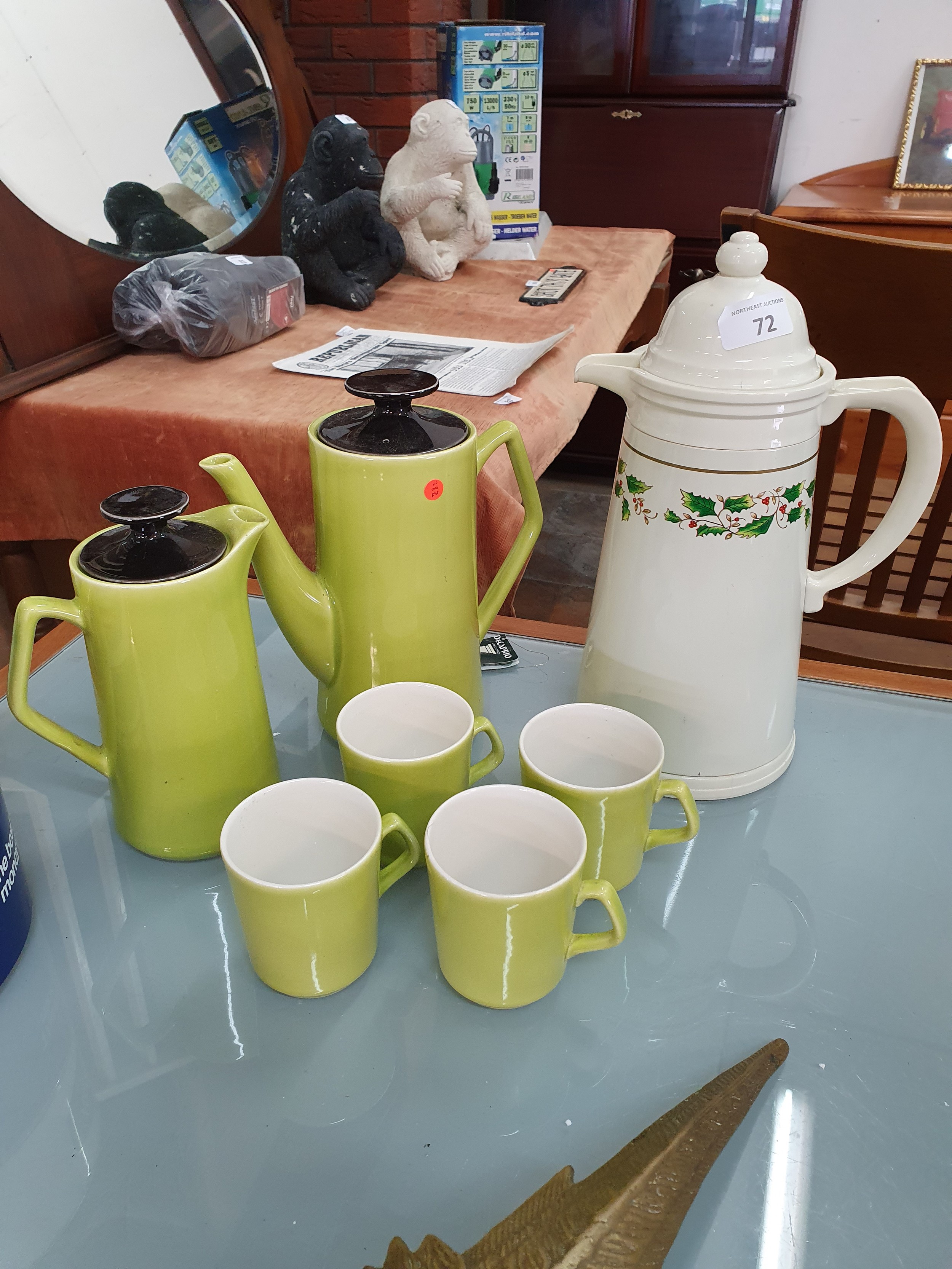 2 Retro Coffee Pots & Mugs & Thermos Jug