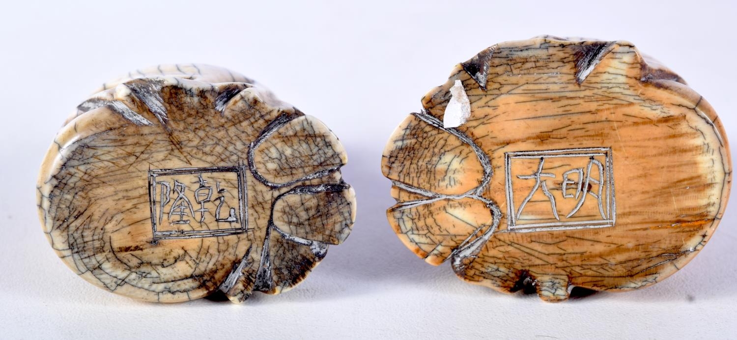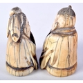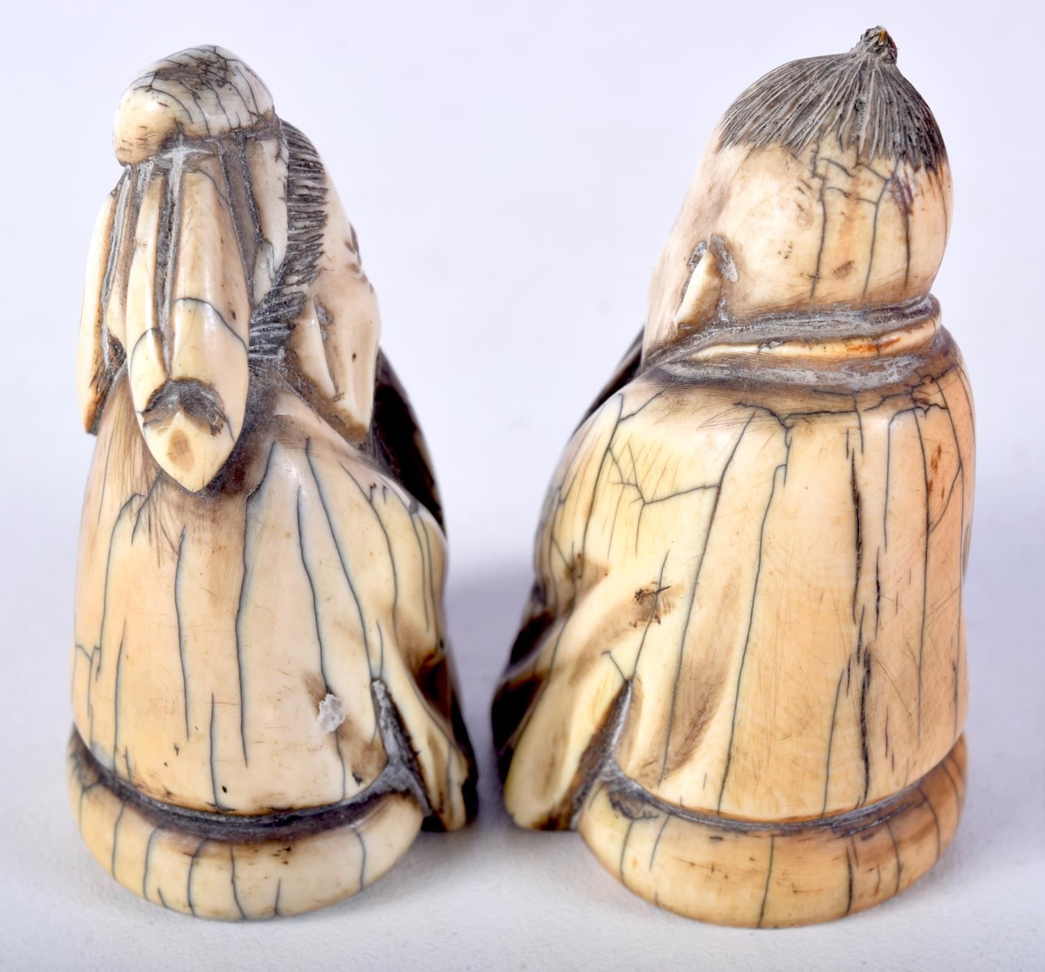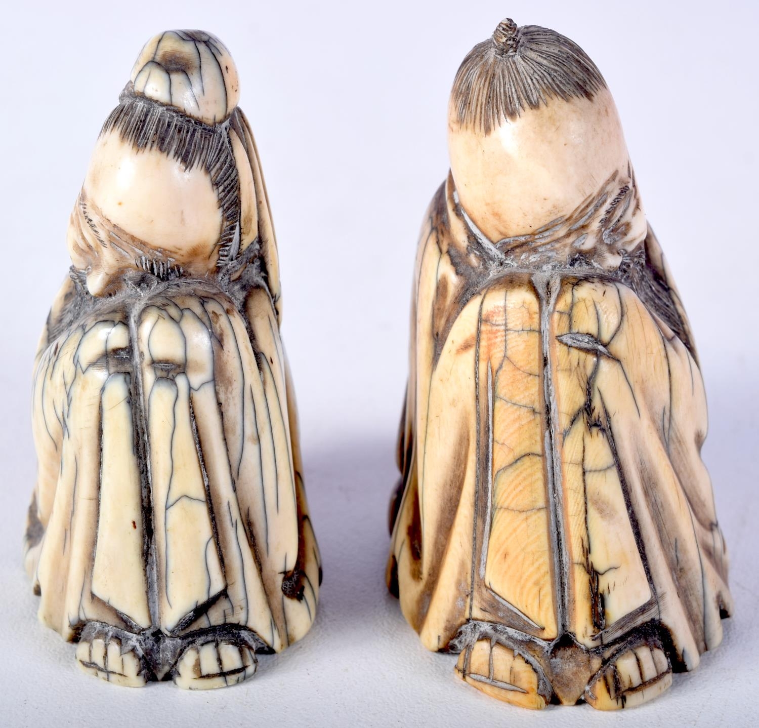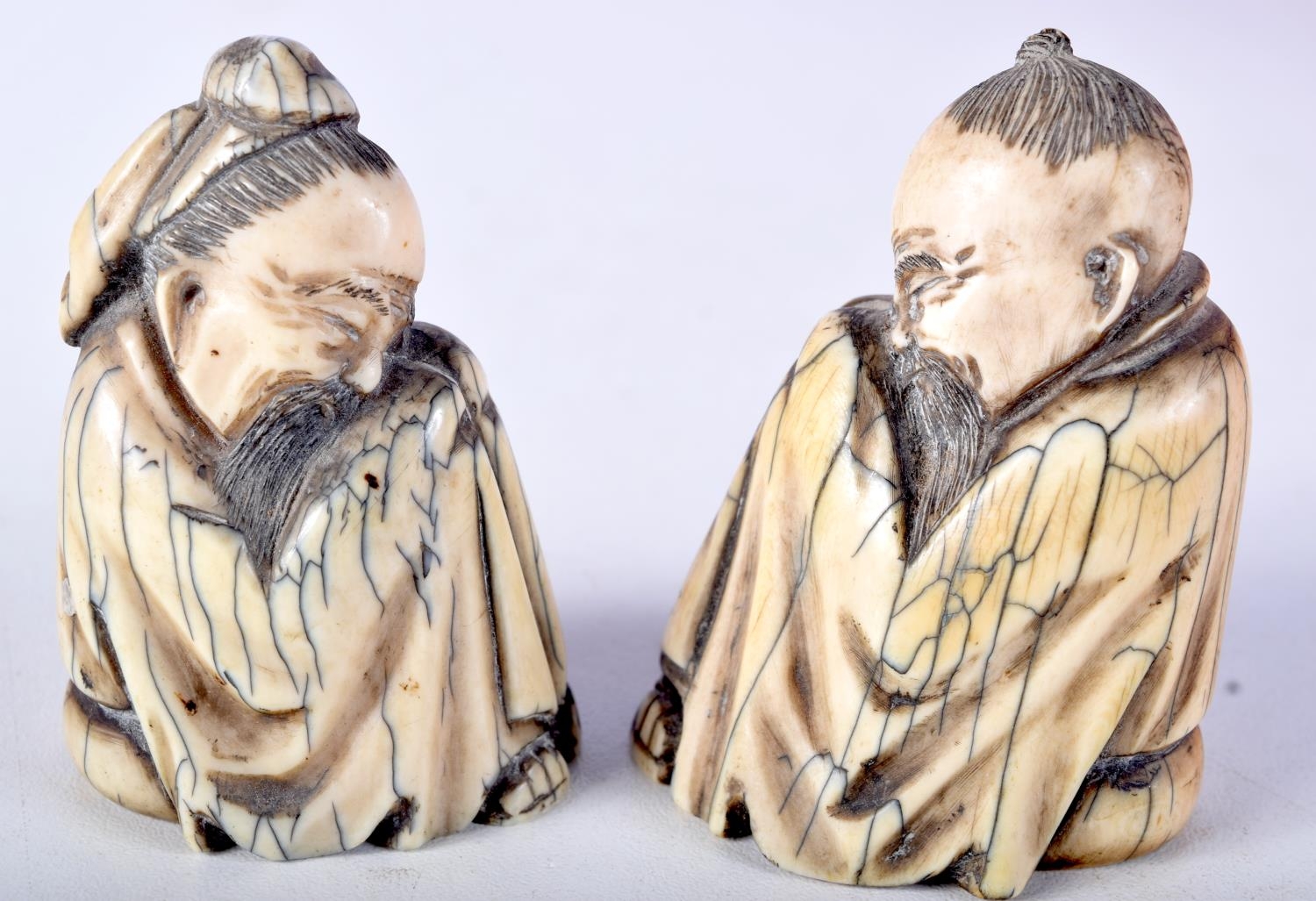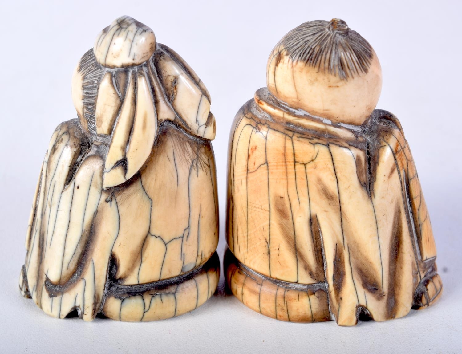 A PAIR OF 19TH CENTURY CHINESE CARVED MAMMOTH IVORY FIGURES OF SCHOLARS modelled in robes. 7 cm x 4.5 cm.