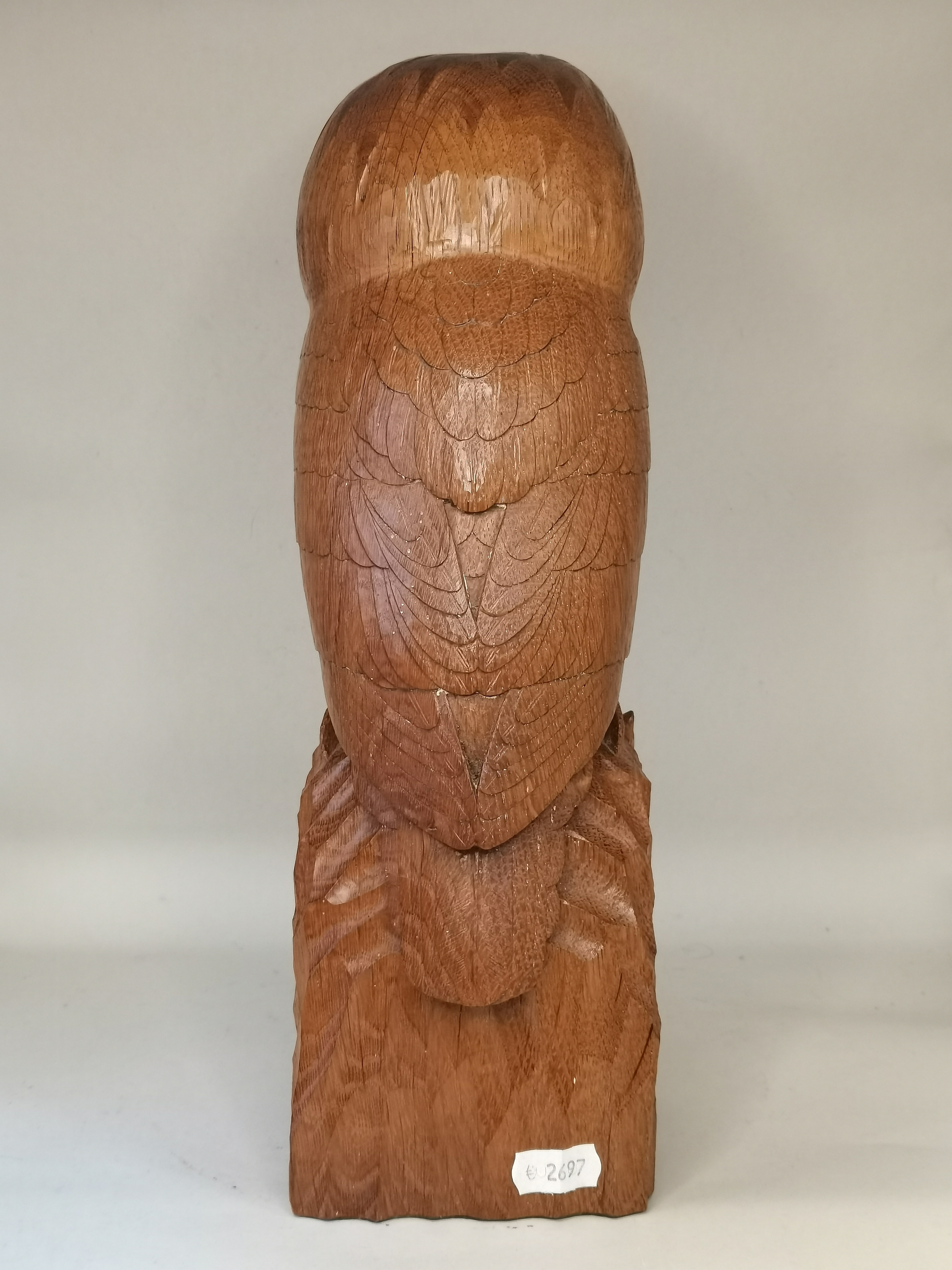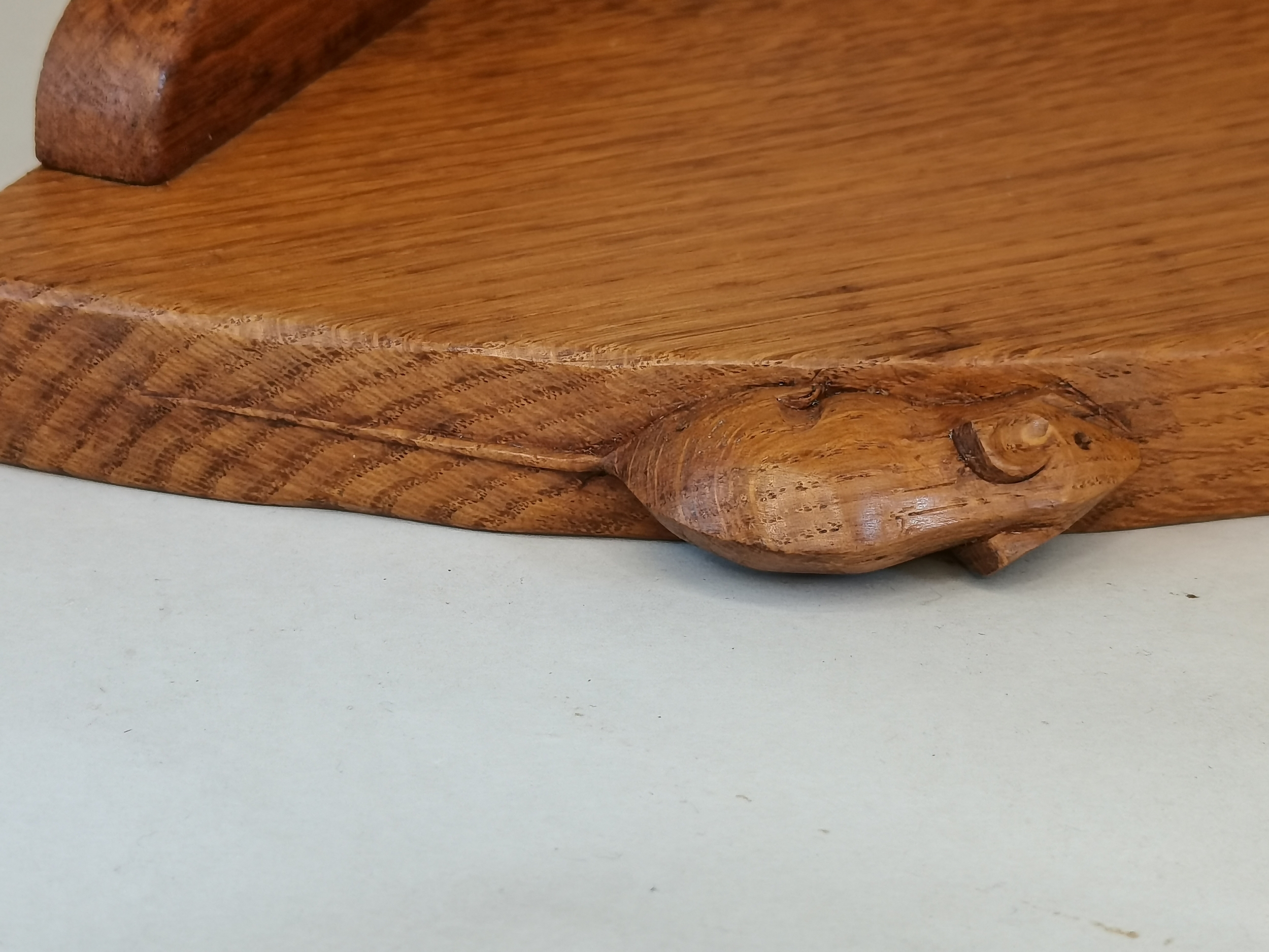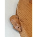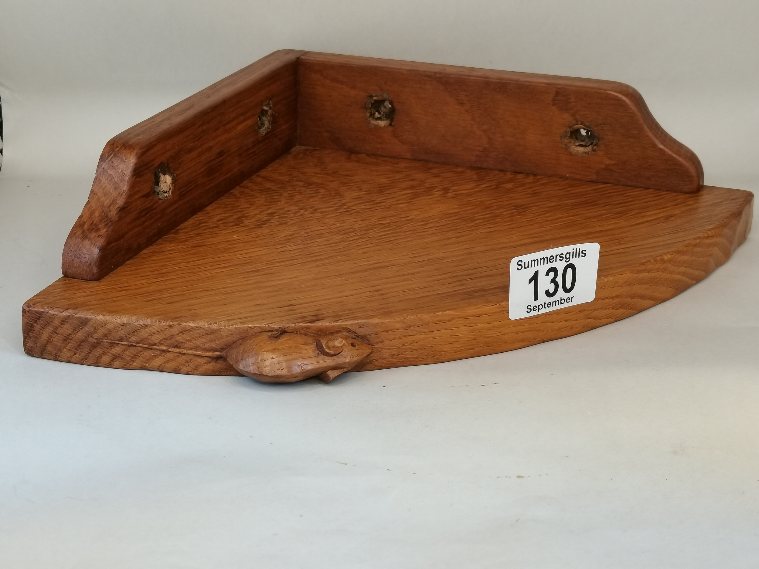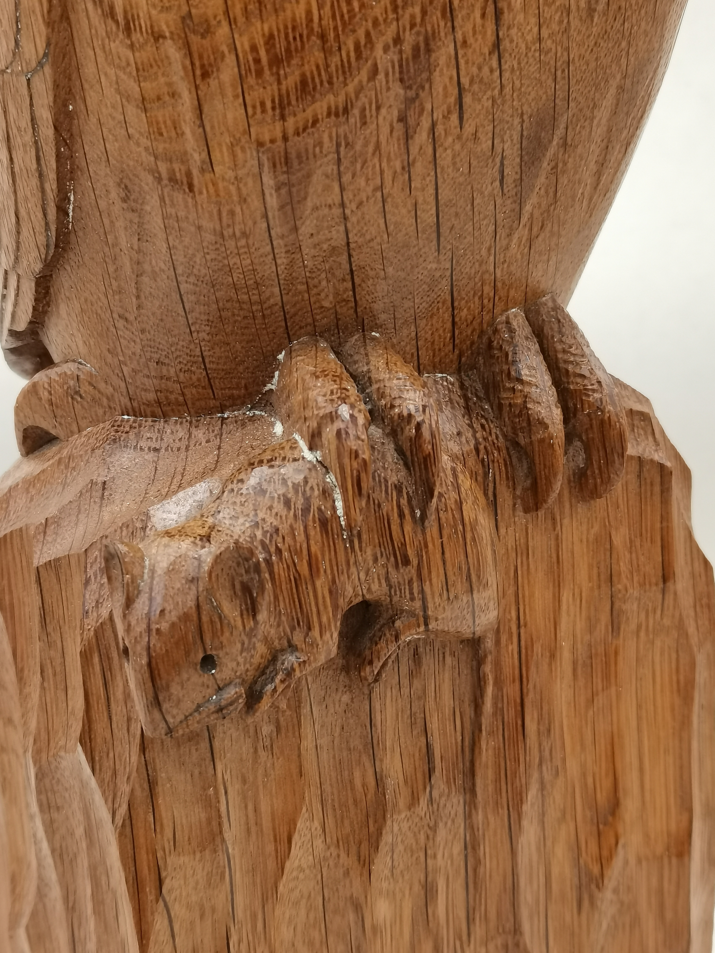Exquisite Mouseman Owl with mouse in claw and a commissioned Mouseman corner shelf. H32cm Ex Condition