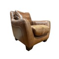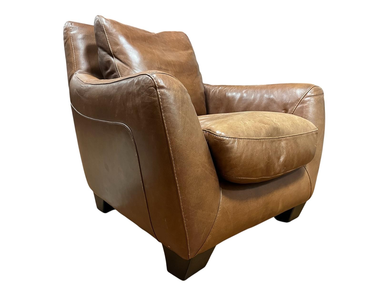 AN INCANTO ITALIAN DESIGNER HIDE UPHOLSTERED ARMCHAIR with loose cushions on block feet