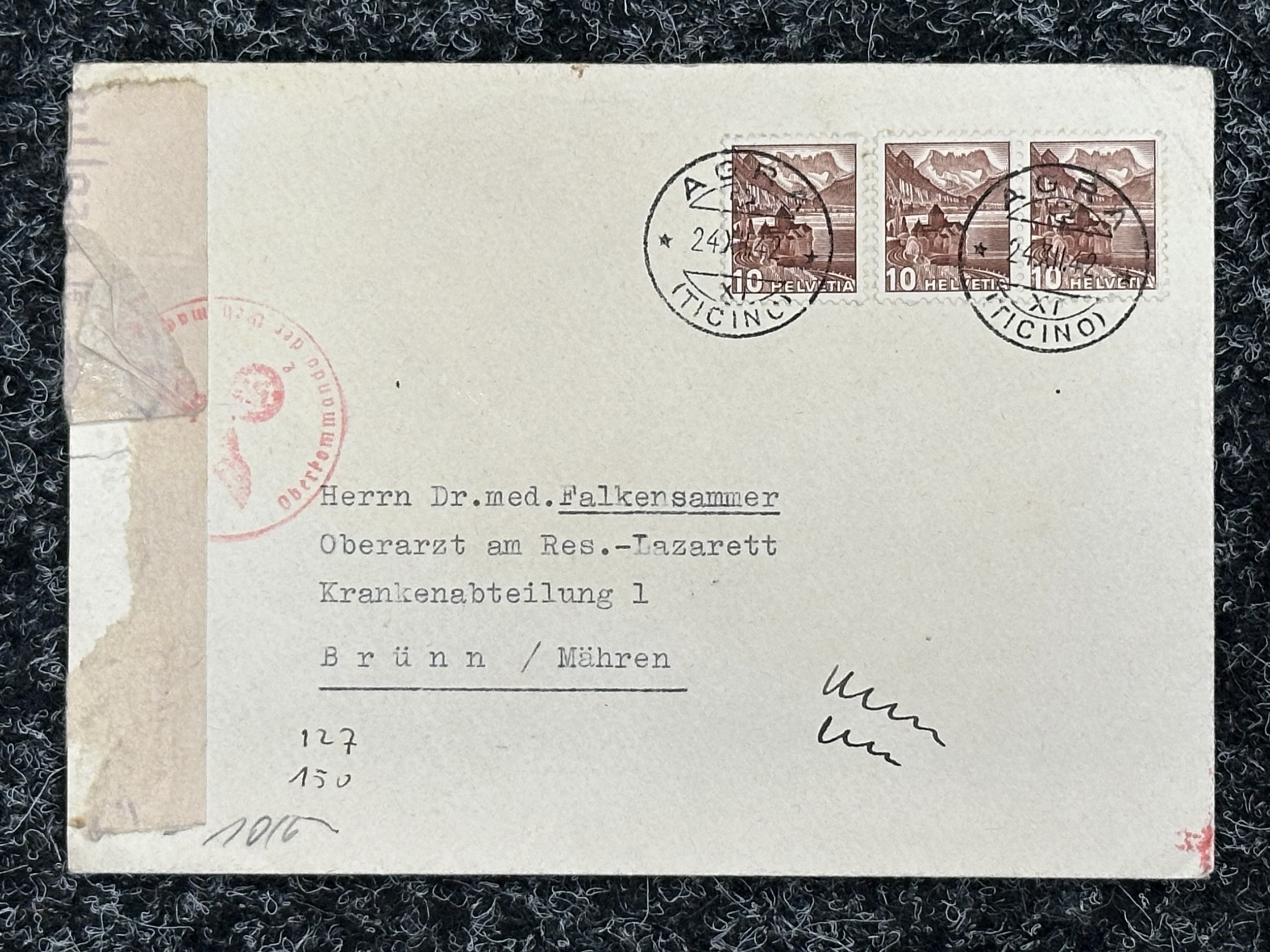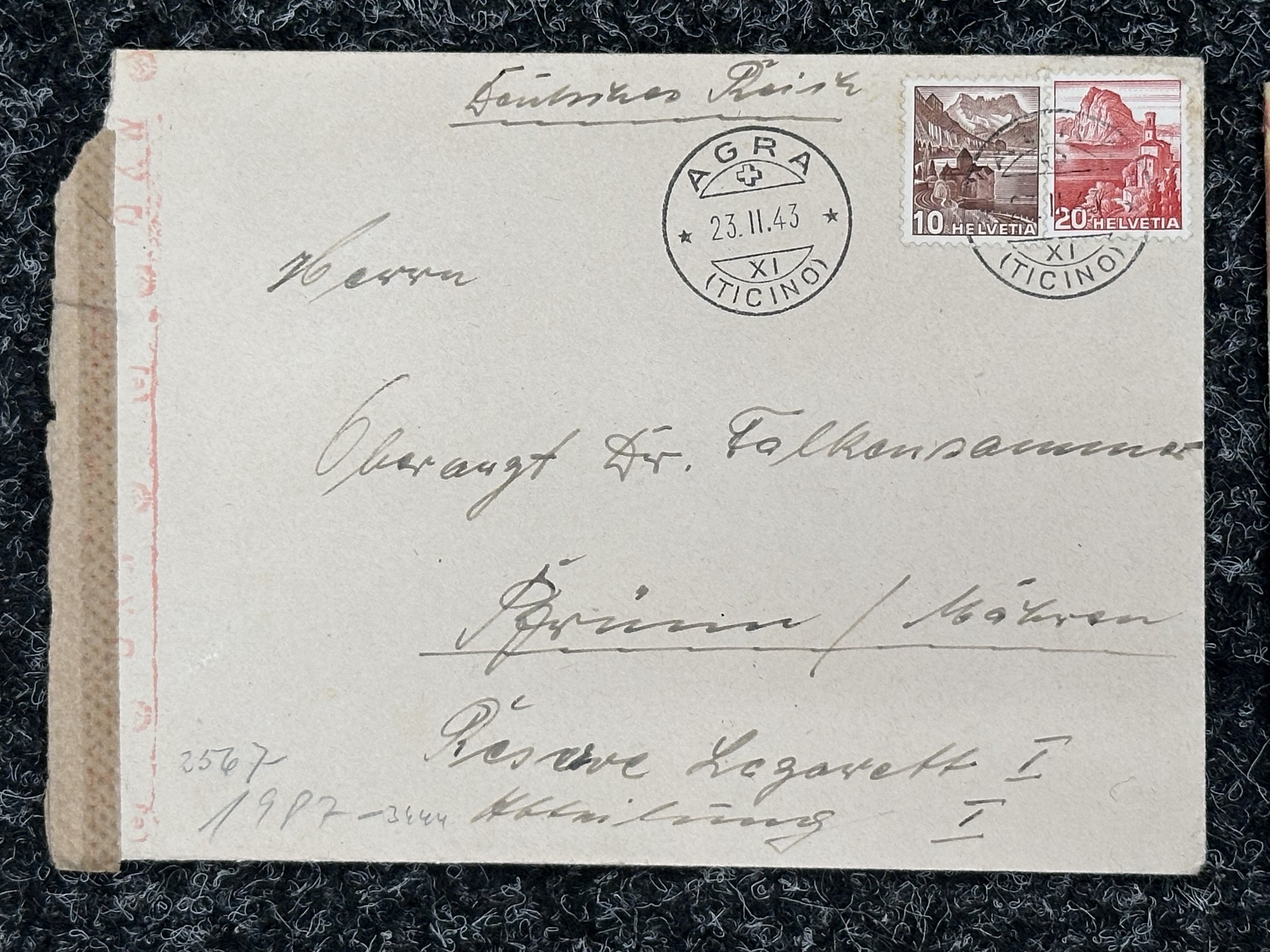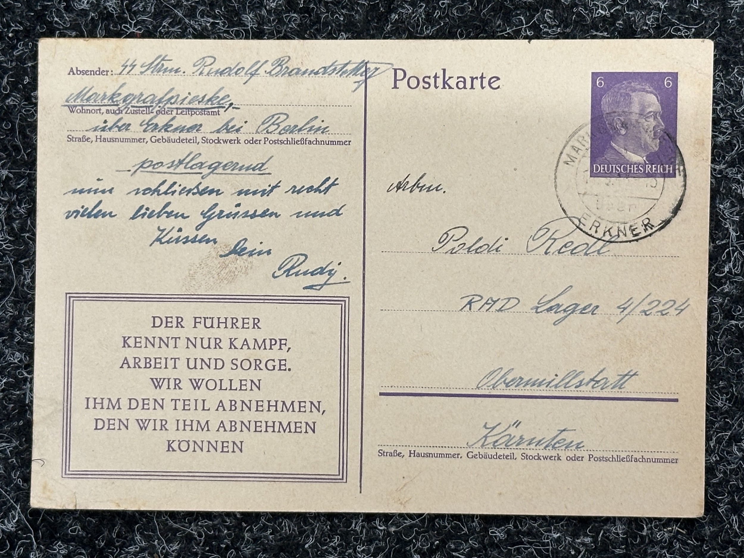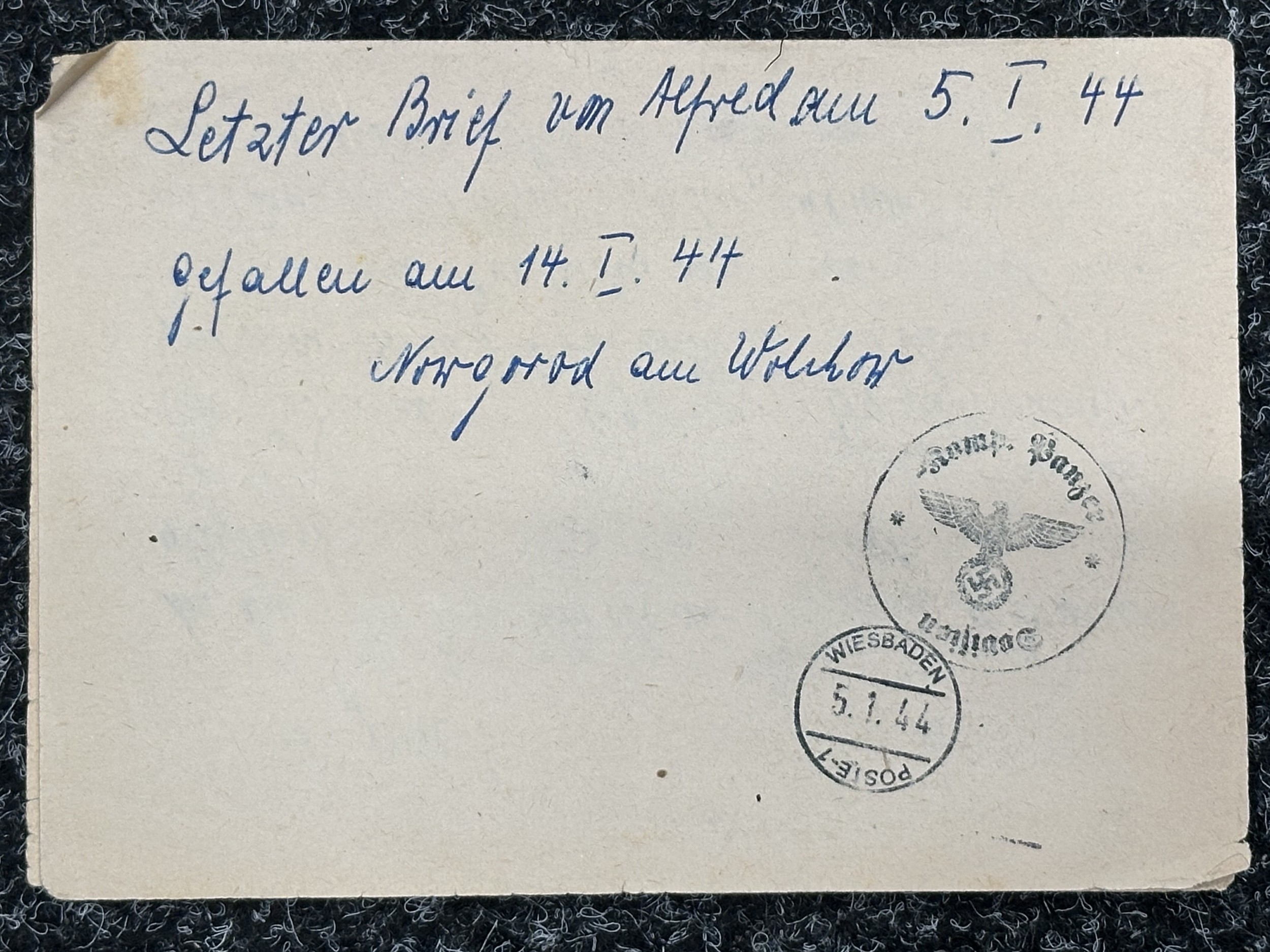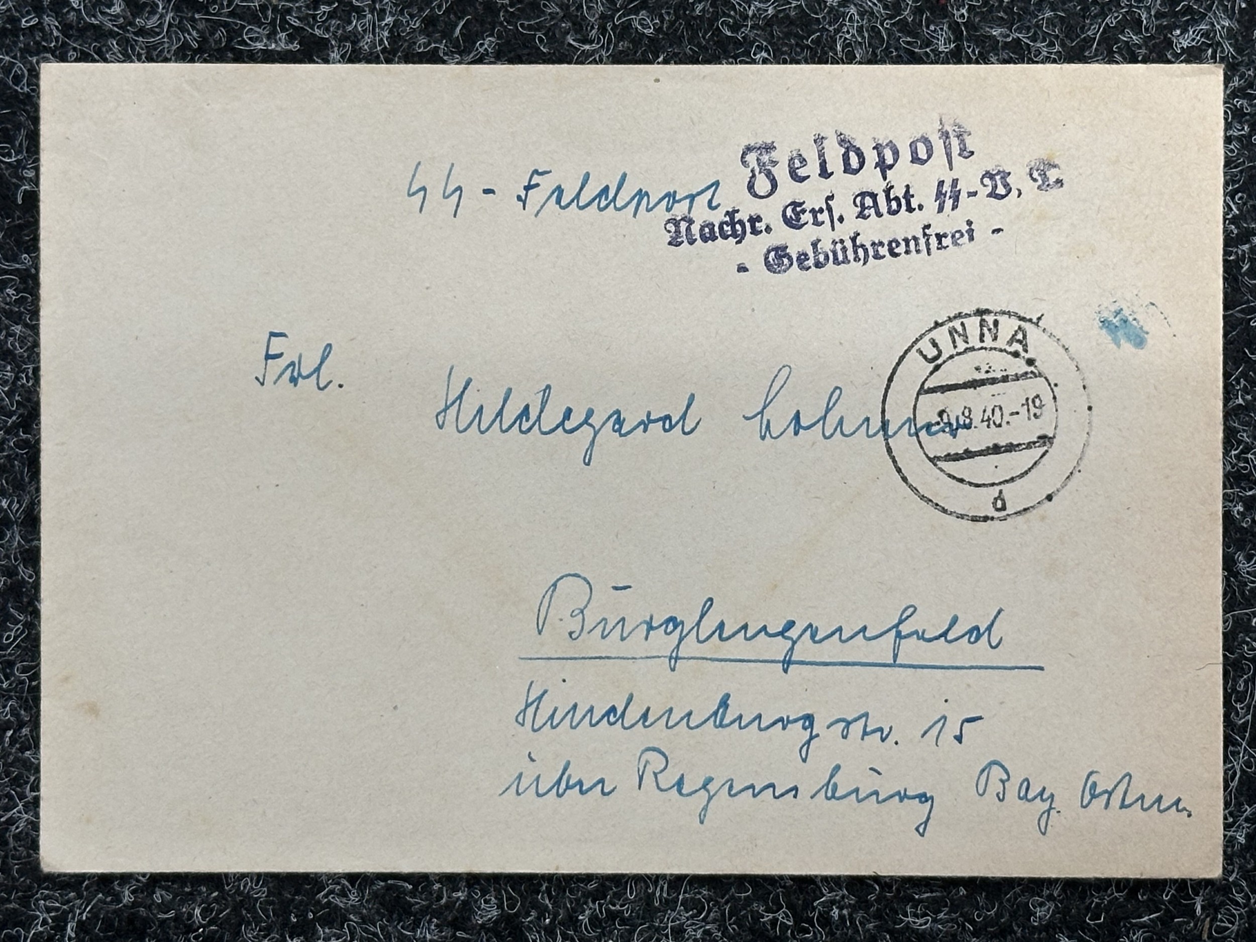WW2 Third Reich Waffen SS Feldpost letter collection. Two sent to the same Dr. Various units including Totenkopf Inf Regt, SS Police, SS-VT, etc. One letter sent by a soldier later KIA. (12)