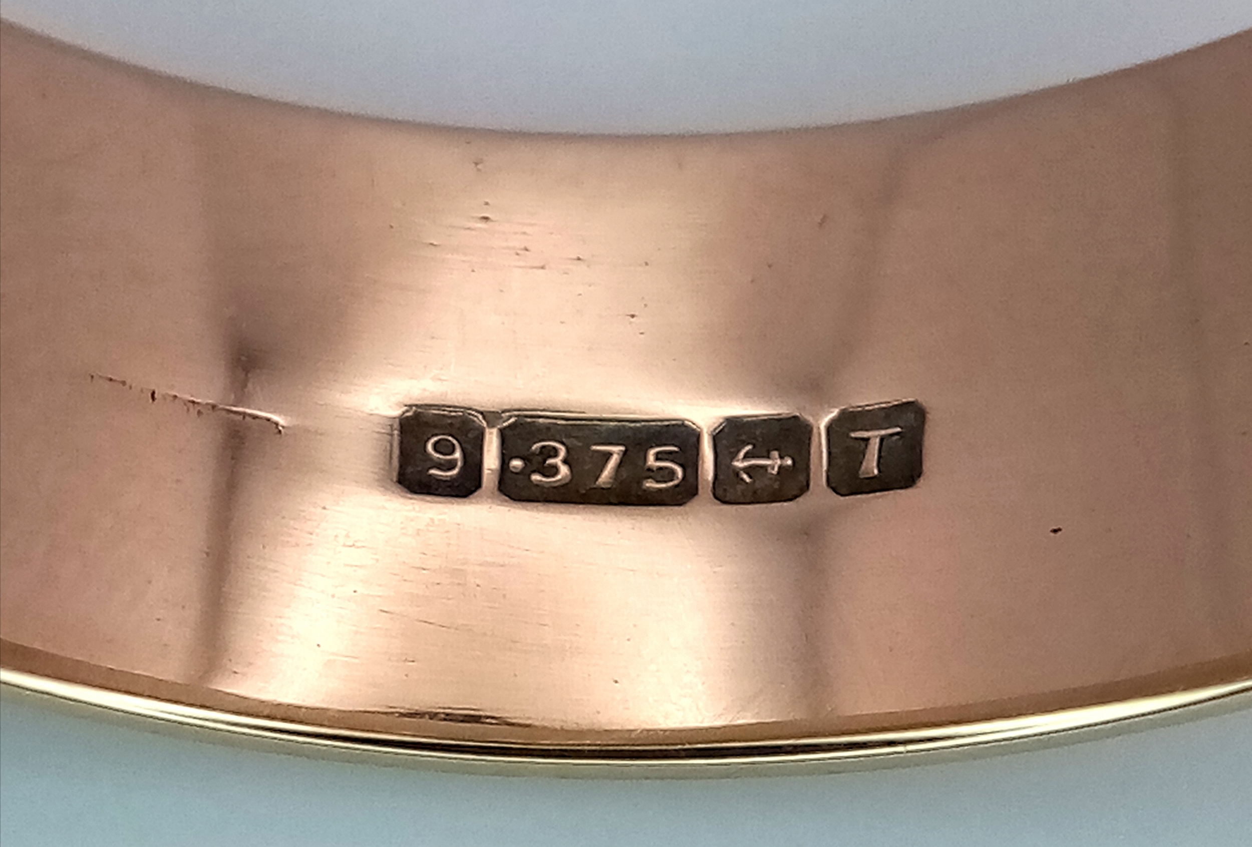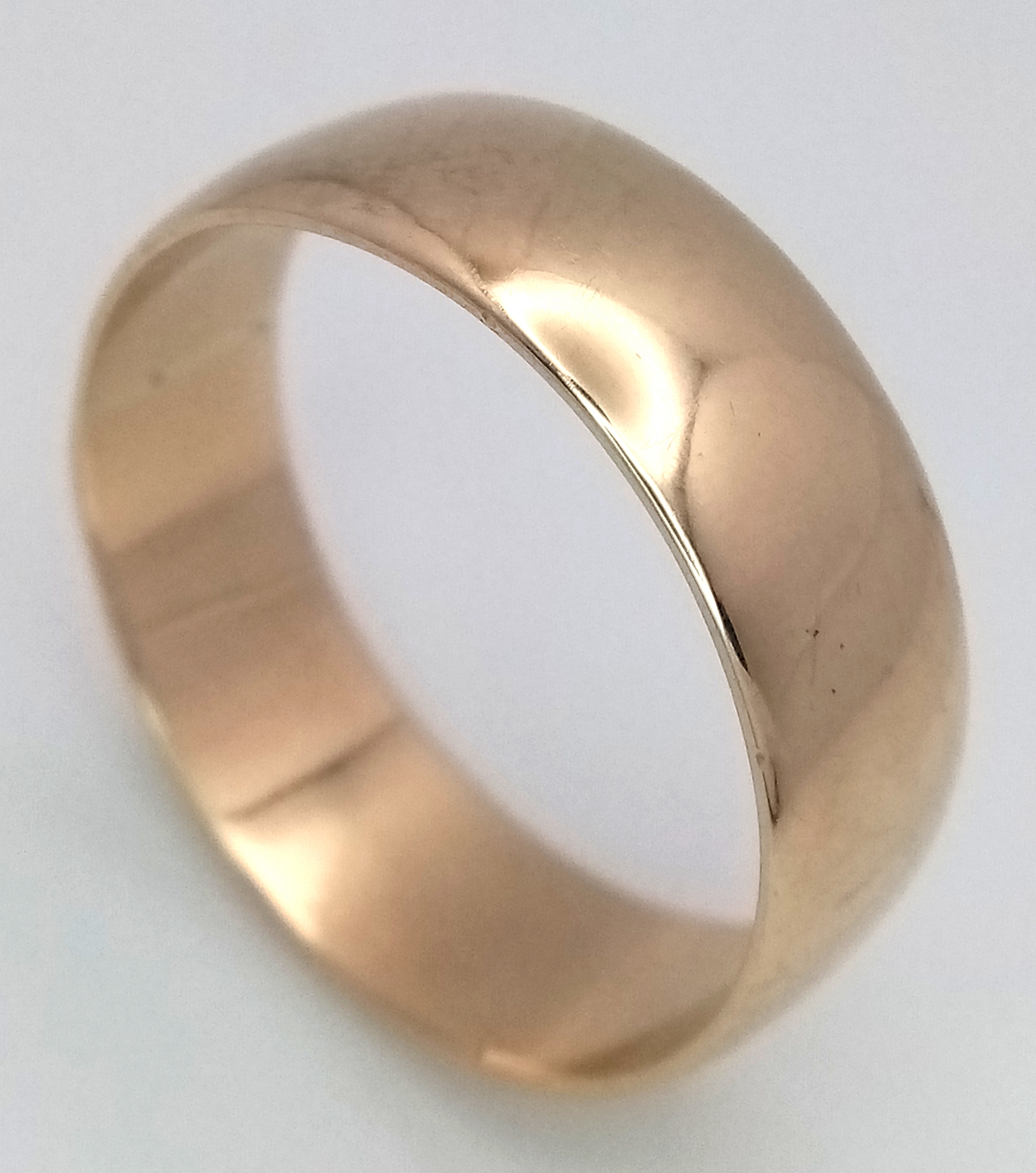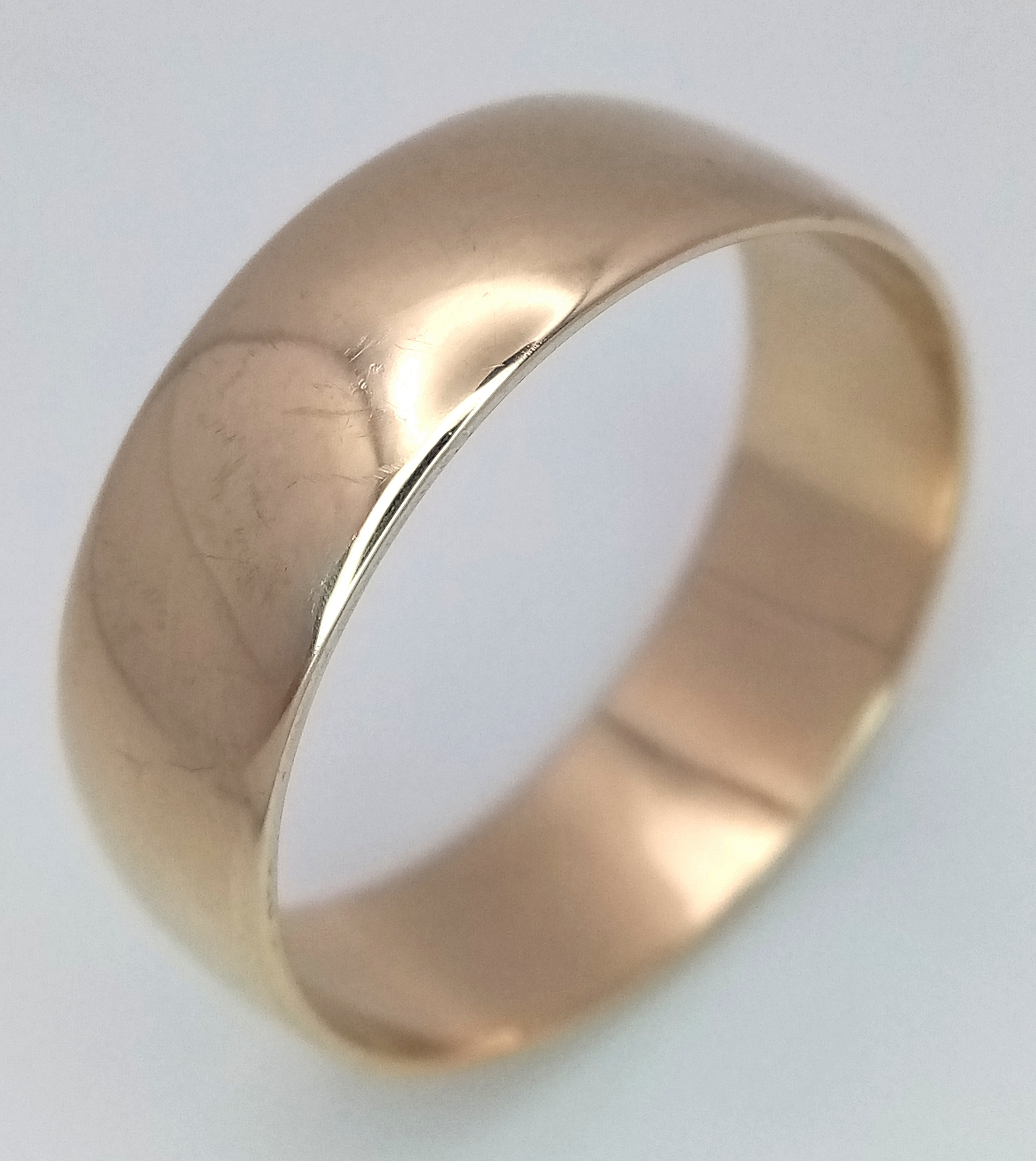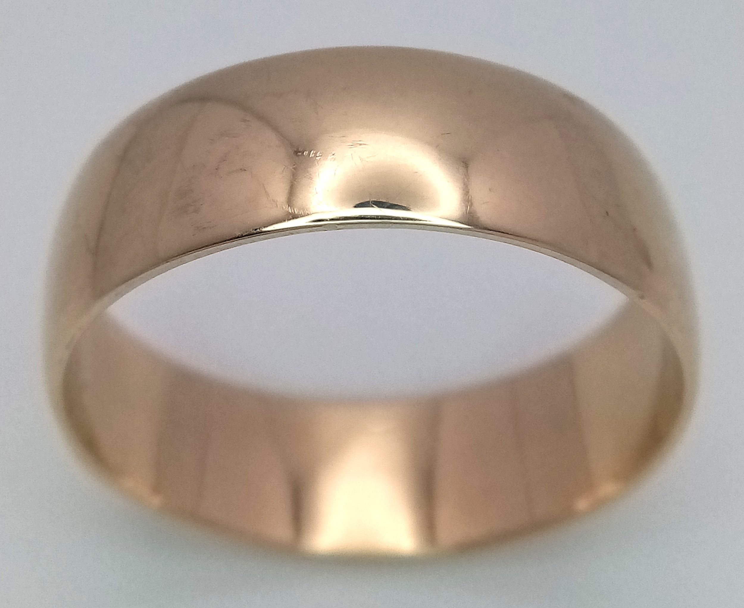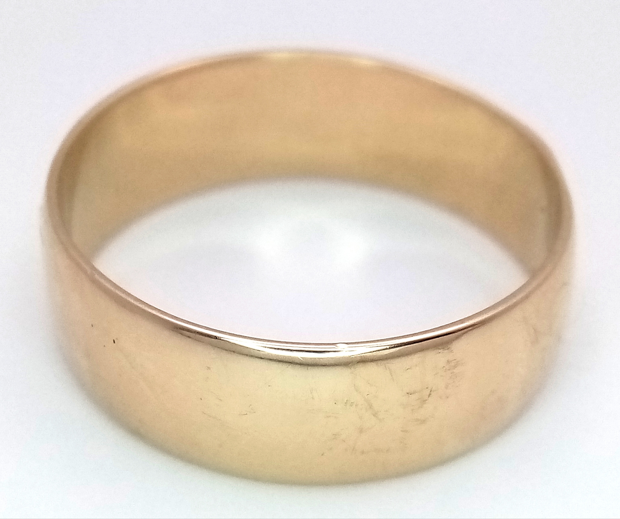 A Large 9K Yellow Gold Band Ring. 9mm width. Size Z +6. 7.7g.