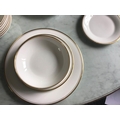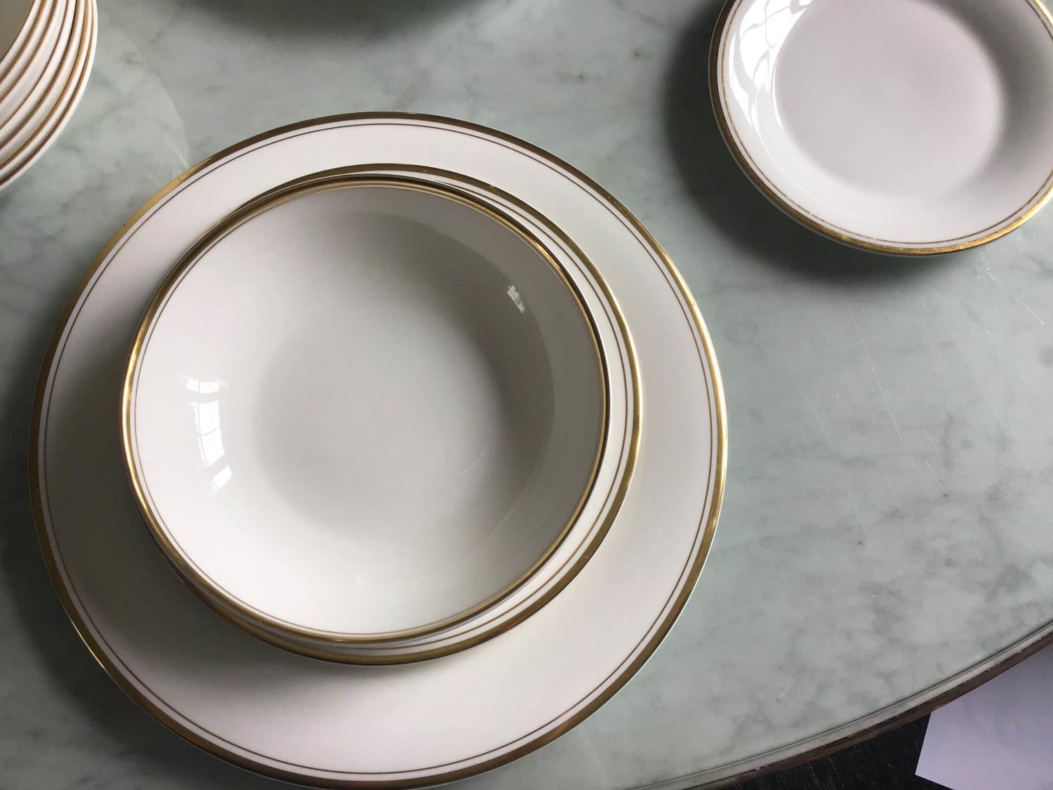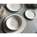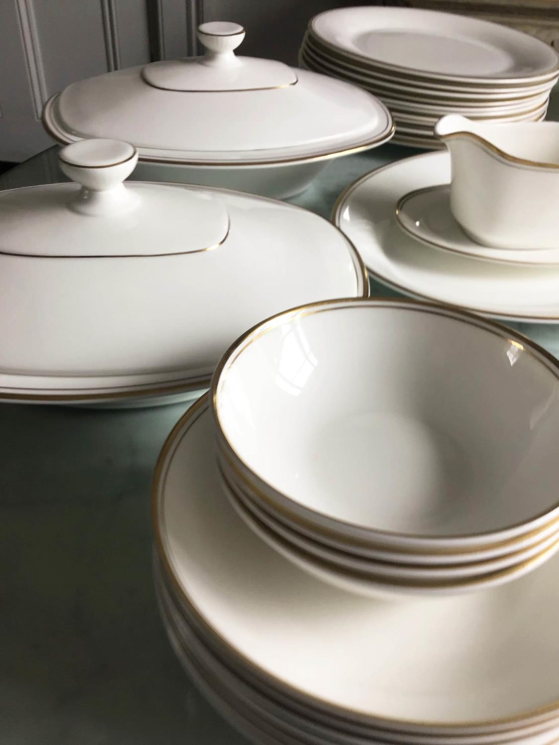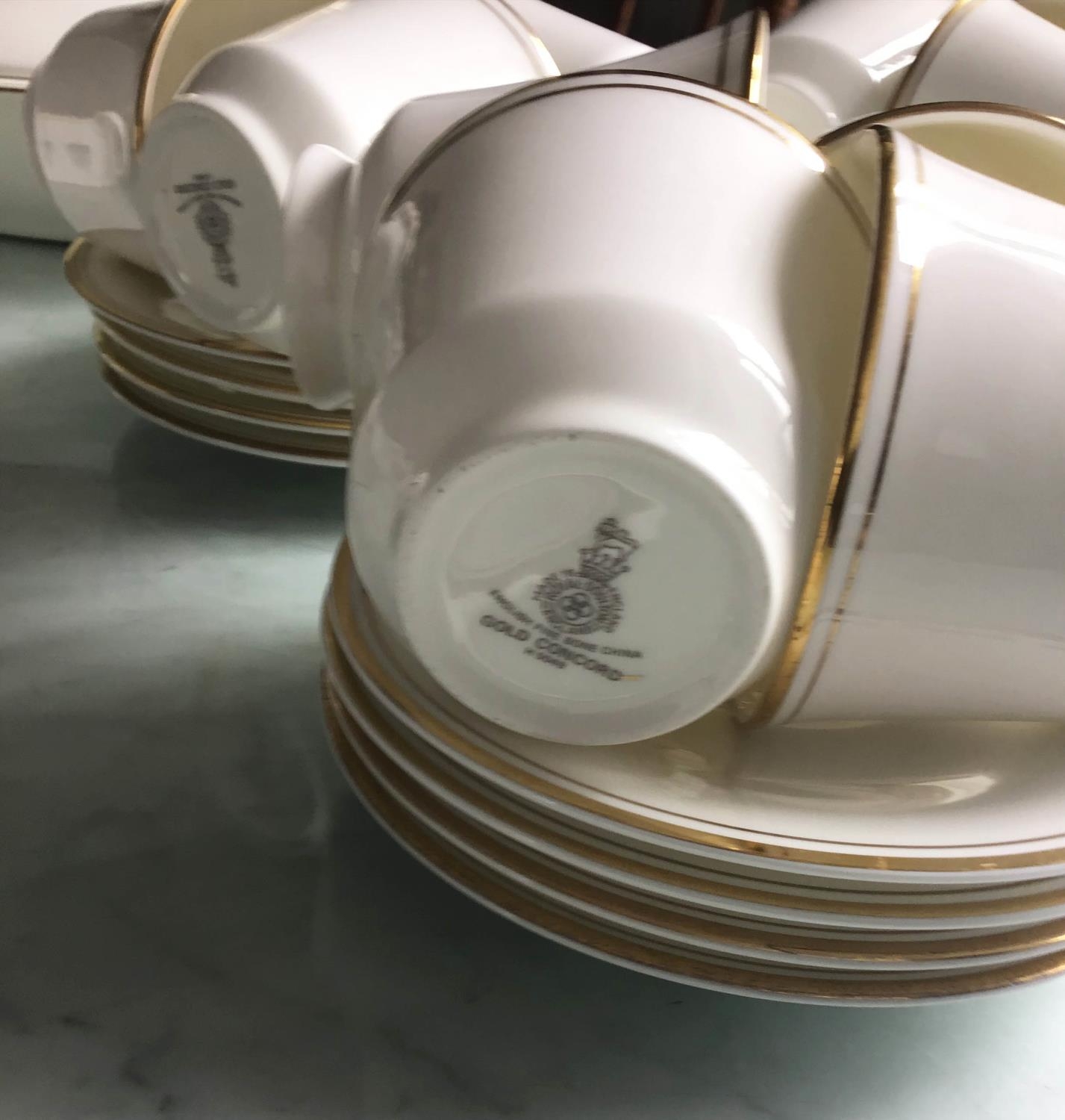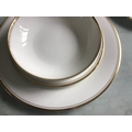 DINNER SERVICE, English fine bone china, Royal Doulton 'gold concorde', twelve place, six piece settings, approx. seventy-nine pieces. (Qty)