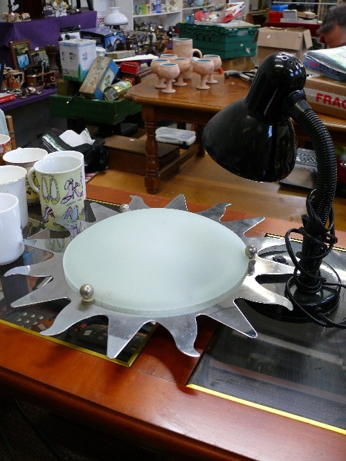 FROSTED WALL LIGHT IN THE SHAPE OF THE SUN PLUS A DESK LAMP