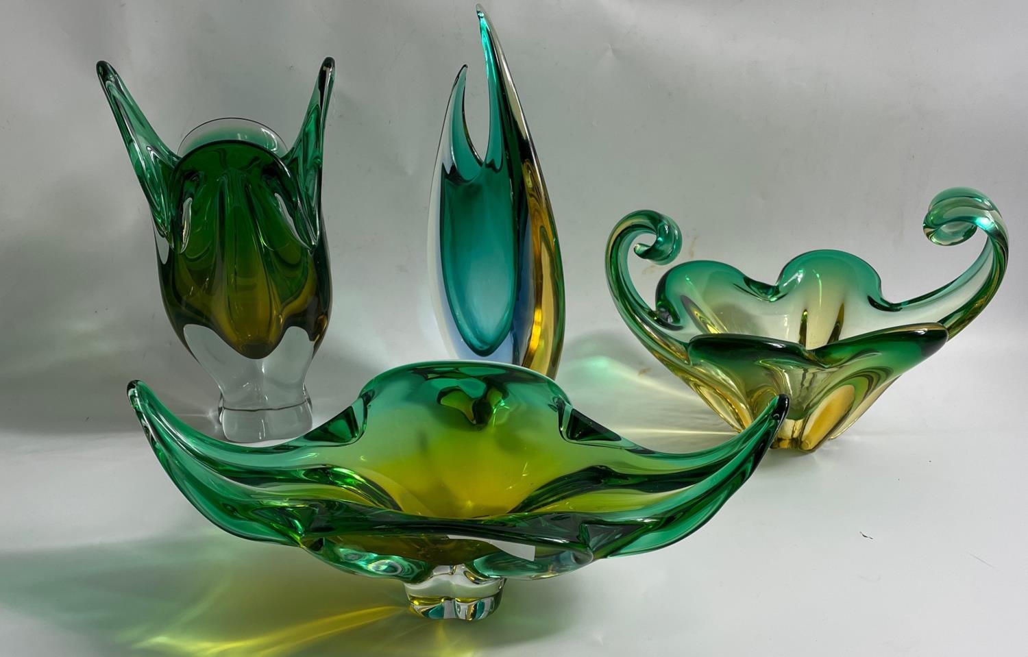 SUPER QUALITY! A collection of 4 pieces of Italian Glassware , green and gold colourway.