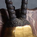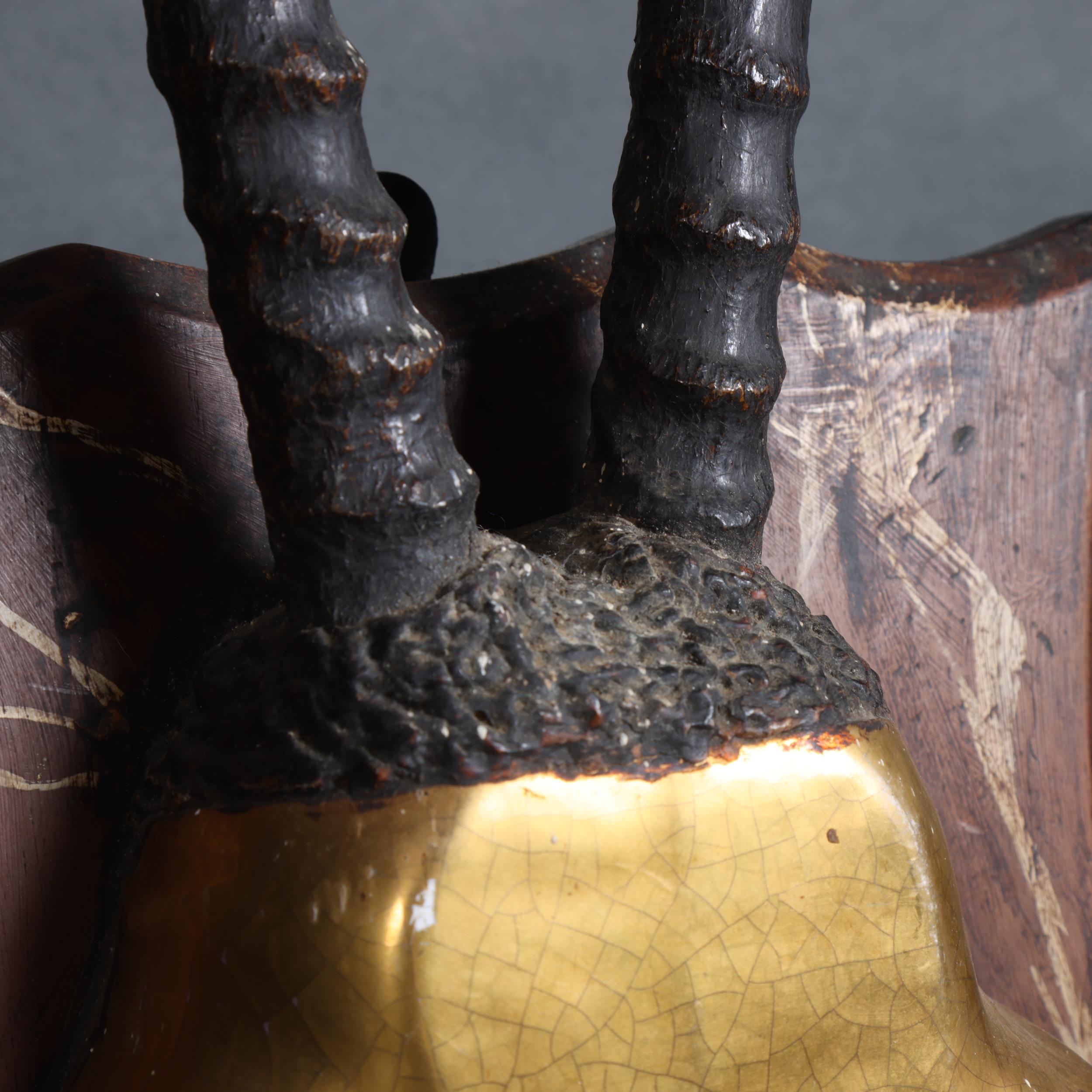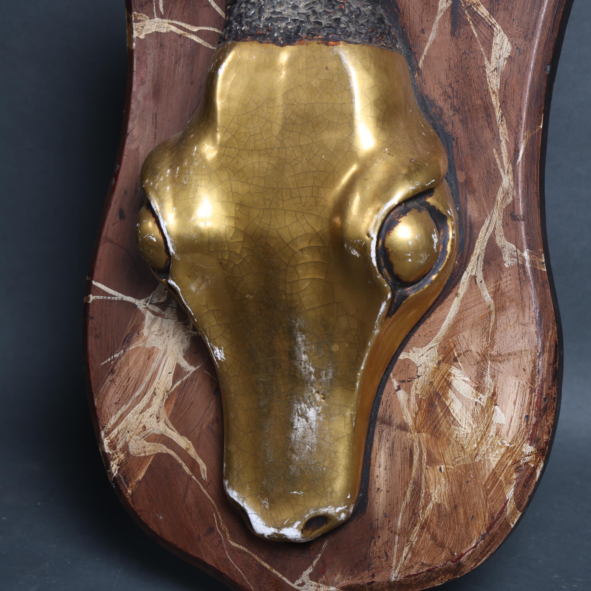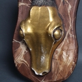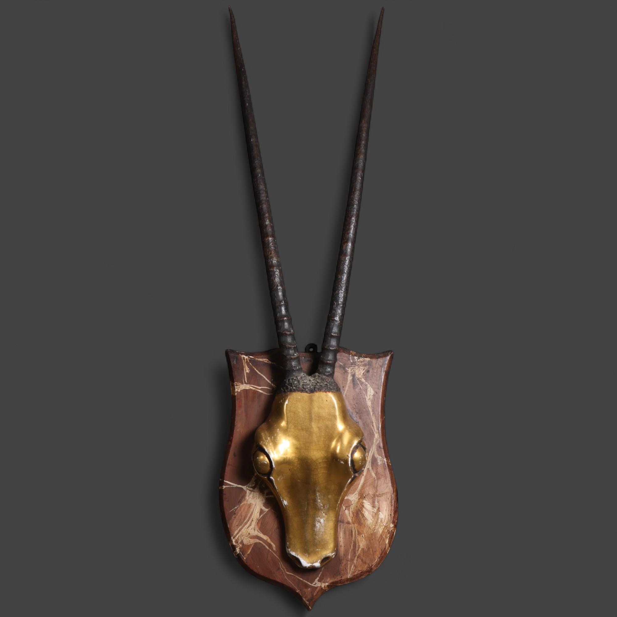 Curiosity & Macabre, an unusual mixed media study of a Gemsbok (Oryx Gazella), the mount showing a pair of gazelle horns mounted on a composite gazelle crown, mounted on shield plaque, L102cm