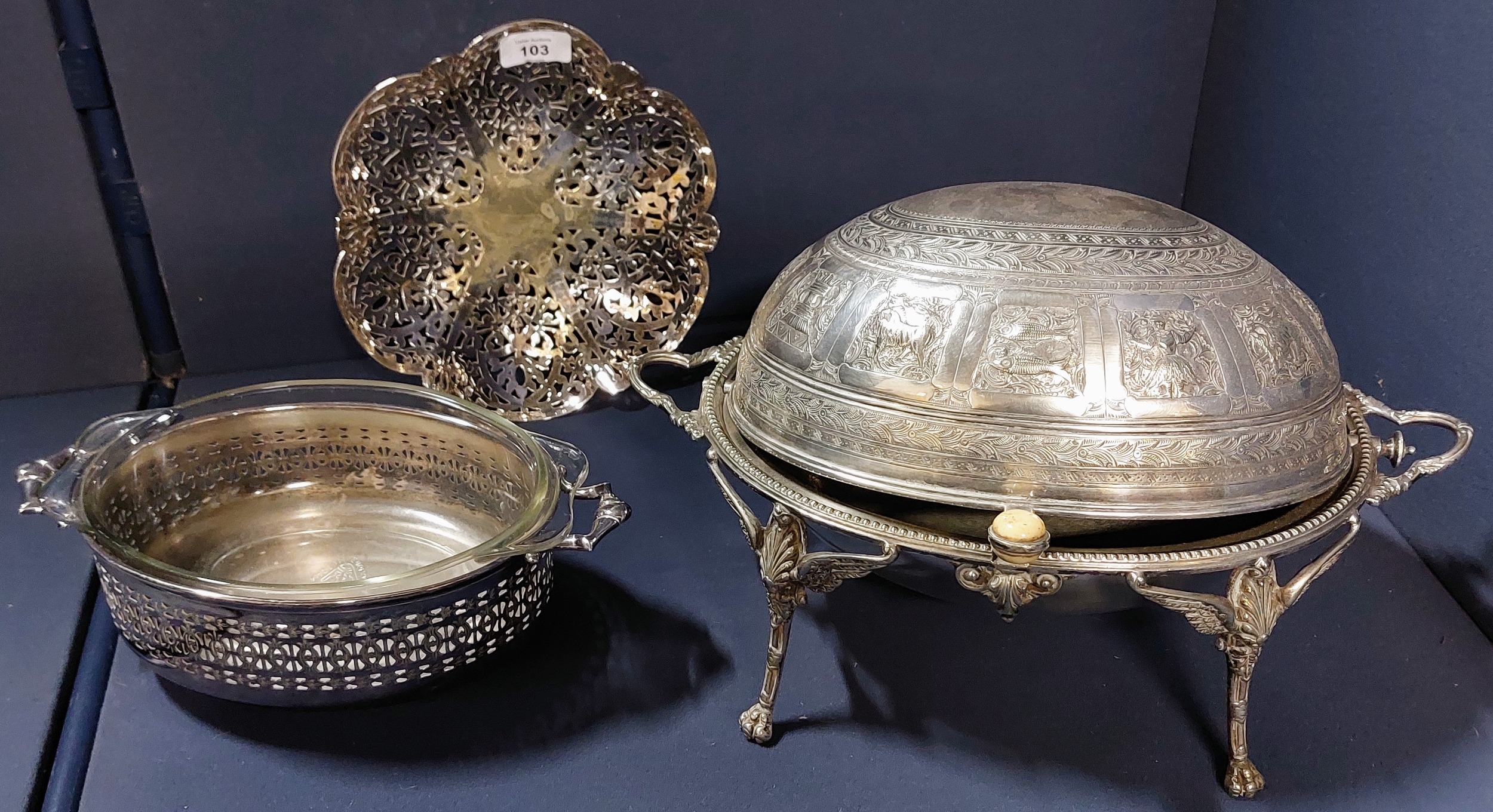 3 Pieces of Good Silver Plate inc Domed Entree Server
