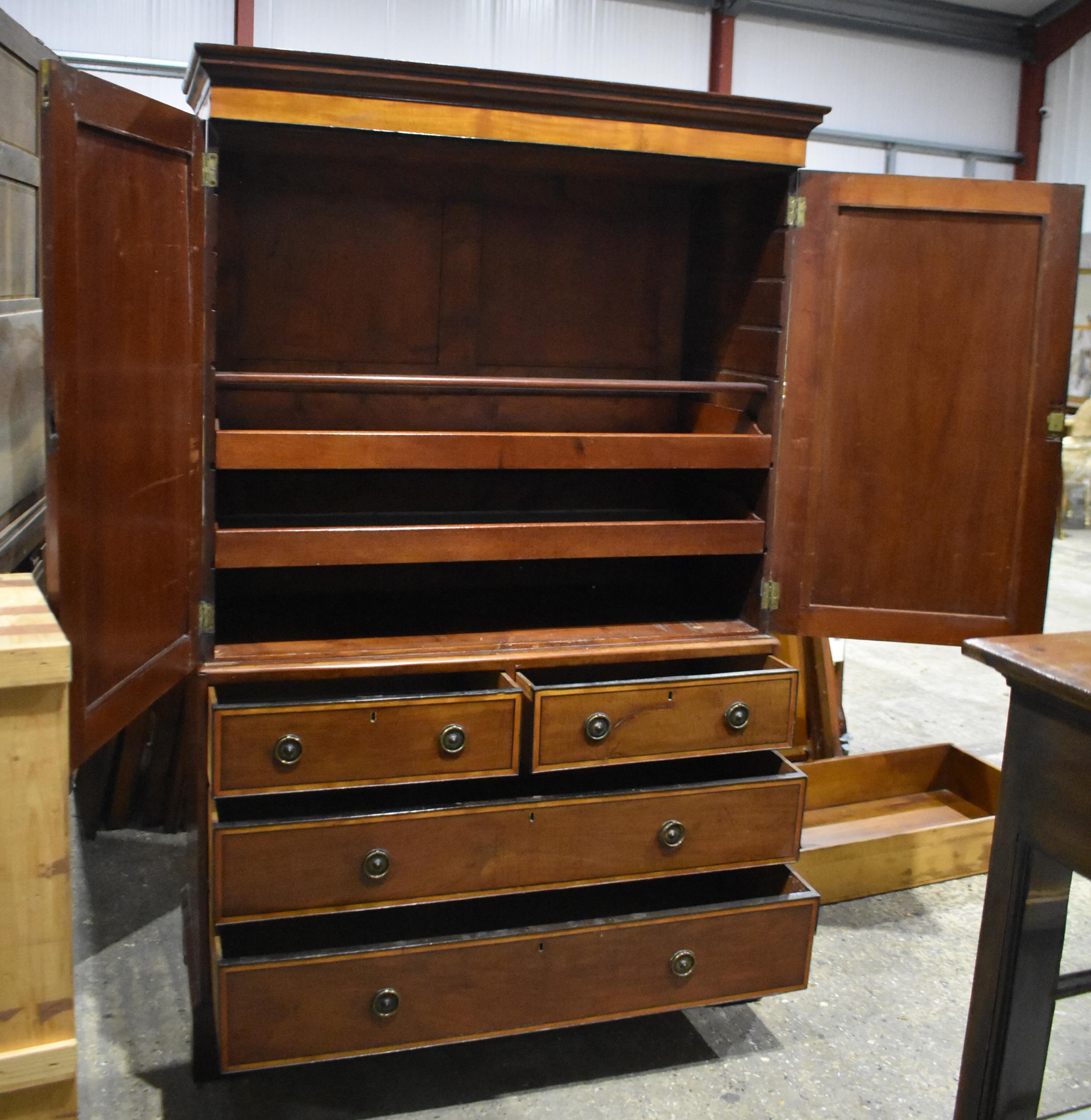 A two sectional four drawer Linen press with internal compartments 203 x 140 x 59cm